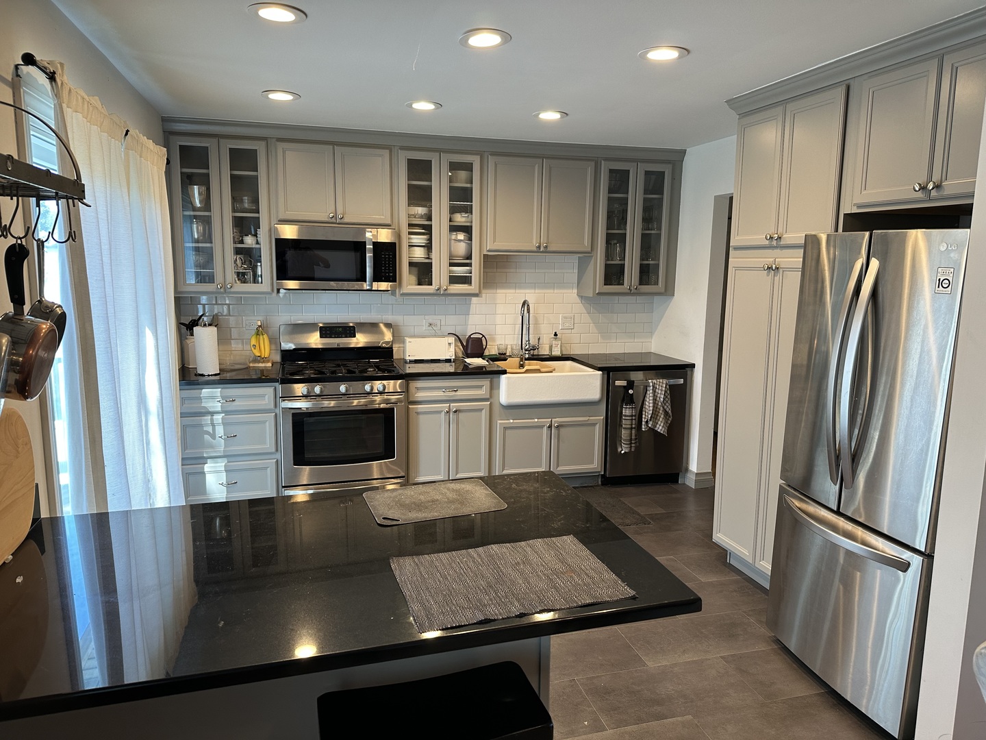 Tucked away on a quiet private cul-de-sac, this beautifully updated 3-bedroom, 2-bath home offers comfort and style throughout. The remodeled kitchen features canned lighting, sleek stainless-steel appliances, new solid surface countertops, cabinets, flooring and opens to eating area formerly a dining room. The kitchen opens to a deck over an enclosed porch, perfect for entertaining or relaxing outdoors. Enjoy a fenced backyard with a patio, ideal for gatherings or pets. Inside, you’ll find upgraded flooring, windows, roof, and mechanicals for peace of mind. The oversized two-car garage provides plenty of room for storage or hobbies. Family room with wood burning fireplace and sliders to patio and into enclosed porch. Could easily add a 4th bedroom. Enjoy the thoughtful updates, prime location, and updates on this move-in ready home! Located close to park, schools, restaurants, transportation, and so much more!