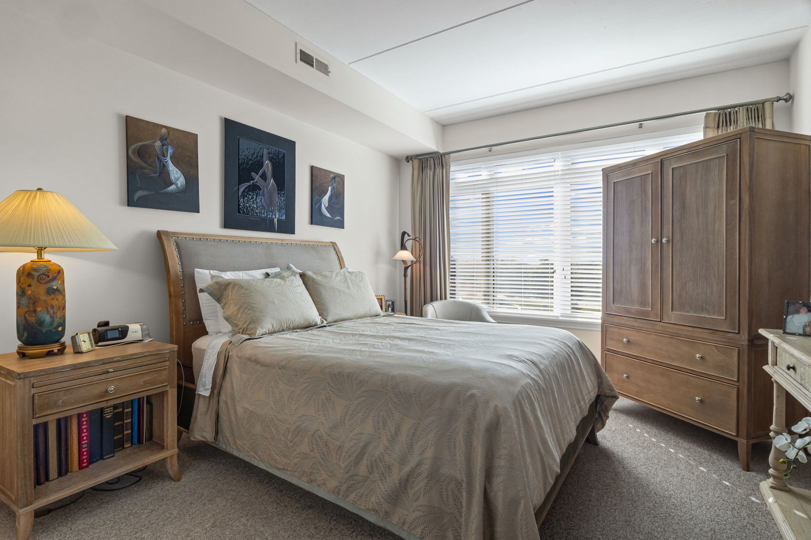 Carefree and stair-free condo living in what is truly one of the finest and most meticulously maintained elevator buildings in Lake County. Whether you are just getting started on your own or strategically downsizing, make the smart choice & purchase this tastefully appointed 1 bedroom condo with den for less than it would cost to rent. Kitchen is accentuated with maple cabinets, granite counters & stainless steel appliances. Versatile living area with extra large windows & spacious balcony with southern exposure provide ample room for entertaining. High ceiling heights and wide hallways and doorways give the unit a roomy feel. Generous sized bedroom & bath complimented by large closets and full size in-unit washer/dryer. The custom shower with glass enclosure was upgraded with a convenient shower seat. Included is 1 assigned parking space in the heated garage along with a large storage unit. The AC unit and the air handler are new as of 2025. The monthly HOA fee of $366 includes heat, gas, water and scavenger services. Lincolnshire grade schools and Stevenson High School all in a hard to beat convenient suburban location. Walk to Starbucks and numerous restaurants in Vernon Hills Town Center. It is also just a short jog or bike ride to miles of trails through the forest preserves along the Des Plaines River.