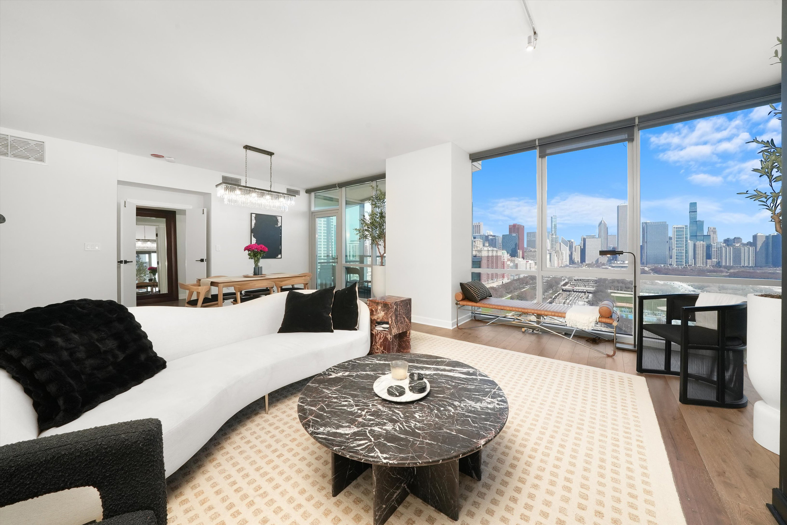 Live the Luxury Lifestyle in the “Gem” of the South Loop – One Museum Park West. This tastefully updated three-bedroom, two-bathroom unit offers everything you want and everything you need. The jaw-dropping skyline and lake views are just the beginning. The main living area is designed for entertaining, featuring separate living and dining spaces with easy access to the open kitchen. The split floor plan ensures privacy, with a spacious primary bedroom boasting a recently remodeled en-suite bath that includes double vanities, a walk-in shower, a separate soaking tub, two walk-in closets, and stunning north-facing skyline and lake views. The second and third bedrooms also showcase breathtaking views of Soldier Field, the lake, and Museum Campus. Additional updates to this stunning unit include newer flooring throughout, completely remodeled bathrooms, and quartz countertops in the kitchen. A beautiful custom built-in entertainment center with a Sub-Zero wine fridge and a new Sub-Zero panel refrigerator elevates the space, while updated light fixtures, a private balcony, and a brand-new in-unit washer and dryer add convenience and style. One Museum Park West is a full-amenity luxury tower, offering 24-hour door staff and concierge services, an indoor pool, a gym, a sundeck, a lounge, a catering kitchen, a children’s playroom, a theater, a business center, a conference room, and even a dog bath. Located in the heart of the South Loop, this property offers easy access to Grant Park, Millennium Park, Michigan Avenue, Museum Campus, Lake Michigan, and so much more. A tandem parking spot is available for an additional $60,000. There is also a 3rd single spot available for an additional $35,000