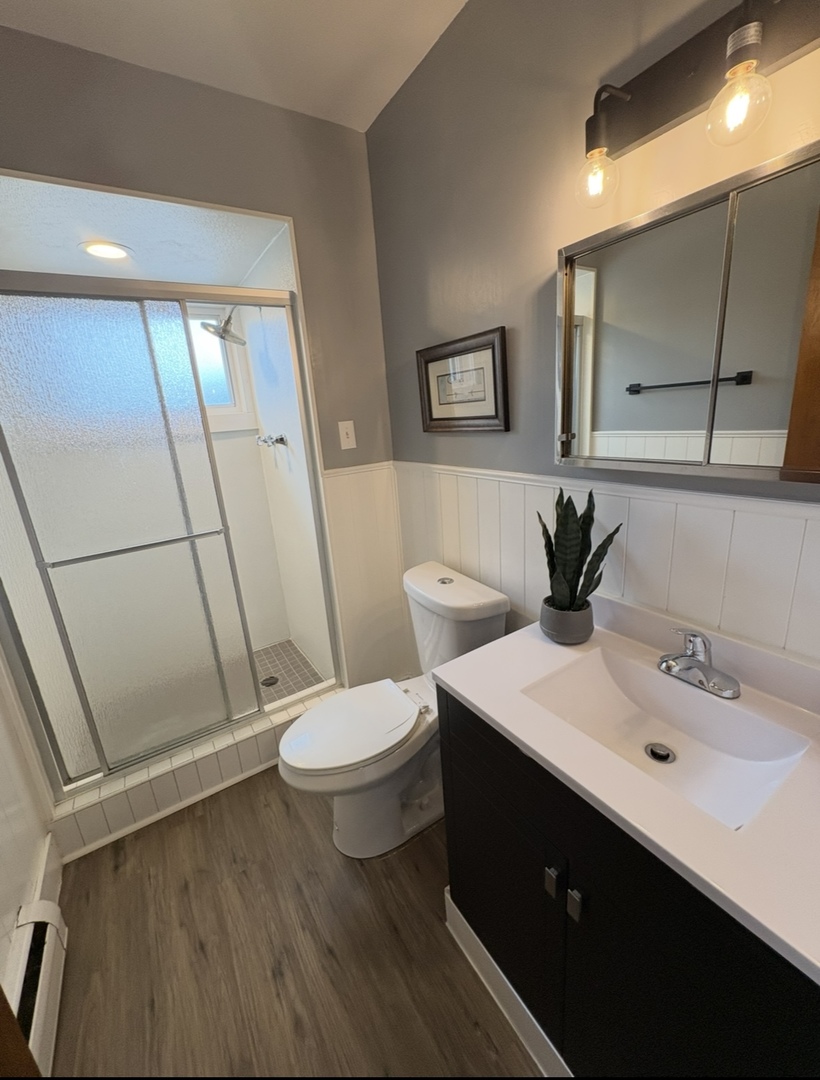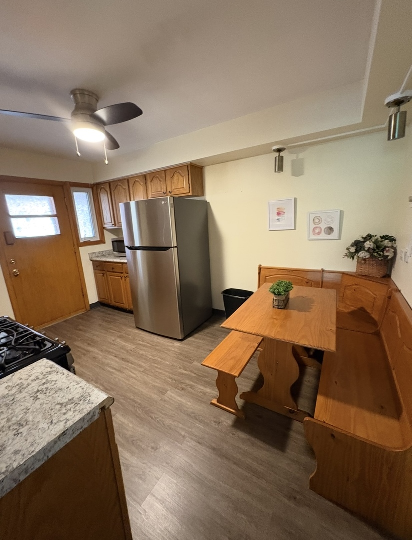 Large 2 bedroom 2 new renovated baths with eat in kitchen, window framed living room, dining room combo plus 1 exterior parking space. Wonderful corner unit with great light and great space. New luxury vinal planking flooring and upgrated light fixtures. Two large bedrooms with great closet space. West exposure gives you a great view of Fenwick Park across the street! Within walking distance to Dominican and Concordia!