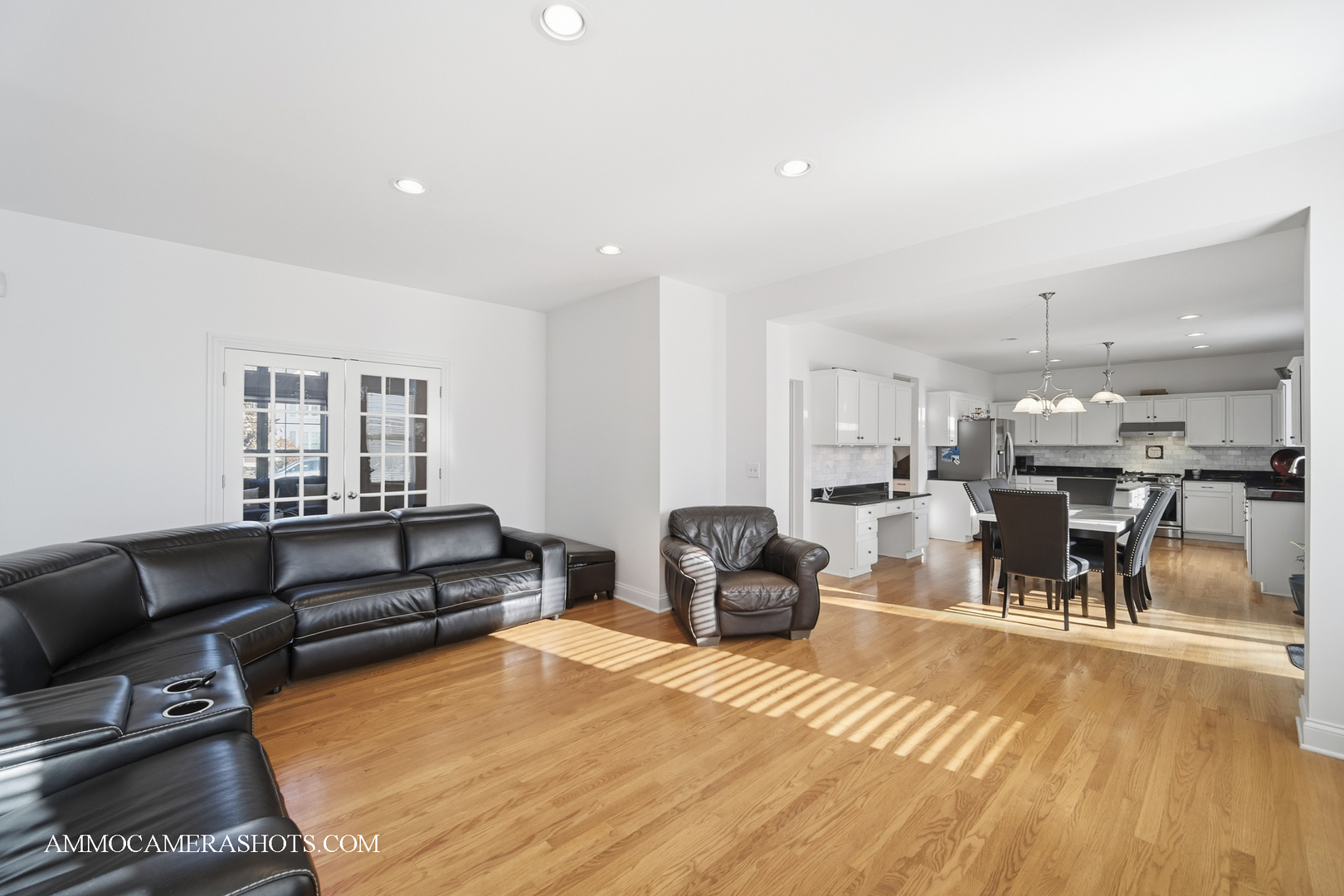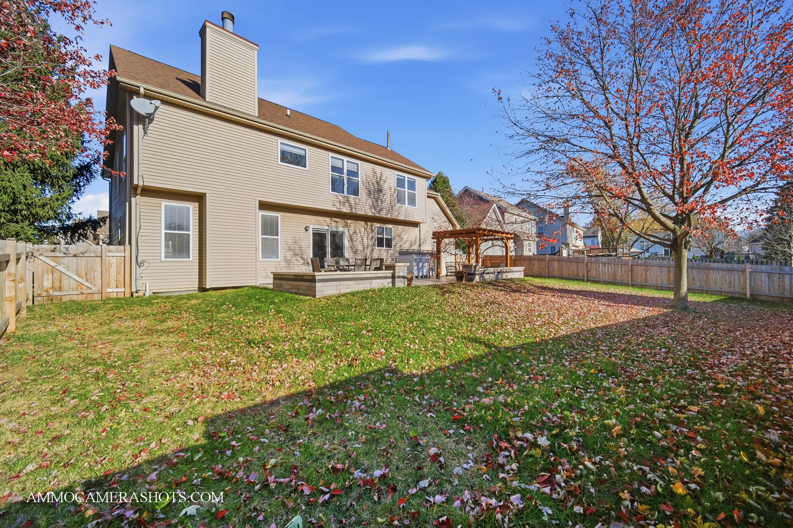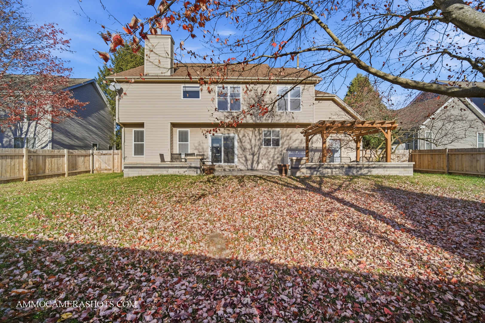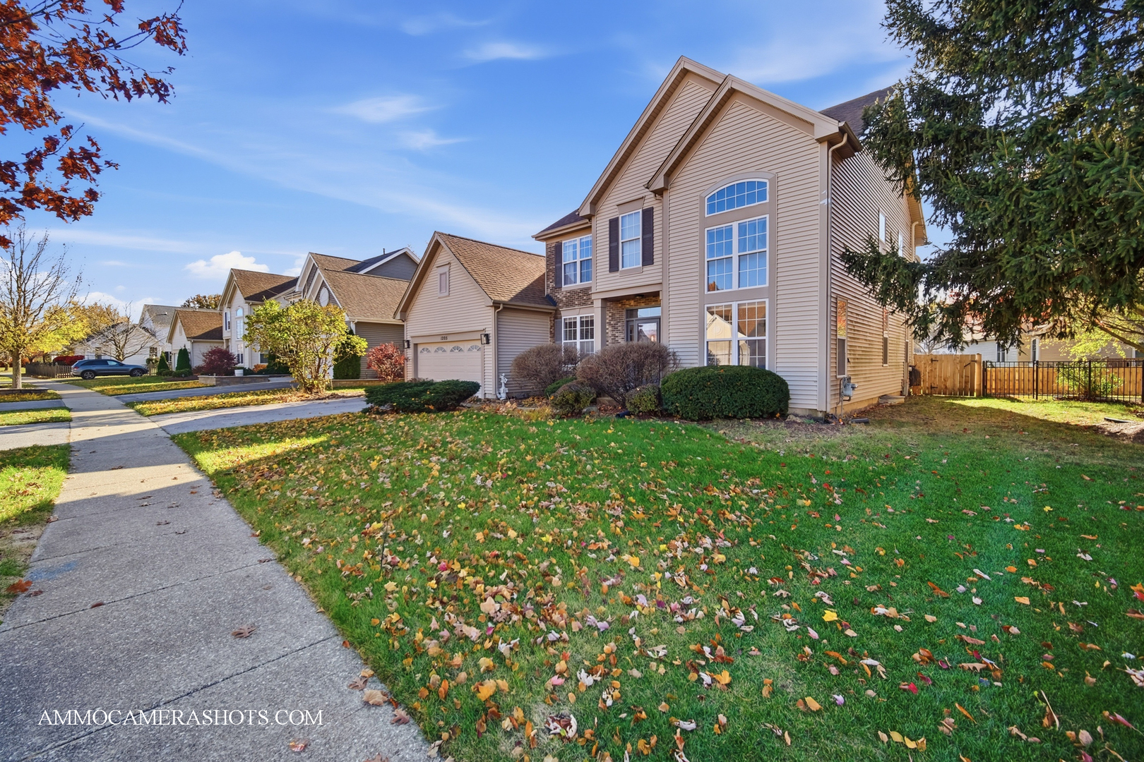 This stunning home offers incredible curb appeal with beautiful brickwork and professional landscaping that impresses the moment you arrive. The inviting front entry features brick pavers and beveled glass lighting, leading into a grand two-story foyer and living room , dado rail woodwork, elegant moldings, and dimmable recessed lighting. The formal dining room and classic staircase. Throughout the first floor, 9-foot ceilings enhance the open layout, including a beautifully remodeled powder room with Kohler fixtures. The kitchen boasts Granite countertops, custom 36″ white maple cabinets, subway tile backsplash, stainless steel KitchenAid refrigerator, extended center island, butler’s pantry, and sophisticated lighting. The adjacent family room features French doors, spotlighted mantel, and a gas fireplace that can be converted to wood-burning. Upstairs, the primary suite offers vaulted ceilings, a walk-in closet, and a spa-inspired bath with an open European-style shower, pebble flooring, Kohler soaker tub, and double vanity. Three additional bedrooms and a renovated full bath with double sinks complete the second level. Fully finished basement with Vinyl flooring offers flexible space for entertaining, hobbies, or storage, with large egress windows. Additional highlights include an InSinkErator disposal, 3-car tandem garage ideal for a boat or car lift, smart home features (Nest thermostat, Cync lighting, Chamberlain garage opener, doorbell cameras, and smoke/CO2 detectors), and finished patio with Pergola. Upgrades: Finished garage (2025); garage light fixtures (2025); new fence (2024); patio and pergola (2023); patio door (2023); front door and storm door (2022); water heater (2022); full house painted (2022); finished basement with plumbing for a bathroom (2021); second bathroom remodel (2021); kitchen cabinets and backsplash (2019); kitchen under-cabinet range hood (2019); master bathroom remodel (2019); wood flooring on second floor and new wooden stairs (2018); heating and air conditioning (2018); garage door (2011); wood flooring on first floor and new opening between living and family room with French door (2009); roof replaced within the last 5 years. Located in award-winning Indian Prairie School District 204, just minutes from shopping, restaurants, the Route 59 Metra station, and downtown Naperville’s Riverwalk attractions.