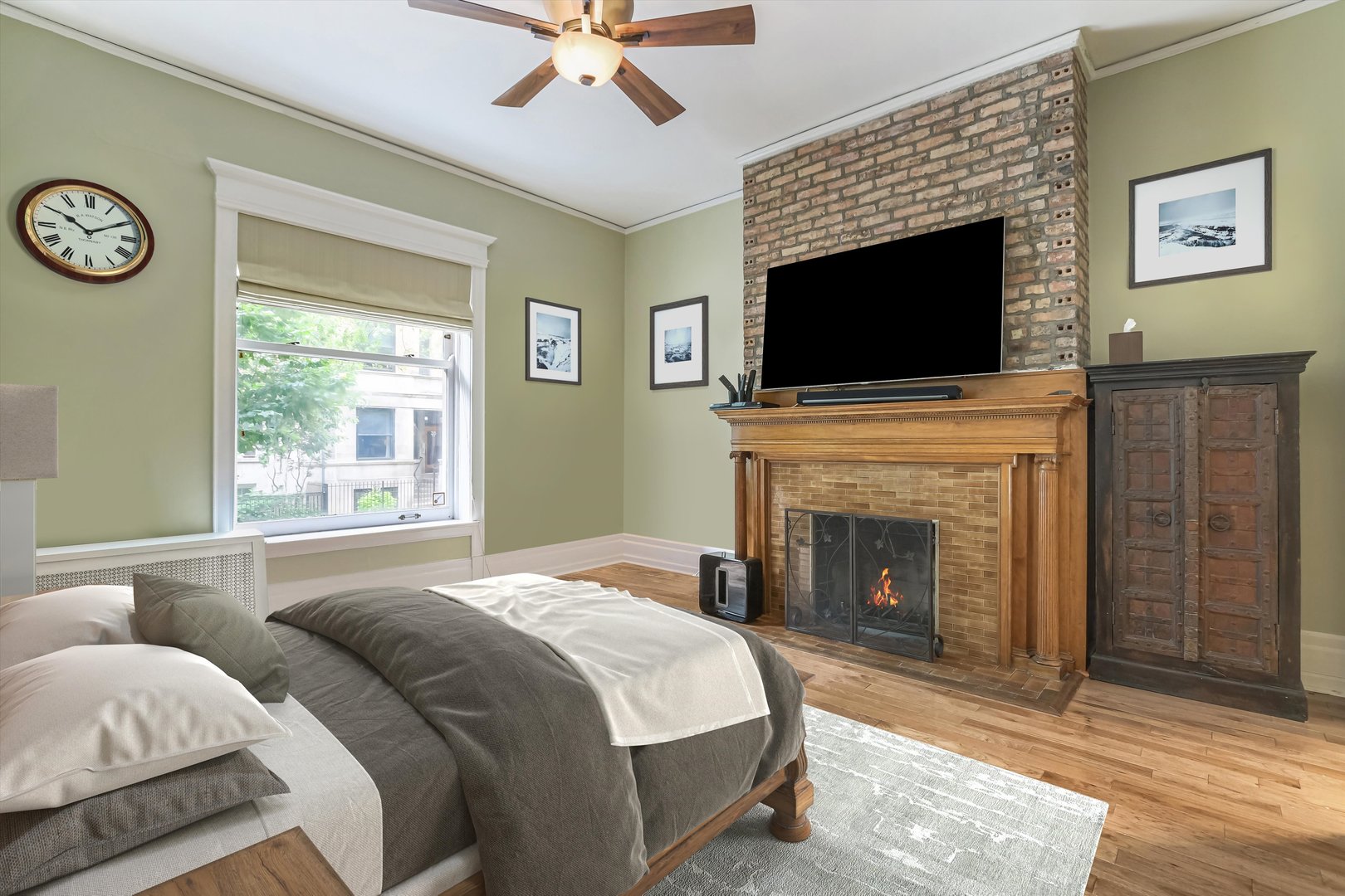 Vintage character and charm enhanced with complementary high end finishes, this impeccably renovated and restored 1897 classic maisonnette. Meticulous floor to ceiling improvements highlight this first floor duplex. Upon opening the massive mahogany front door of this 3213 sqft unit, one is immediately struck by the stunning wide-planked walnut hickory floors that seamlessly connect the rooms on the first level. Mahogany and tiger-oak pocket doors, lead into the parlor and dining room-with an exposed brick chimney and 10ft ceilings. On view from the dining room is a luxurious kitchen with high-end appliances and granite and quartz waterfall counter tops.This home offers 5 fireplaces; 4 bedrooms plus office. The private hallway boasts a curved staircase, that folds into the lower level. Huge picture windows through out. Lots natural light. Oversized laundry room attached to your home. Oversized storage room. This home is perfect for the empty nester that will still have family visit.