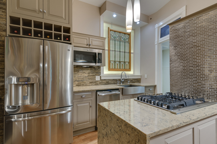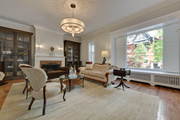 Vintage character and charm enhanced with complementary high end finishes, this impeccably renovated and restored 1897 classic maisonnette. Meticulous floor to ceiling improvements highlight this first floor duplex. Upon opening the massive mahogany front door of this 3213 sqft unit, one is immediately struck by the stunning wide-planked walnut hickory floors that seamlessly connect the rooms on the first level. Mahogany and tiger-oak pocket doors, lead into the parlor and dining room-with an exposed brick chimney and 10ft ceilings. On view from the dining room is a luxurious kitchen with high-end appliances and granite and quartz waterfall counter tops.This home offers 5 fireplaces; 4 bedrooms plus office. The private hallway boasts a curved staircase, that folds into the lower level. Huge picture windows through out. Lots natural light. Oversized laundry room attached to your home. Oversized storage room. This home is perfect for the empty nester that will still have family visit.