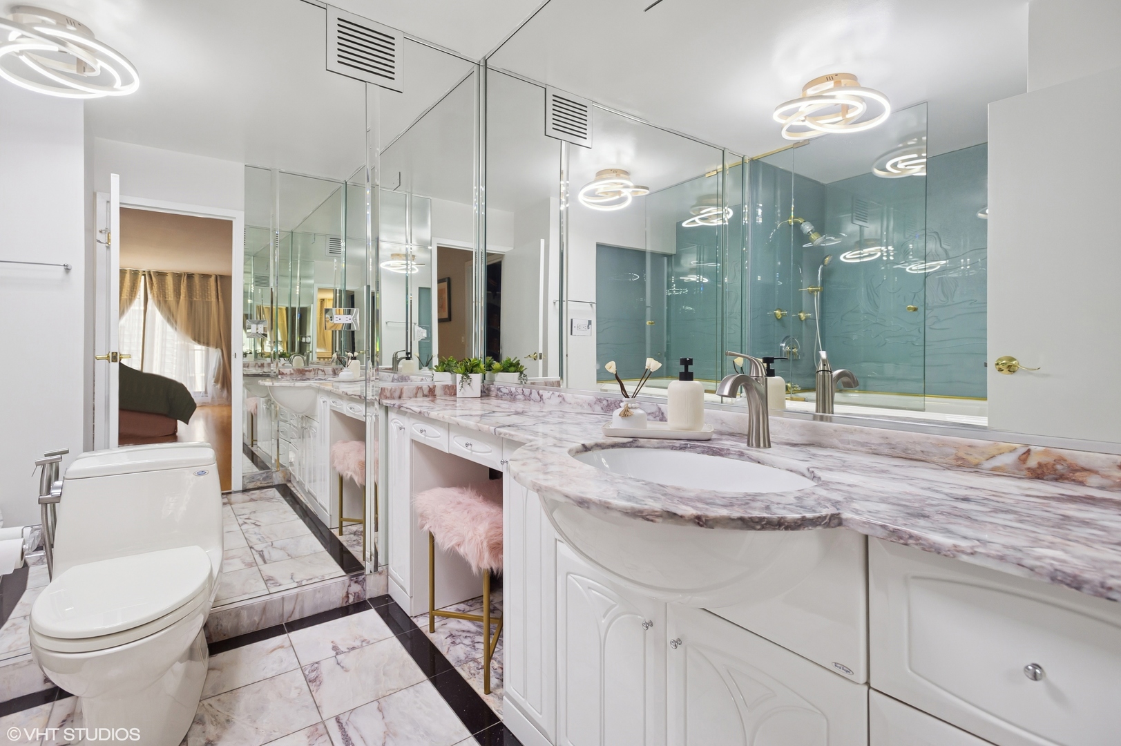 The largest 2 bedroom, 2 bathroom floor plan in one of Lake Shore Drive’s most sought after full amenity buildings in the Gold Coast. Enjoy panoramic lake and skyline views from a 27-foot lake facing balcony, with unobstructed vistas of the lake, Air and Water Show, Navy Pier fireworks, Oak Street Beach, and the city skyline. Step through elegant double doors into a gracious Carrara marble foyer, leading into a spacious living room and formal dining room, offering panoramic views perfect for enjoying dining with a backdrop of the beach and lake. The beautifully renovated kitchen features imported Italian natural wood cabinetry with frosted glass insets and intelligent storage solutions, including pull-outs and fold-out corners. Sleek granite countertops and backsplash, under-cabinet lighting, and a built-in breakfast bar elevate the space. Appliances include a top-of-the-line stainless steel package, Sub-Zero refrigerator (2021), Miele cooktop, and a stylish glass-and-metal exhaust fan. A newer washer/dryer (2021) has been relocated to the hallway near the bedrooms for added convenience. The expansive en-suite primary bedroom includes two large closets and a walk-in closet. The spa-like primary bath is adorned with pink and white Italian marble, a wall-to-wall custom marble vanity, designer sink and faucet, and a Jacuzzi tub with hand shower and gold-plated hardware. The second bath showcases an imported Italian wood vanity with a seashell-shaped sink, Italian fixtures, and marble tile work with multiple shower heads and body sprays. Both bedrooms open to west-facing balconies with stunning city skyline view. Enjoy the best of Gold Coast living in a full-service, pet-friendly luxury building featuring 24-hour door staff, on-site management and engineer, a rooftop indoor pool with panoramic lake views, two spacious sun decks, a fully updated party room with indoor/outdoor seating and catering kitchen, fitness center, heated valet garage with guest parking, receiving room, and assigned storage. Smoking is permitted on balconies only. The building is financially strong with $3.6M in reserves and no special assessments. Schedule your private showing today.