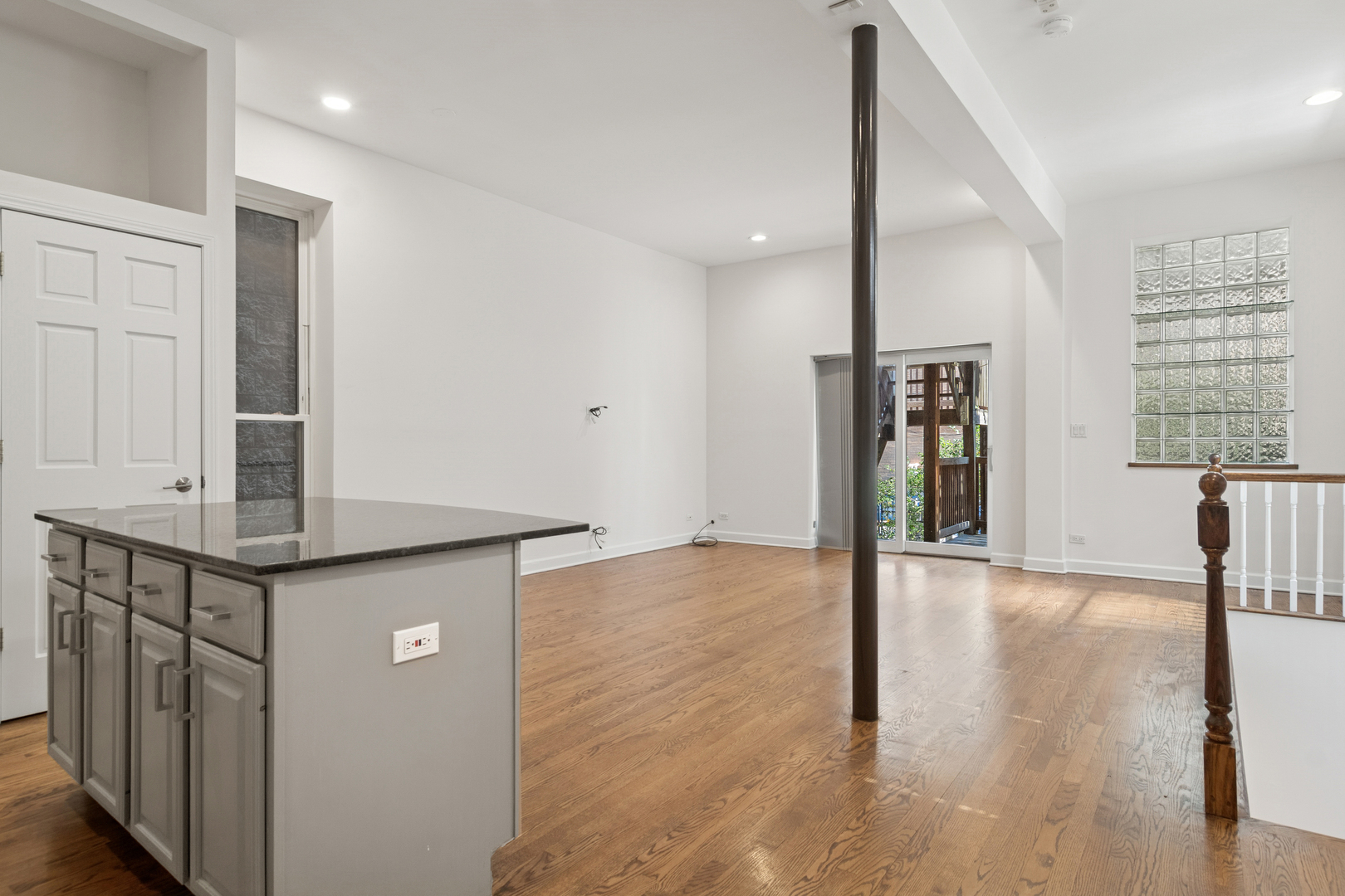 Welcome to this beautifully updated duplex-up, ideally positioned between Wicker Park/West Town! A seamless blend of historic charm and contemporary updates. Step through the front door and be greeted with generously sized living and kitchen areas, dramatic 10′ ceilings, and plenty of natural light. The kitchen has refreshed cabinetry, under cabinet lighting, handsome subway style backsplash, new/newer stainless steel appliances, plenty of counter space, large center island with additional storage and comfortable space for seating. The kitchen also features a large and separate sink/wet bar – perfect for entertaining. Downstairs, there are two comfortable bedrooms with generous closet space… including a fully-customized walk-in closet fitted with Elfa closet system. The second full bath has also been refreshed and is conveniently accessible via either direct access from the primary bedroom, or the main hall. The entire home was recently professionally painted, including re-staining of window wells and staircase risers. Other notable features include: In-unit laundry; Convenient entry/exit from either the first or second floors; one deeded parking space directly behind the building (included in price); Multiple outdoor areas, including a large private deck, and a charming and shared fully-fenced in backyard (perfect for pups). AC unit – 2022.