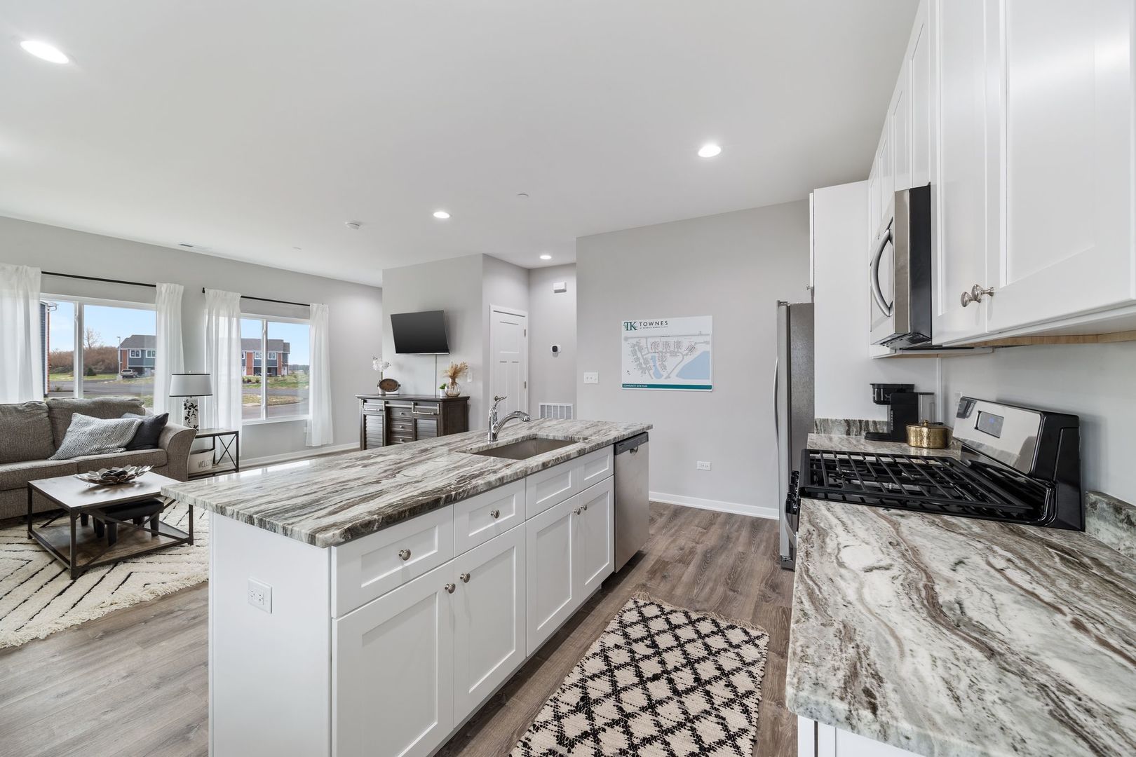NOW OFFERING BUYER INCENTIVES – Qualified buyers may choose a 2-1 rate buydown for lowered payments in the first two years OR a closing credit. Welcome to the new construction homes at Townes of Kendall. Thoughtfully designed with luxury vinyl plank flooring throughout the main level, 9-ft ceilings, and an open-concept layout. Kitchen features 42″ cabinetry, granite counters throughout, stainless steel appliances, and a large island with integrated sink. Upstairs includes 3 bedrooms, a loft, 2 full baths, and a convenient laundry closet. Built with efficiency in mind: high-performance windows, energy-efficient HVAC, upgraded insulation, EV-charger ready outlet, ECOBee thermostat, Samsung Wi-Fi appliances, Wi-Fi garage transmitter, and pre-wired cable/lighting in all bedrooms. Move-in ready homes available OR choose a unit still in construction and personalize finishes with Spring delivery. Preferred lender ready for quick closings. Models located at 1220 Gillespie Ln, Yorkville.