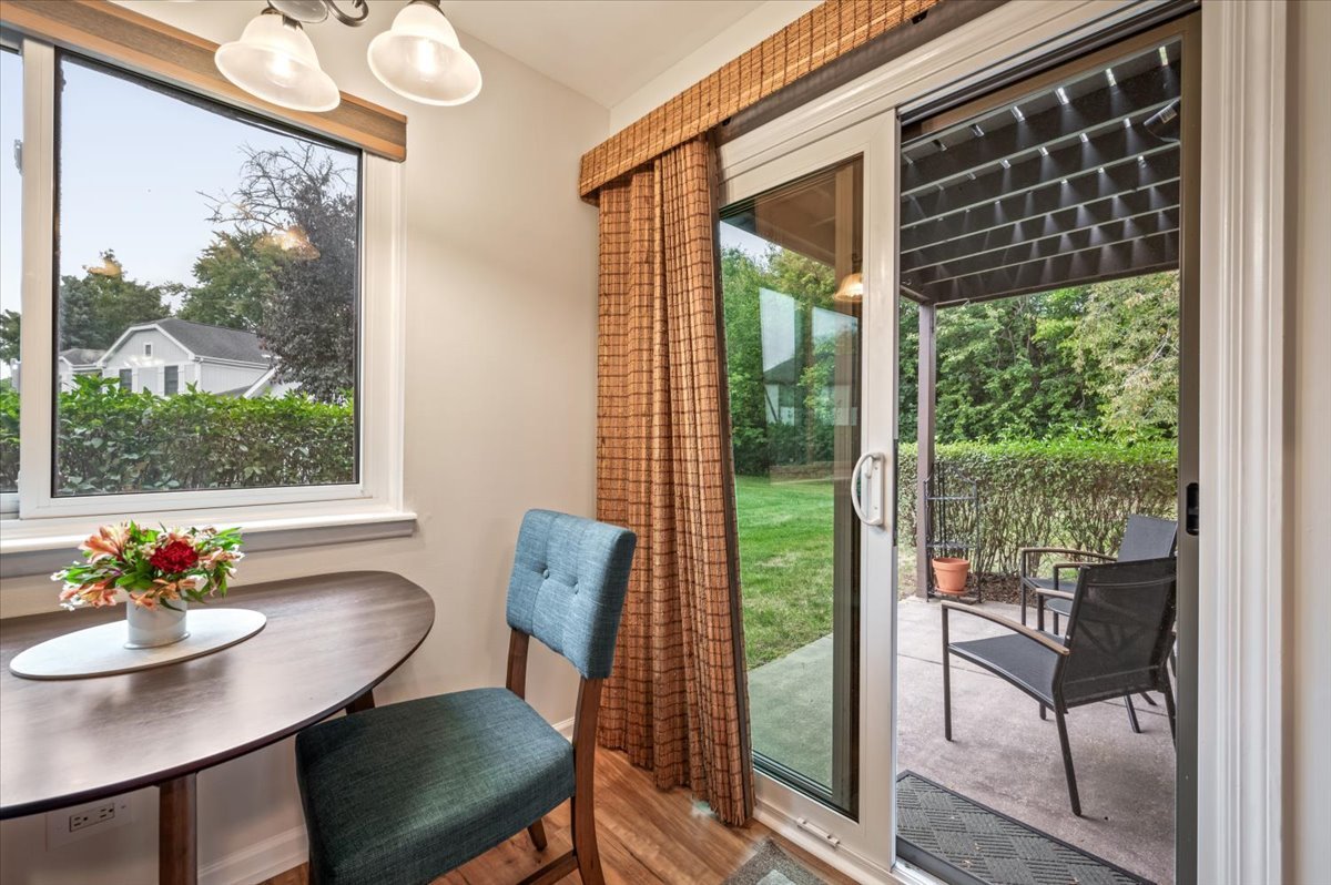 Move-in ready and set in a serene location next to greenspace and the Spring Valley Nature grounds, this beautifully maintained 2-bedroom, 2-bath end unit offers comfort and convenience in a tranquil community setting. The one-story layout features brand-new wood laminate flooring throughout, creating a clean and cohesive look. A bright galley kitchen includes space for a table, a pantry cabinet and easy access to the private patio which is perfect for morning coffee or outdoor dining. Both bathrooms are updated in neutral tones, including a refreshed primary bath. The extended garage provides one extra-deep parking space with plenty of room for storage. Low monthly assessments include access to the community pool which you can enjoy next summer ! A wonderful combination of a turnkey condo, peaceful surroundings and easy, maintenance-free living. Welcome home!