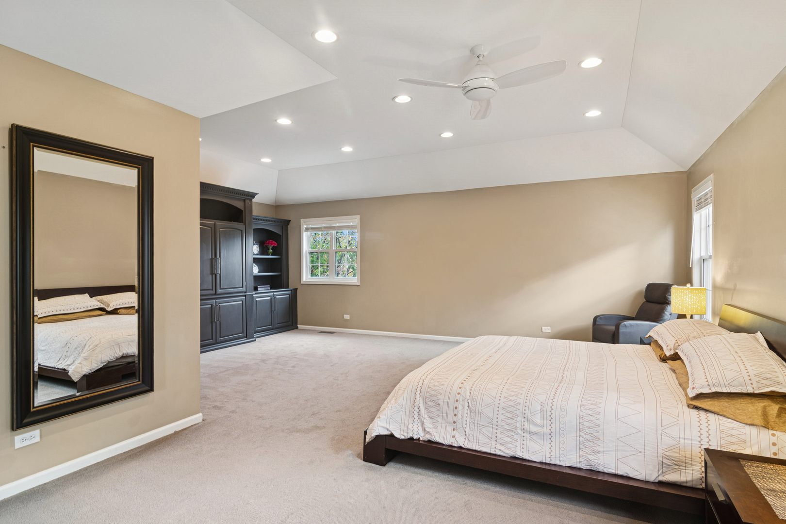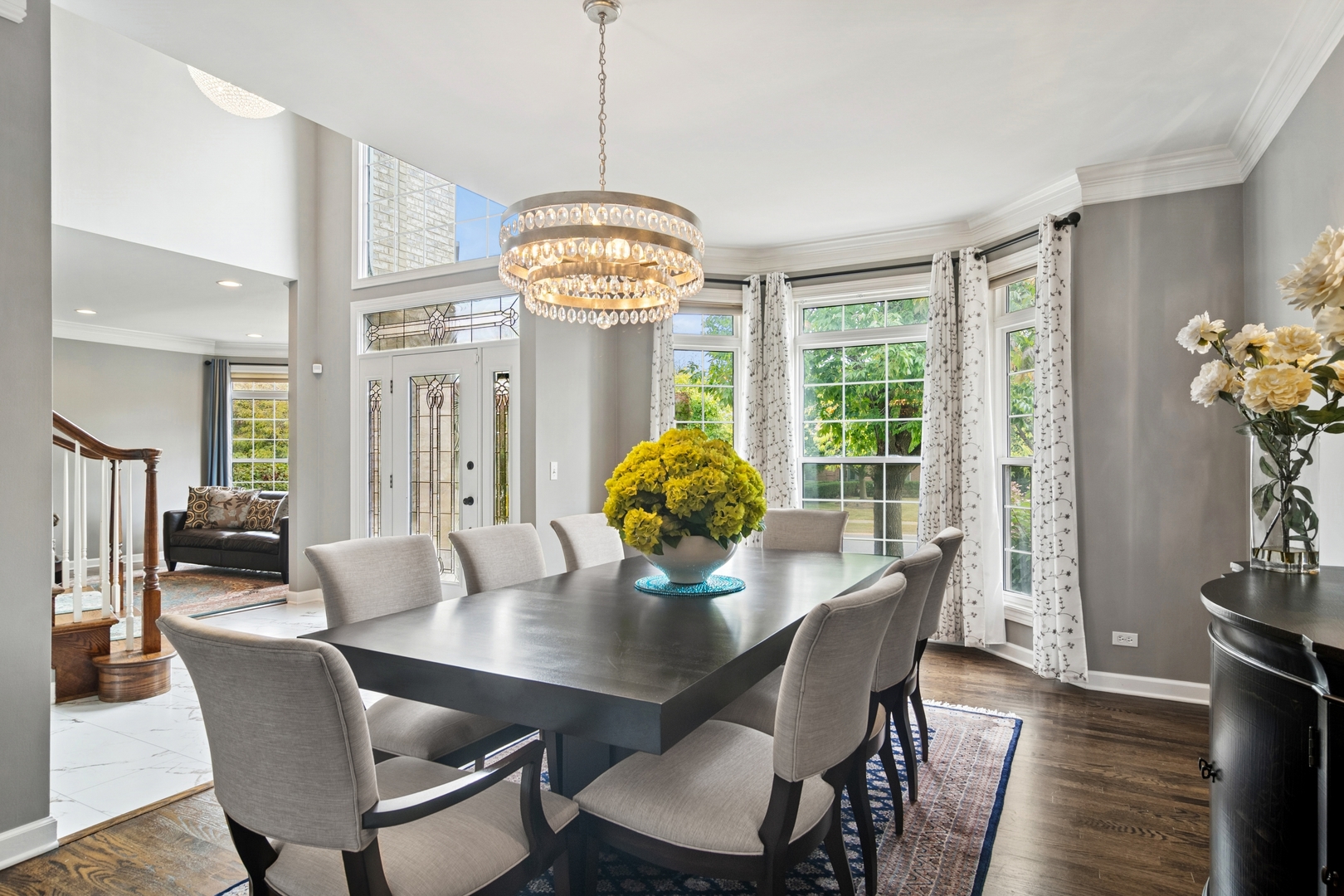 A HOME LIKE THIS DOES NOT COME ON THE MARKET OFTEN. Make sure you don’t miss this stunning, elegant home in Peregrine Lake Estates. The perfect blend of open concept living yet the right amount of separation for cozy, defined spaces. A perfect floor plan for entertaining, working, and just everyday living. Enter the elegant foyer with soaring ceilings, porcelain tile flooring, breathtaking lighting, and a winding staircase. A lovely formal living room and dining room greets you at the entrance with beautiful bay windows & rich dark wood floors. The family room feels so luxurious with the 18 ft. soaring ceilings, and updated fireplace yet it’s the perfect spot for relaxation. The updated gourmet kitchen with granite countertops, backsplash, center island, pantry, and a spacious eating area is both functional and tastefully done. Need to go upstairs? This kitchen is complete with a back staircase! A charming office with built-ins and a full bath on the first floor make for ideal main floor living. The primary suite is a perfect blend of warmth & elegance with a walk in closet, a sitting area with built-ins, and an lovely updated primary bath. The second bedroom has its own full bathroom and walk-in closet. Two more generous size bedrooms and another full bath complete the second level. Downstairs is the full walkout basement that will take your breath away with everything it has to offer. Flooded with tons of natural light all afternoon with the western exposure, this is the absolute must see spot for all your gathering and entertaining. A full bar in the rec room area, another family room area toward the rear, a full bath and another guest suite or office if needed. All freshly painted, recessed lighting, and great ceiling height make for the ideal additional living, entertaining space. And of course you can just walk right outside to your backyard retreat. Whether it’s up on the deck or on the patio just enjoy the view of nature. Peregrine Lake Estates is the perfect blend of comfort, elegance and nature all in one of Palatine’s most desirable neighborhoods. With the mature tree lined streets, and tranquil ponds this is such a lovely picturesque community yet close to everything you could want as far as shopping, dining, parks, and award winning Fremd High School. Updates include*NEW ROOF 2023* 2023 NEW HOT WATER HEATERS* NEW EPOXY GARAGE FLOOR JUST COMPLETED* BRICK PAVER DRIVEWAY REDONE 2024* Come see this scenic beauty and the lasting value of this location today.