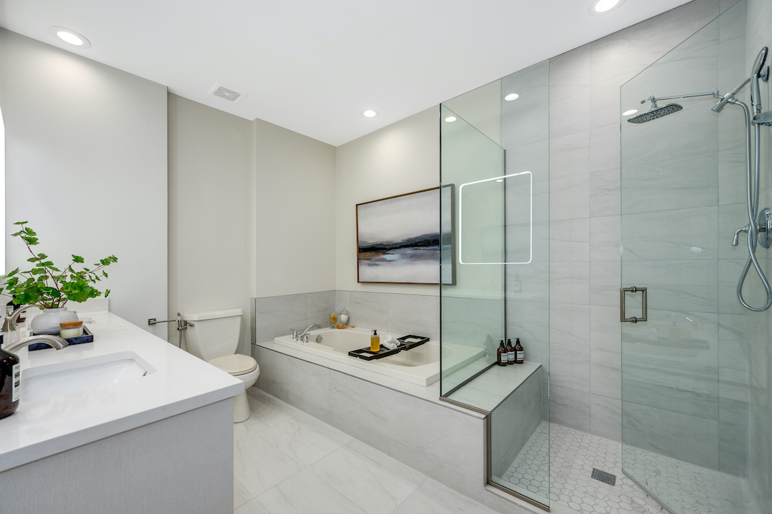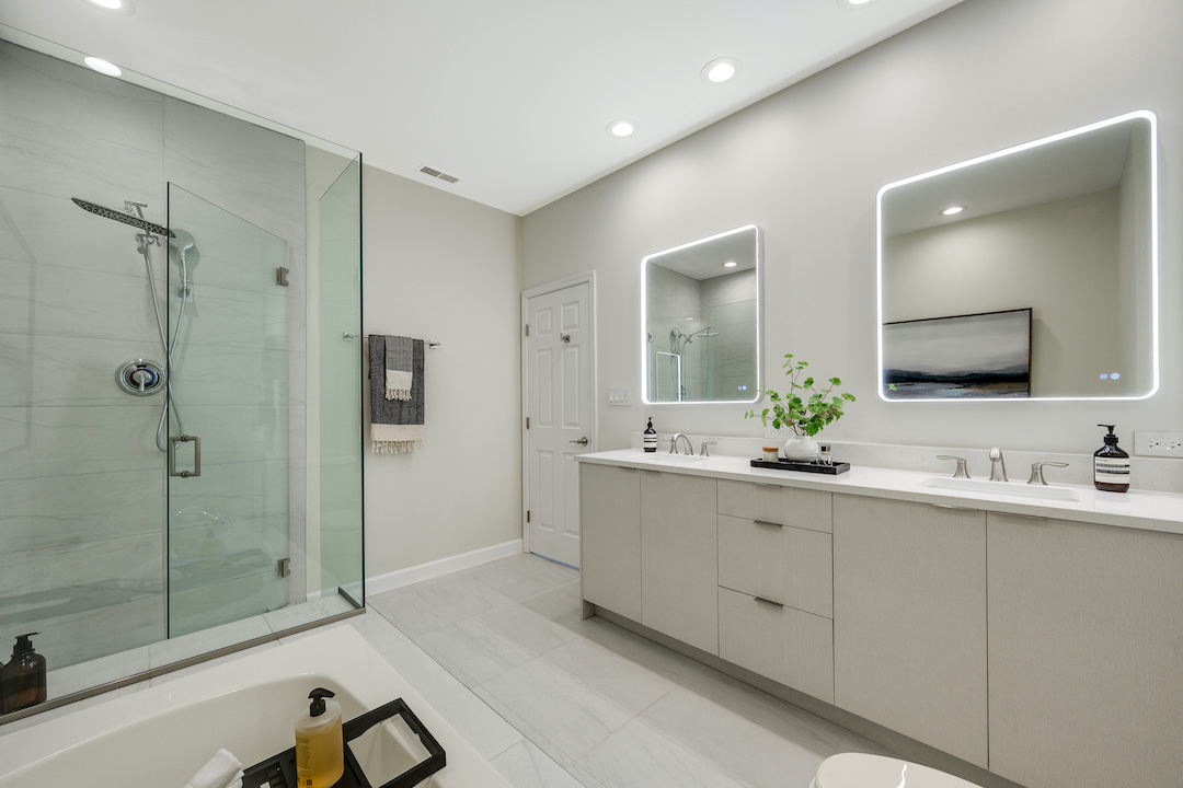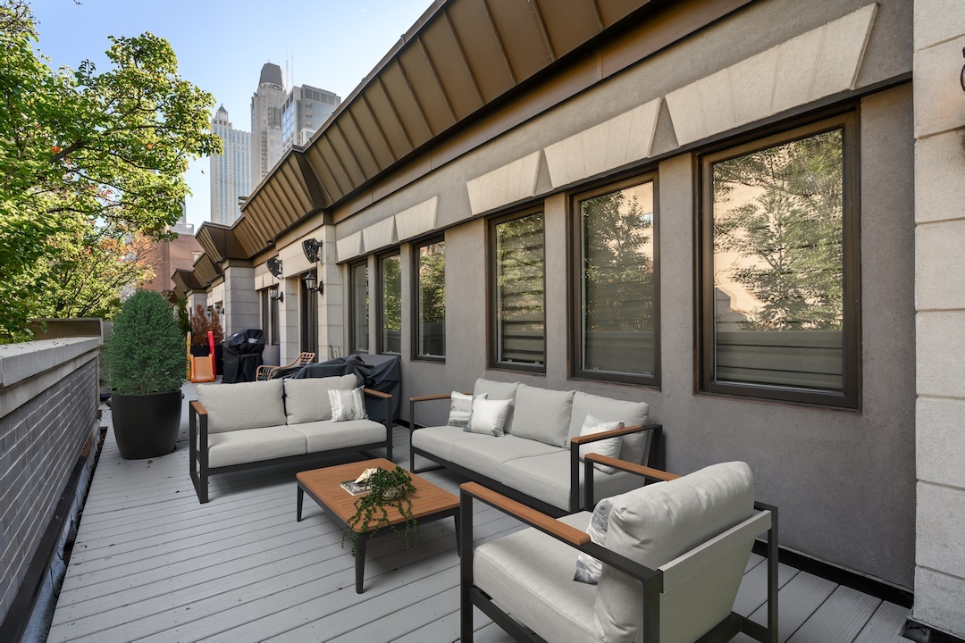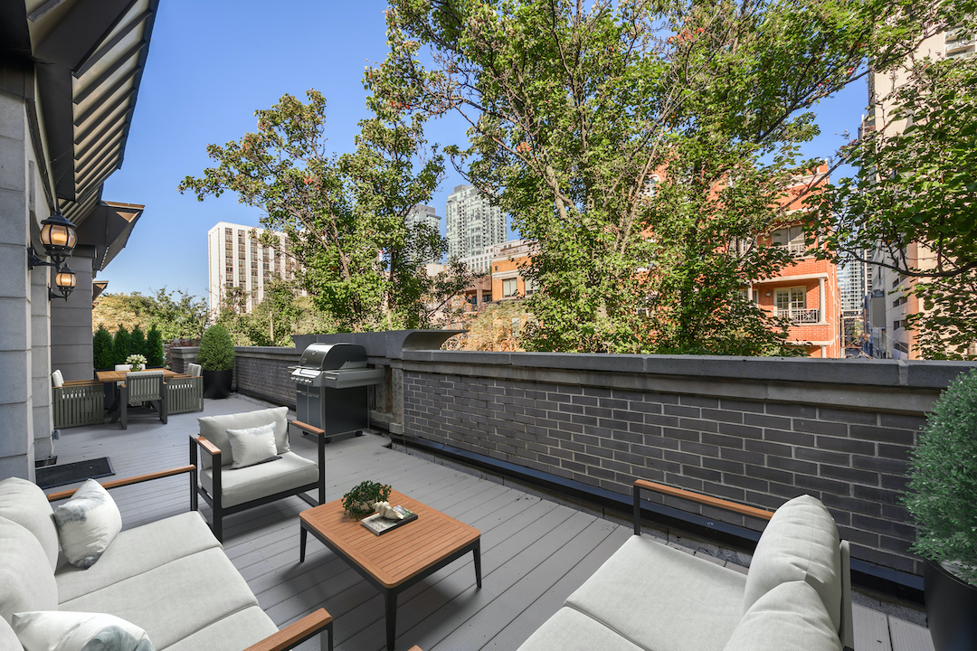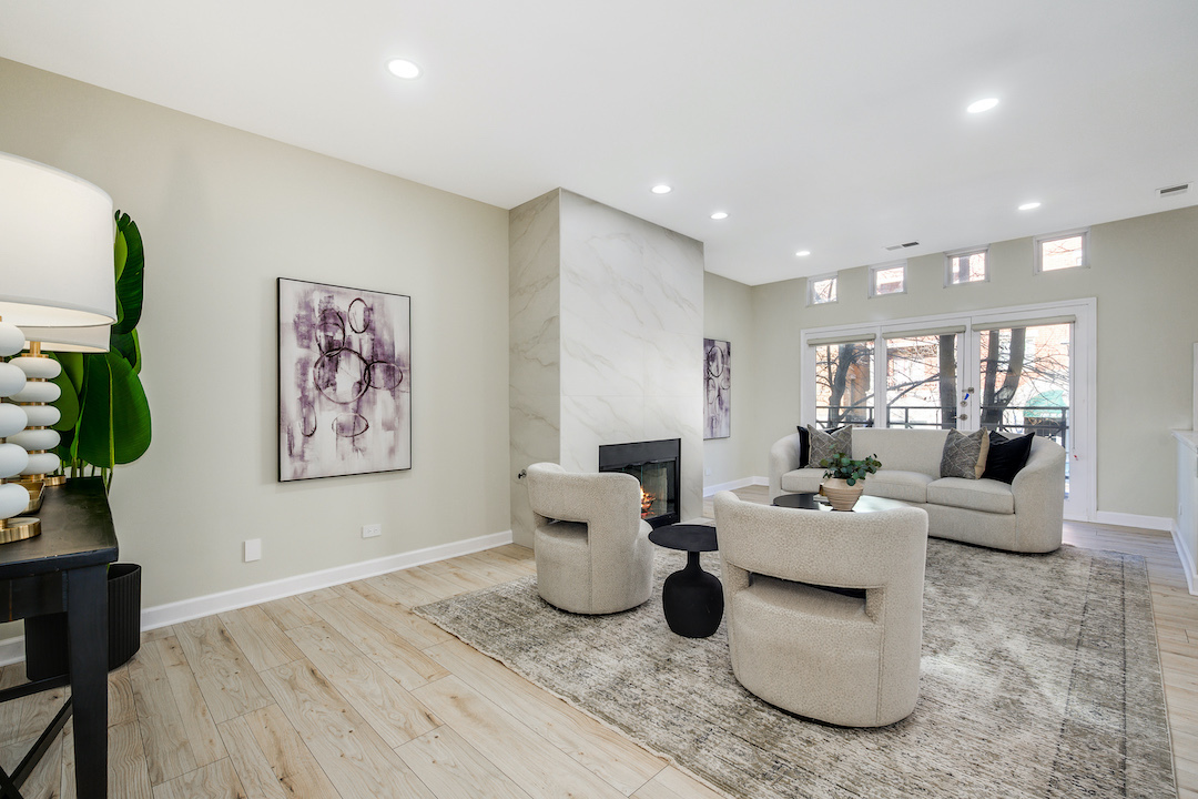 Beautifully renovated Oak Club 4 bedroom townhome! The open kitchen floorplan has been reinvented to maximize seamless living spaces and provides an abundance of storage, well located powder room and custom lighting details. Gorgeous custom cabinetry, all new Bosch appliances, quartz countertops and lovely fireplace surround create a cohesive and unified aesthetic on the living level. The large primary bedroom suite includes space for separate seating or additional storage as needed. Huge walk in closet! The primary bath features a separate tub and shower with new vanity, quartz countertop, elegant tilework and lovely lighted mirrors. The separate ensuite bedroom on the second floor provides many different living options as needed. The 2 additional bedrooms on the third floor share a bath and each includes generous closet spaces and the fabulous terrace opens for ease of indoor / outdoor living without requiring access through a bedroom. The practical floorpan wastes no space and is both accessible and luxurious. 2 attached garage spaces and an oversized storage room plus closet spaces on the lower level complete this perfect floorpan. The Oak club is a gated townhome community moments from Washington Square Park, shopping, dining, and the best of Chicago downtown living.