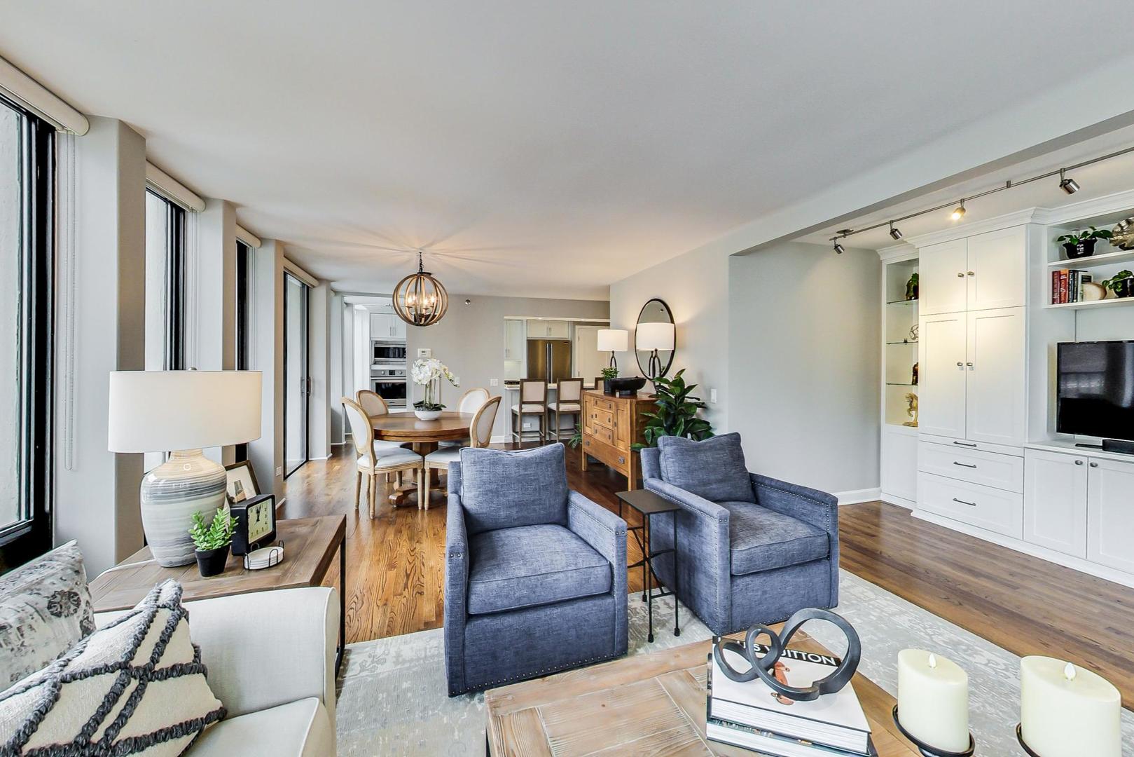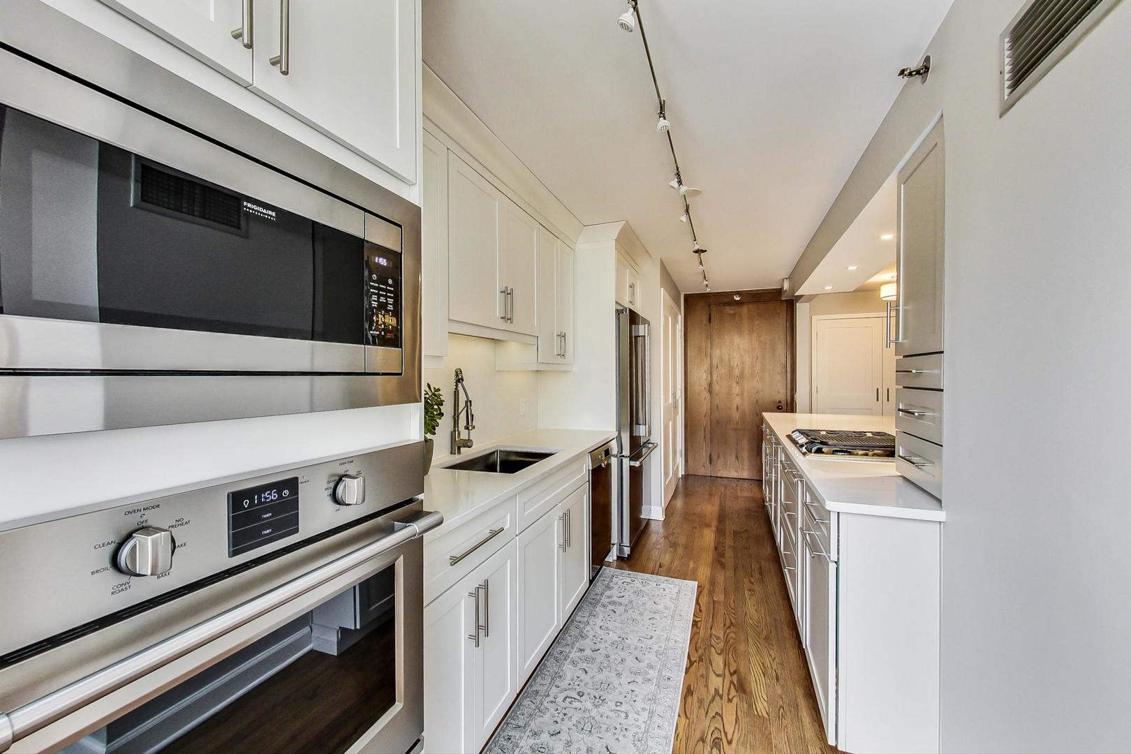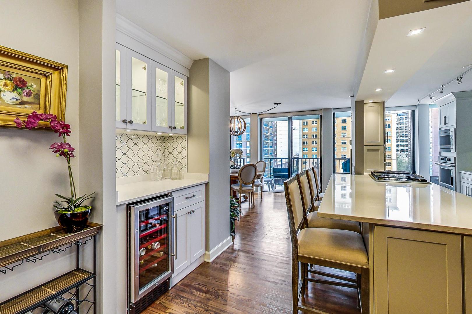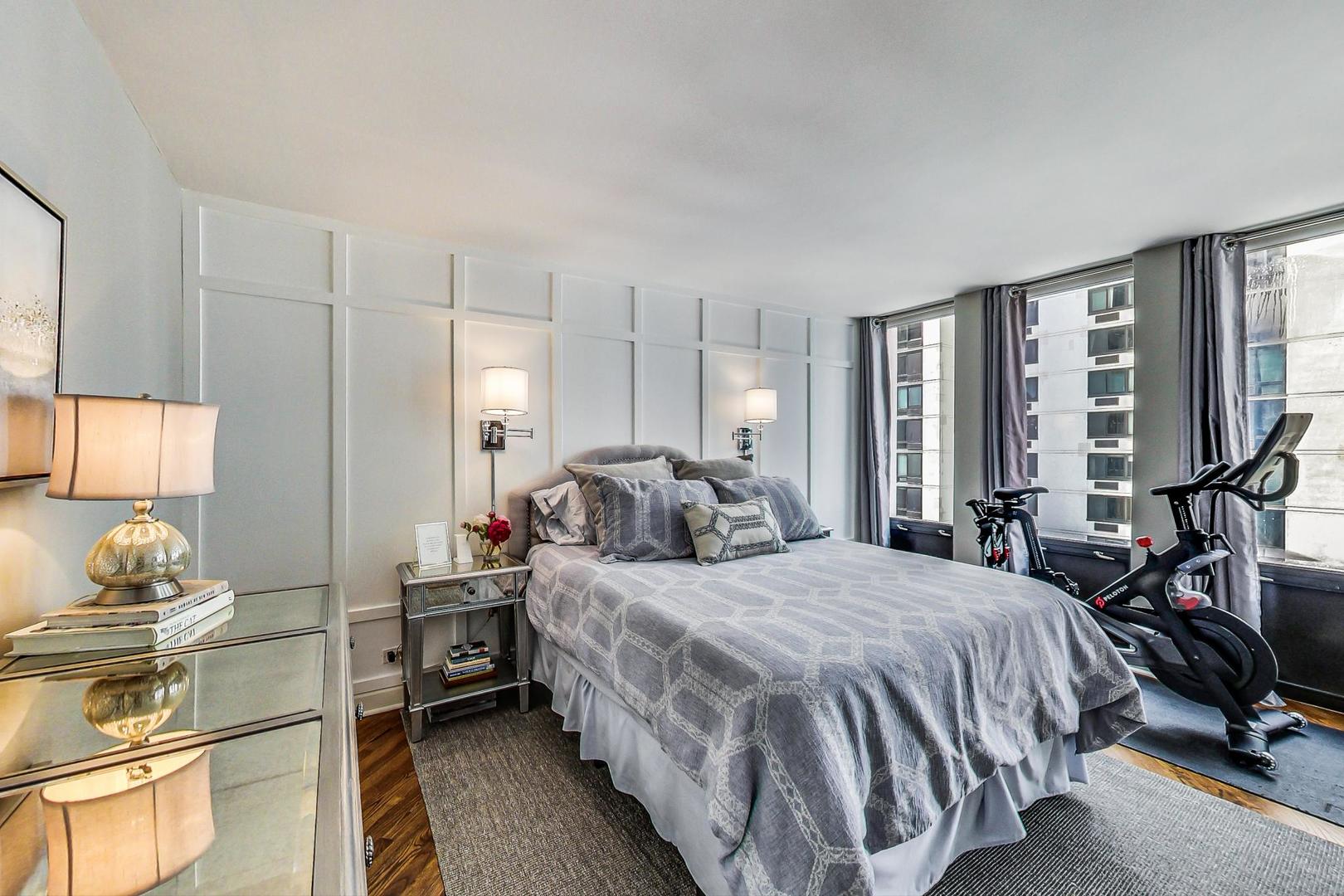 Completely redone with bespoke finishes, this oversized corner 2 bed, 2 bath is perfection. Located in the heart of the Gold Coast, this corner unit has the coveted open floor plan & is flooded with light from floor-to-ceiling windows offering idyllic views. Enjoy cooking & entertaining from the large custom kitchen w/oversized breakfast bar, stone countertops & backsplash, stainless steel appliances, shaker cabinets, & storage galore. The generous floor plan allows for a real dining table & plenty of living space plus a wonderful balcony – perfect for grilling or just relaxing. In the living room, the custom built-in offers more storage plus a hidden desk. Before heading to the bedrooms, don’t miss the dry bar w/drink fridge & marble backsplash! The primary suite is a private oasis w/a gorgeous marble & porcelain bath with dual sinks, walk in shower, organized closet, decorative millwork & a fabulous built-in that more than doubles the closet space. The second bedroom also has generous organized closets. The hall bath is also perfectly redone with marble & porcelain. Throughout the condo, you will find hardwood floors, custom window treatments & shades, brand new doors, organized closets & new lights w/dimmers. No detail was overlooked during this gut rehab. Large private storage room on 8th floor – easy access! Building features include: 24 hour door staff, onsite gym, party room and incredible rooftop deck. A+ location being just steps to fantastic shopping and restaurants, public transportation and Lake Michigan. One deeded parking spot on the 2nd floor available for 50K.