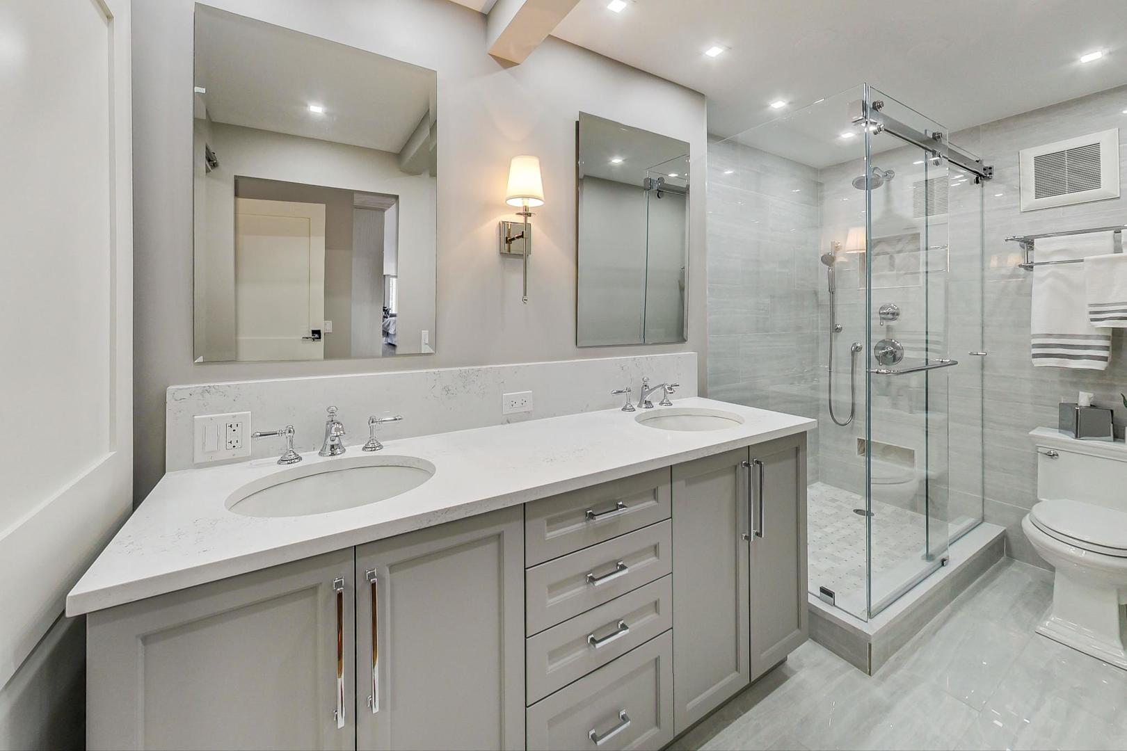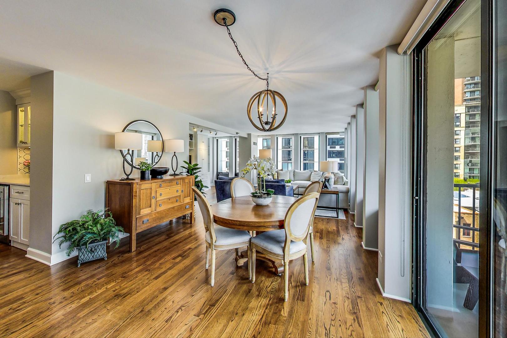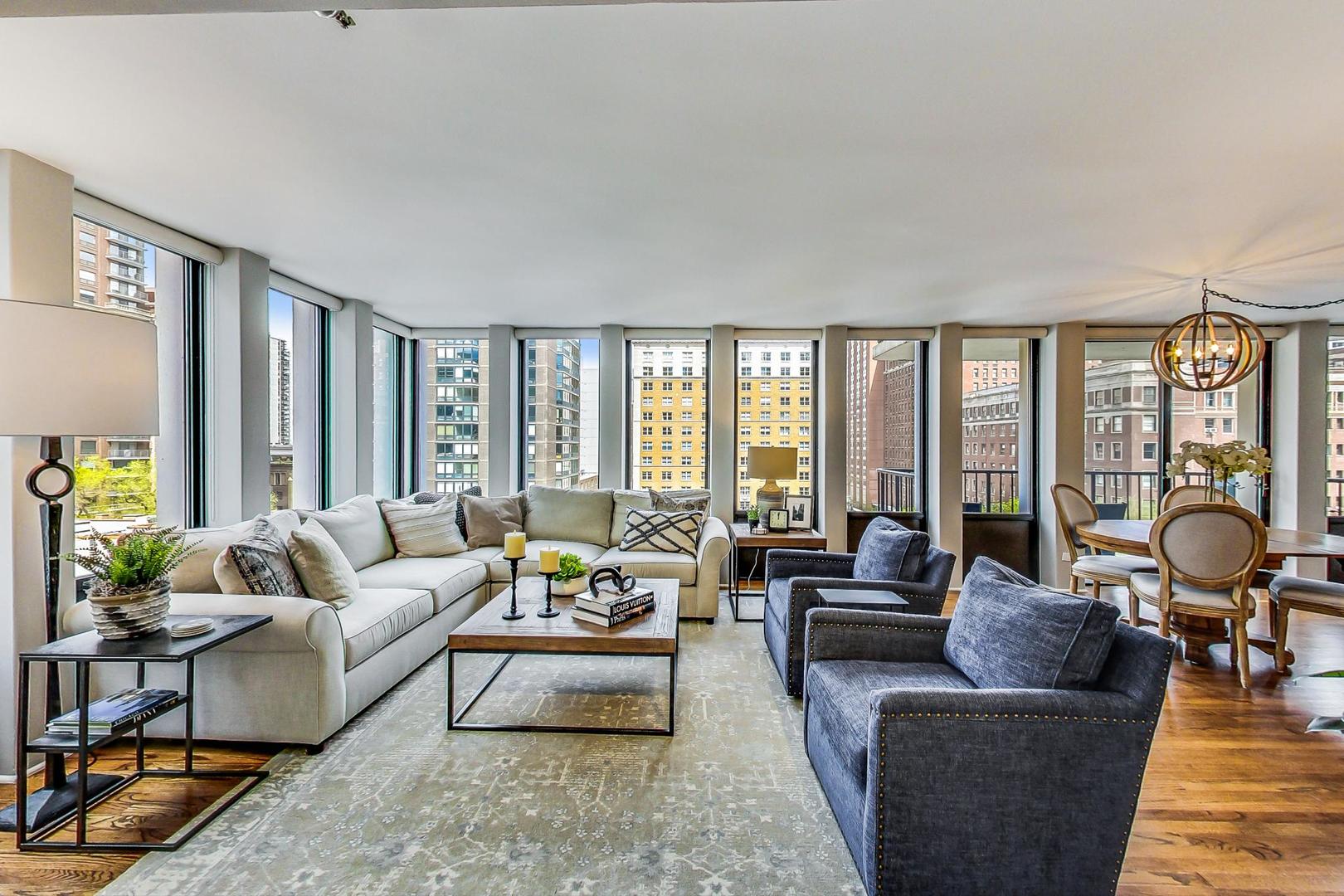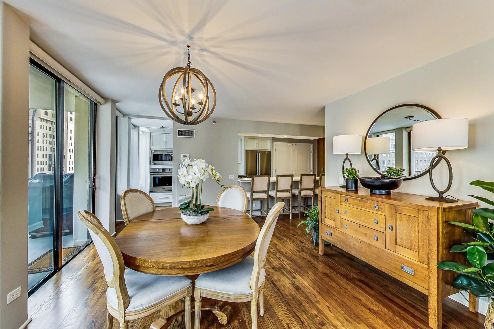 Completely redone with bespoke finishes, this oversized corner 2 bed, 2 bath is perfection. Located in the heart of the Gold Coast, this corner unit has the coveted open floor plan & is flooded with light from floor-to-ceiling windows offering idyllic views. Enjoy cooking & entertaining from the large custom kitchen w/oversized breakfast bar, stone countertops & backsplash, stainless steel appliances, shaker cabinets, & storage galore. The generous floor plan allows for a real dining table & plenty of living space plus a wonderful balcony – perfect for grilling or just relaxing. In the living room, the custom built-in offers more storage plus a hidden desk. Before heading to the bedrooms, don’t miss the dry bar w/drink fridge & marble backsplash! The primary suite is a private oasis w/a gorgeous marble & porcelain bath with dual sinks, walk in shower, organized closet, decorative millwork & a fabulous built-in that more than doubles the closet space. The second bedroom also has generous organized closets. The hall bath is also perfectly redone with marble & porcelain. Throughout the condo, you will find hardwood floors, custom window treatments & shades, brand new doors, organized closets & new lights w/dimmers. No detail was overlooked during this gut rehab. Large private storage room on 8th floor – easy access! Building features include: 24 hour door staff, onsite gym, party room and incredible rooftop deck. A+ location being just steps to fantastic shopping and restaurants, public transportation and Lake Michigan. One deeded parking spot on the 2nd floor available for 50K.