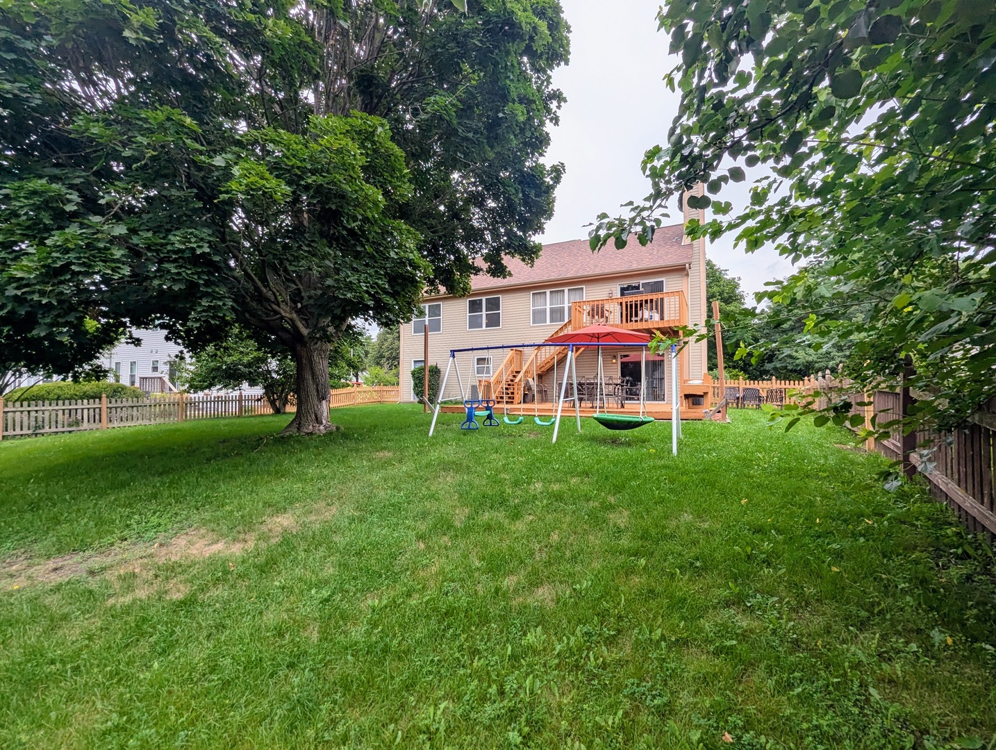 Beautifully maintained 4 bedroom 3 full bath home. The oversided 2 car garage has an additional workshop/storage space. Vaulted ceilings in the living room and kitchen makes the home feel like high end living. Newer liight fixtures, huge 2 story deck that does’t take any space away from the giant back yard. New roof 2020. HVAC 2 years old. Main bedroom has walk in closet with a window and on-suite full bath. The rooms are all great sized with huge closets. Tons of home for the price.