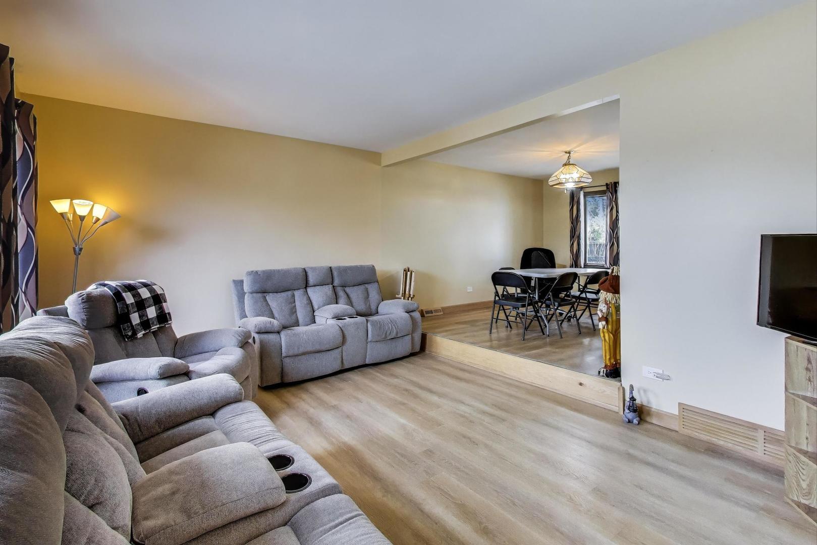 This spacious split level home features four bedrooms and two full bathrooms. The living room flows into a partially separated dining room, allowing for large gatherings and parties. The kitchen is situated at the heart of the home, with sliding glass doors offering a view of the big backyard and patio area that provides endless possibilities for outdoor living, entertaining, or relaxing. A few steps down from the kitchen, there is a massive family room with a large brick fireplace. A bedroom is conveniently located next to the family room, allowing for the flexibility of a first floor bedroom, office, child’s playroom, or exercise space. The attached garage will keep you out of bad weather when coming and going as it leads directly into the home through the designated laundry room. The upstairs features a second full bathroom and three large bedrooms with plenty of closet space for everyone. Situated on a highly sought-after corner lot with a massive backyard and mature tree cover, the curb appeal of this brick and wood home is undeniable. Located conveniently close to parks, shopping, restaurants, schools, and highway access, this home is ready for you to move in today! Property sold As-Is.