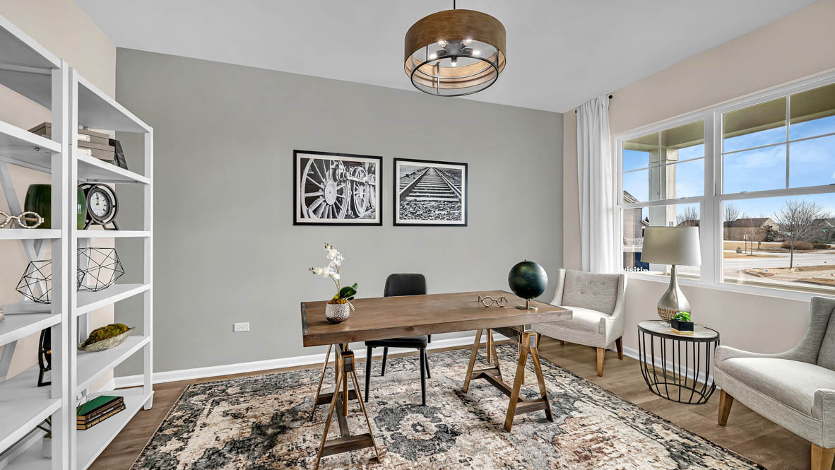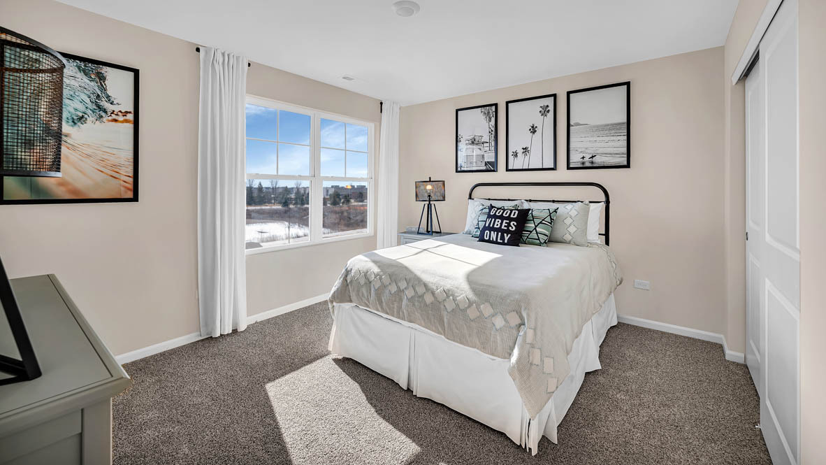 Envision yourself at 1232 Wildflower Lane, Bartlett Illinois, a beautiful new home in our Grasslands Community. This 2-story single family home will be ready for a Spring move-in! This large, scenic homesite includes a fully sodded yard and beautiful landscaping. This Emerson plan offers 3,044 square feet of living space, offering 5 bedrooms, 3 full baths, a loft, 9-foot ceilings, and so much more. Entertaining will be easy in this open-concept kitchen and family room layout with a large island with an overhang for stools, 42-inch designer cabinetry with soft close drawers and crown molding. Additionally, the kitchen features a walk-in pantry, modern stainless-steel appliances, quartz countertops, and easy-to-maintain luxury vinyl plank flooring. Enjoy your private getaway with your large primary bedroom and en suite bathroom with a raised height dual sink, quartz top vanity, and walk-in shower with fiberglass surround and glass shower doors. Convenient walk-in laundry room, 4 additional bedrooms with a full second bath and a linen closet. A very hard to find first floor bedroom will be great for guests and entertaining. All D.R. Horton Chicago homes include our America’s Smart Home Technology, featuring a smart video doorbell, smart Honeywell thermostat, smart door lock, Deako smart light switches and more. Photos are of similar home and model home. Actual home built may vary.