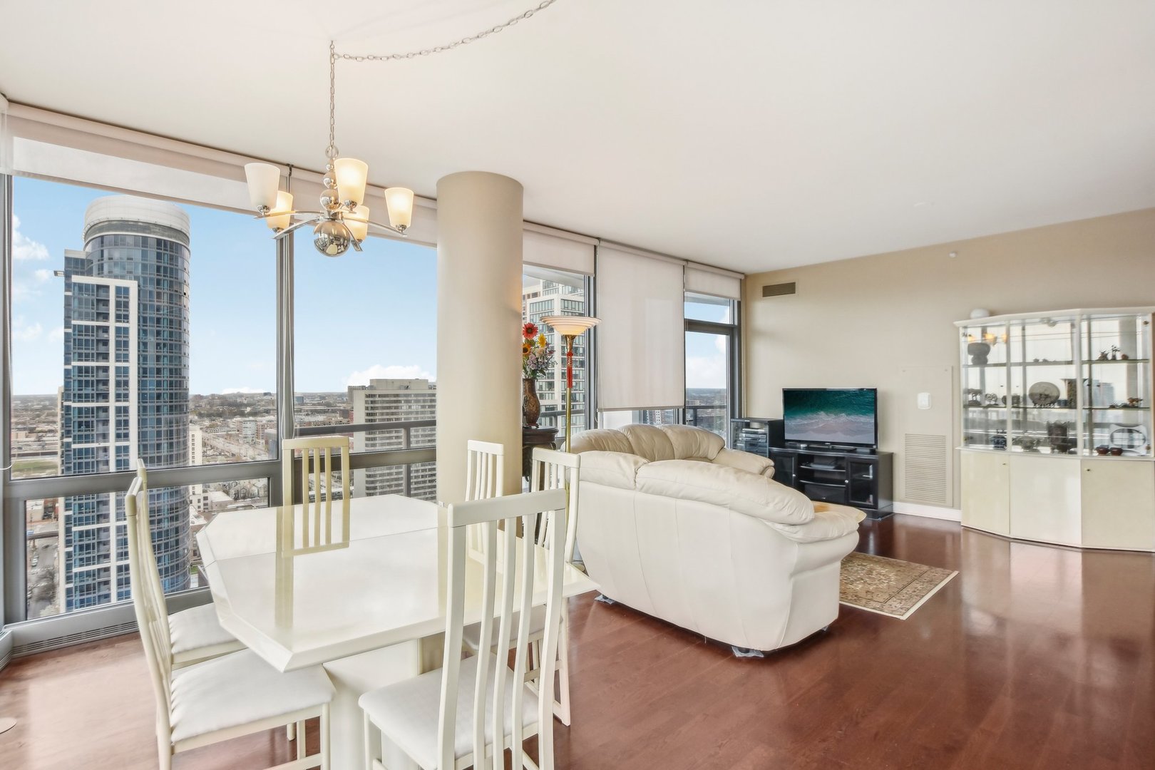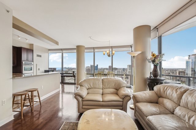 Gorgeous views from every room of this 2Bed/2Bath corner Museum Park condo! Sun-filled unit features floor-to-ceiling windows that showcase stunning city skyline and Lake views, custom window treatments, hardwood floors, stainless steel appliances, granite countertops, new cooktop (2025), custom cabinetry, in-unit laundry, customized closets throughout, and private balcony off of living area to take in the stunning views, perfect for entertaining. Split-bedroom floor plan has spacious primary suite with double closets including a large walk-in closet, a marble bath with double vanity, and a glass shower. Generously-sized guest room has stunning views and den is the ideal home office. Additional storage included & garage parking space available for $35,000 additional. Full amenity building offers 24-hour door staff, outdoor pool, fitness center, party room with sun deck, on-site management, and Amazon Hub along with receiving room. Ideal South Loop location right by many museums, Parks, Northerly Island, Lake Michigan, public transportation, the Loop, and amazing restaurants/nightlife.
