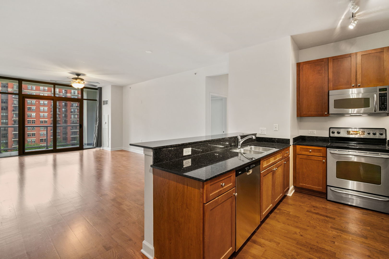 Beautiful 1 bedroom + den, 1 bath condo in highly sought-after Museum Park. This sun-filled home features hardwood floors throughout and an open-concept living and dining area flowing into the kitchen with stainless steel appliances, granite countertops, and a breakfast bar. Floor-to-ceiling windows lead to an extra-long private balcony, accessible from both the living room and bedroom, perfect for relaxing or entertaining. The spacious bedroom offers a walk-in closet, while the versatile den is ideal for a home office or additional living space. A large bathroom with soaking tub and convenient in-unit laundry complete the unit. Deeded garage parking space is available for $30,000 additional and a extra storage locker is included in the price. Full-amenity building includes 24-hour door staff, outdoor pool, fitness center, party room with sun deck, on-site management, Amazon Hub, and receiving room. Prime South Loop location minutes from the lakefront, museums, Northerly Island, public transit, the Loop, and top dining and nightlife.