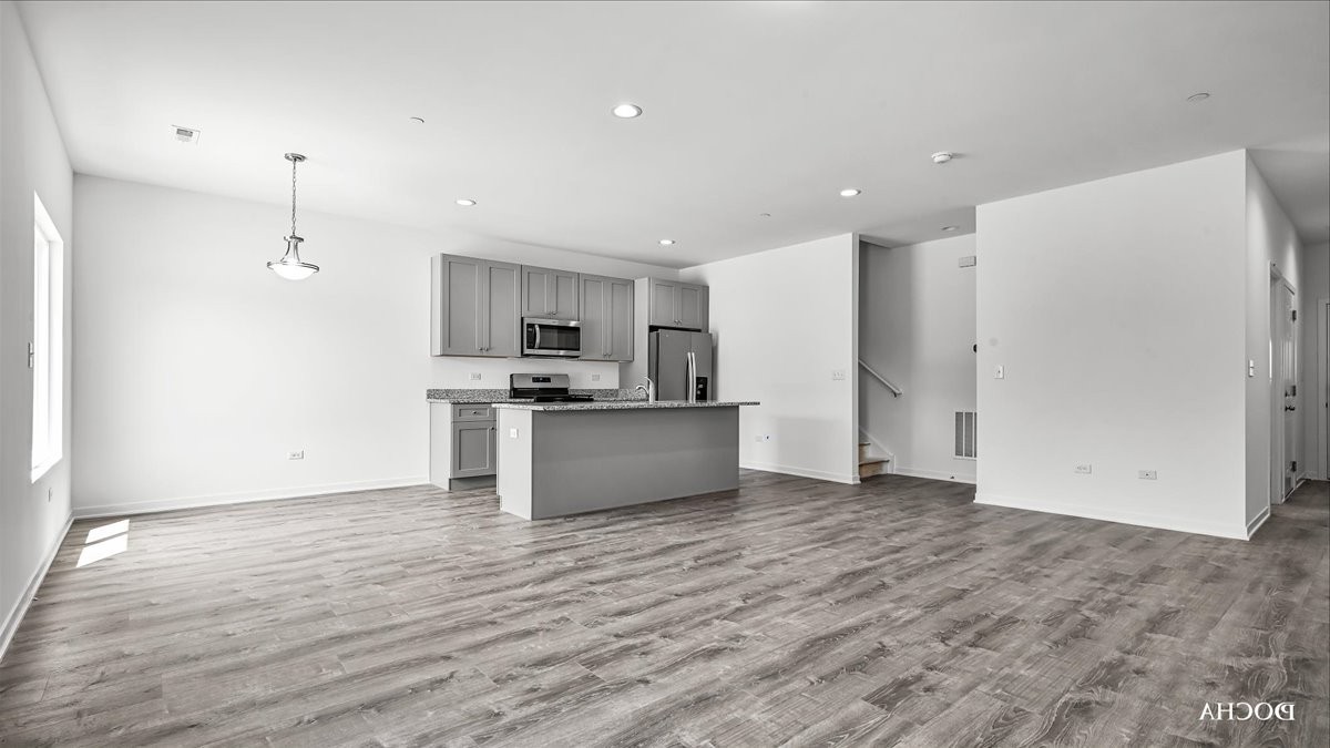 THIS IS A MOVE IN READY UNIT! NOW OFFERING BUYER INCENTIVES – Welcome to the new construction homes at Townes of Kendall. Thoughtfully designed with luxury vinyl plank flooring throughout the main level, 9-ft ceilings, and an open-concept layout. Kitchen features 42″ cabinetry, granite counters throughout, stainless steel appliances, and a large island with integrated sink. Upstairs includes 3 bedrooms, a loft, 2 full baths, and a convenient laundry closet. Built with efficiency in mind: high-performance windows, energy-efficient HVAC, upgraded insulation, EV-charger ready outlet, ECOBee thermostat, Samsung Wi-Fi appliances, Wi-Fi garage transmitter, and pre-wired cable/lighting in all bedrooms. Move-in ready homes available OR choose a unit still in construction and personalize finishes with Spring delivery. Preferred lender ready for quick closings. Models located at 1220 Gillespie Ln, Yorkville.
