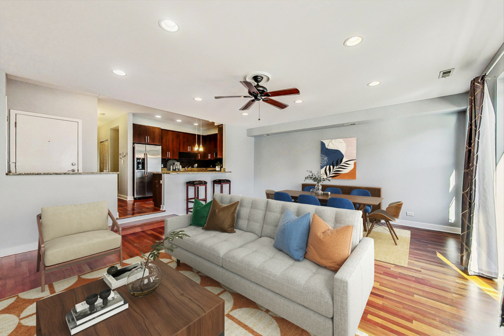 Magnificent home in the vibrant heart of Wicker Park, with any and all options at your doorstep! It is a generous home with a spectacular layout, including an extra wide living/dining room, wraparound kitchen and 2 full and spacious bathrooms for owners and guests alike. The floor plan is brilliant, as it stretches out over more than 1,500 square feet, with a layout that accommodates any and all living needs. Incredible outdoor living space, with huge front terrace overlooking lively and amenity rich Milwaukee Ave, and double wide, full width balcony off of both bedrooms in the rear of the home that welcomes warm sunlight all day long, and easy parking included, just behind the home. Amenity rich and easy to occupy, the neighborhood is equally magnificent, as the best restaurants and night spots in the city can be enjoyed in a full radius around and very close to the home – Milwaukee Ave, Division St, you name it! This includes tons of great shops like the amazing deciBel Audio shop which is a very short walk north, the gorgeous and lush park itself 5 min away, and the Wicker Park el station plus the expressway just around the corner! The good life is easy in this beautiful home that never ceases to impress!