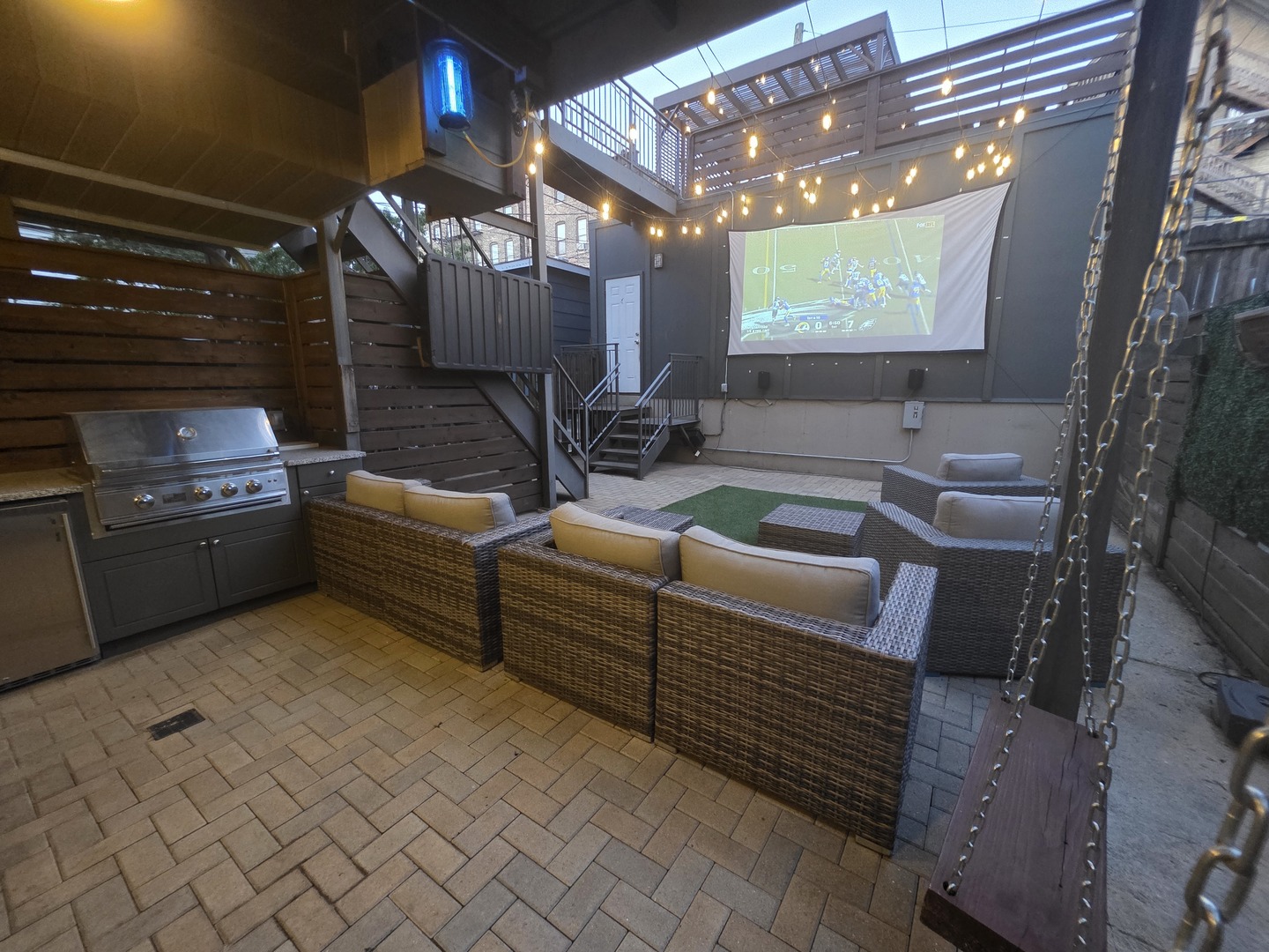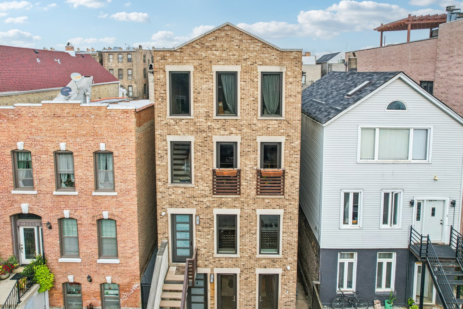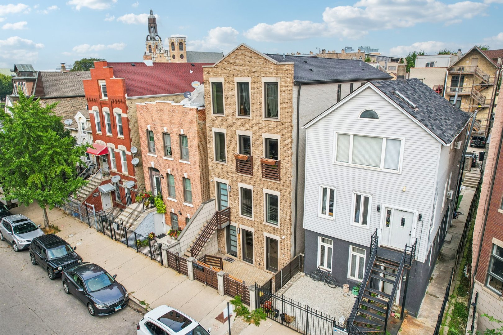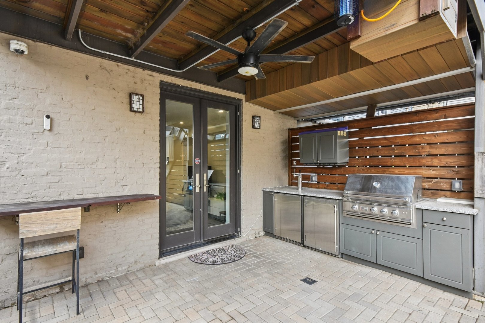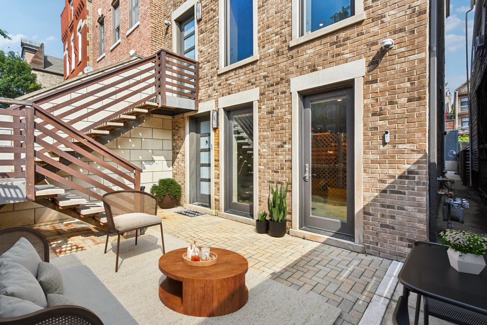 Rare 3BR/2.5BA duplex-up with an open office, 3 private outdoor spaces, including a backyard built for entertaining-full kitchen, gas grill, kegerator, beer cooler, projector/screen, outdoor speakers, heaters, and fans. Second-level patio with swing + backyard swings and children’s rock climbing unit in front yard. Unique layout with all bedrooms upstairs, sunlit primary suite + office area. Open main level with living, dining, and kitchen. Built-out closets, heated floors & steam shower in primary bath. Two garage spaces + outdoor utility room. Prime location near Blue Line, Division St & Milwaukee Ave.