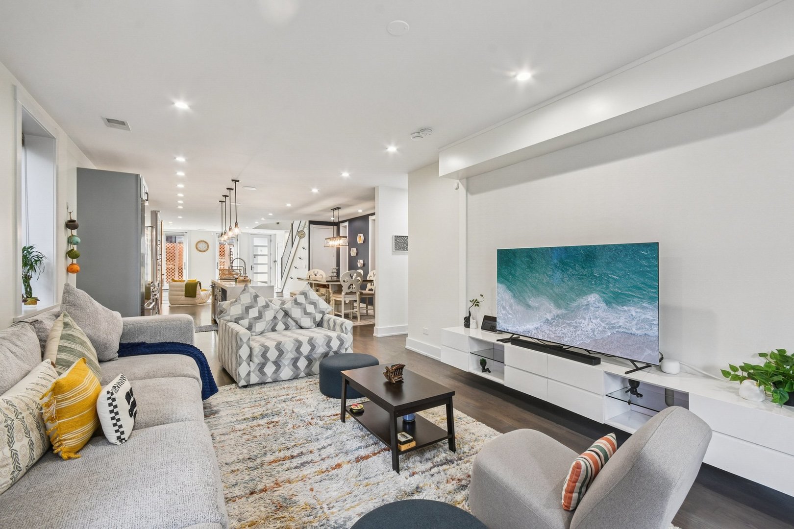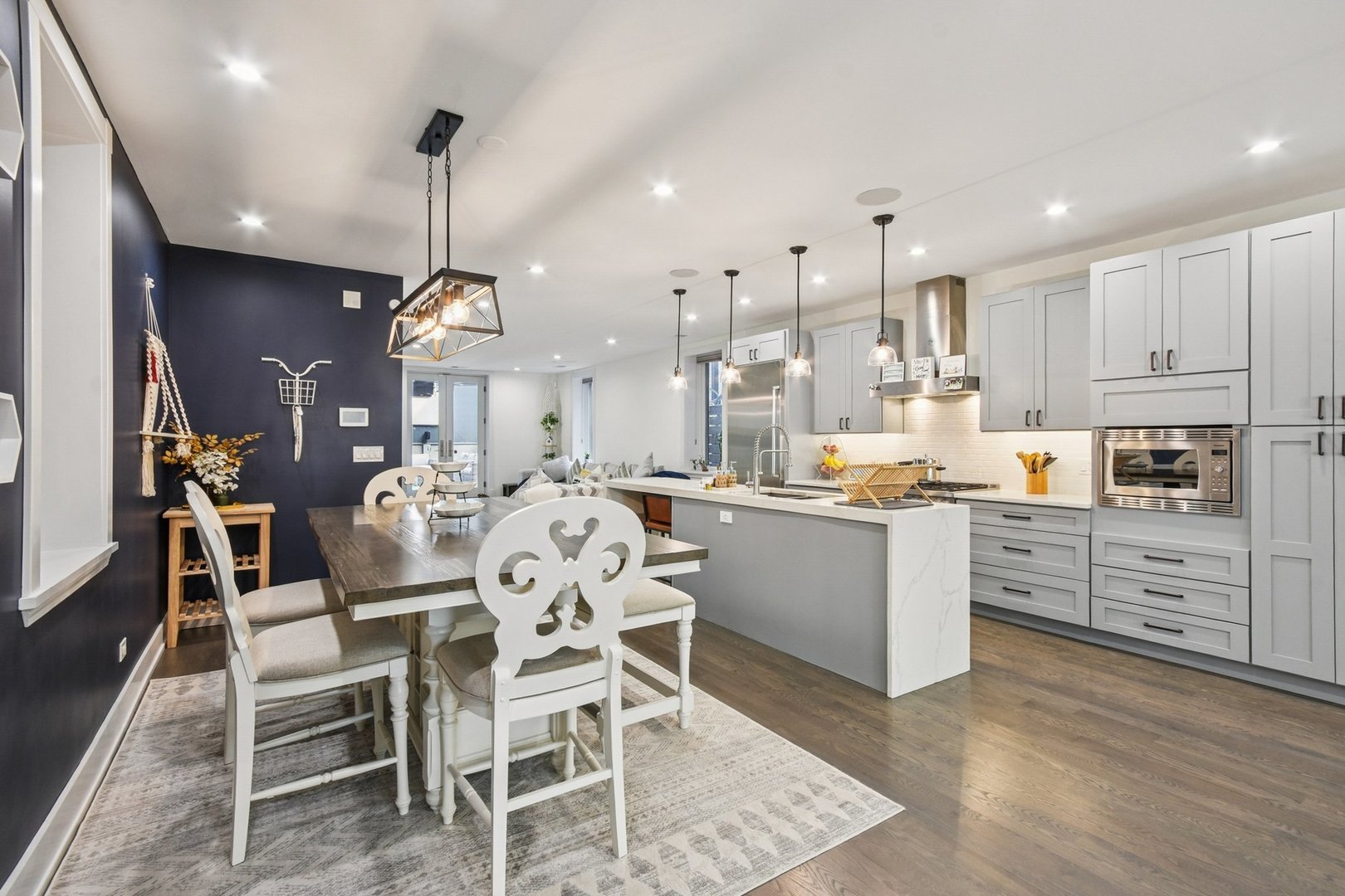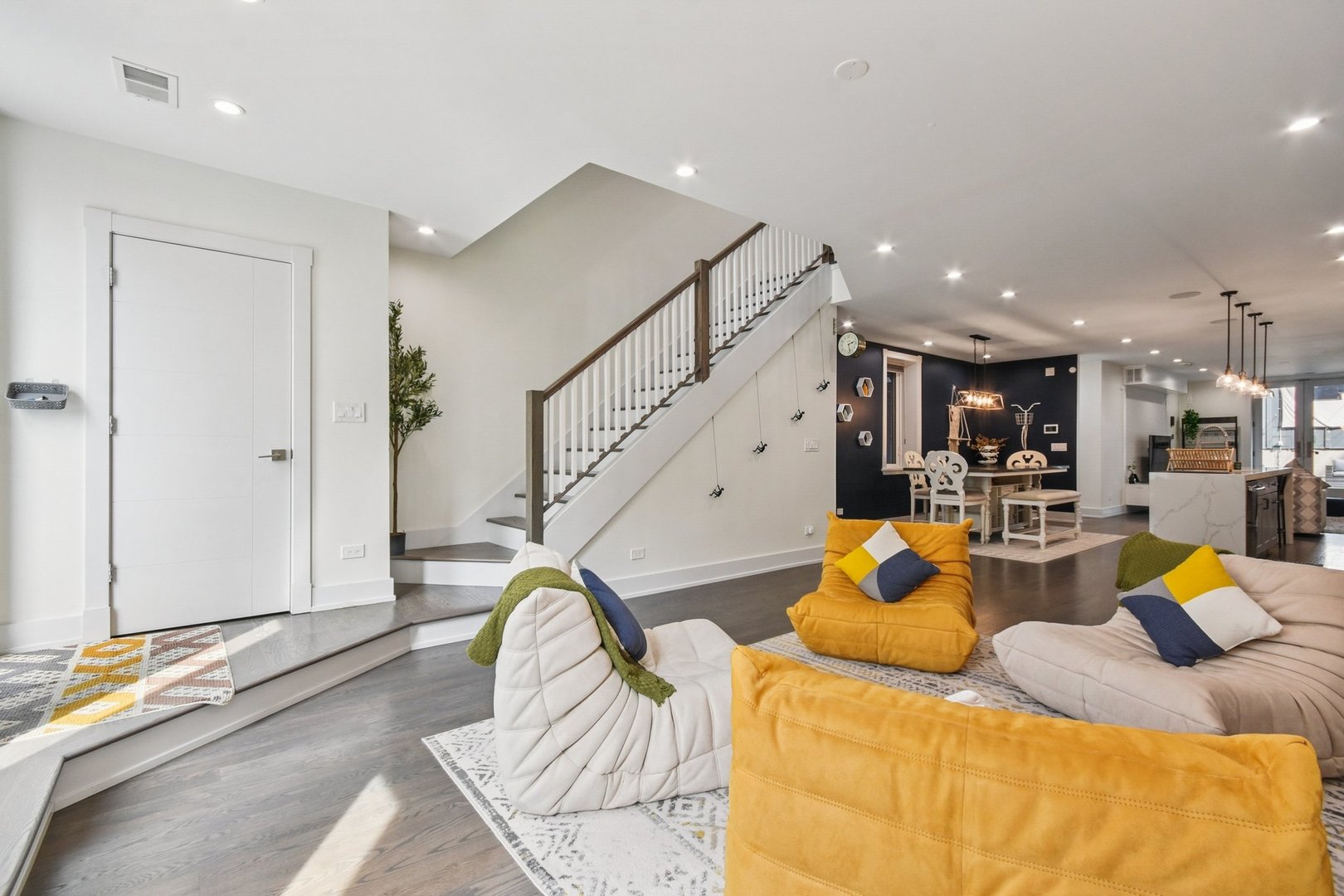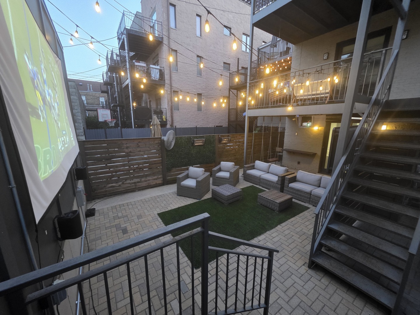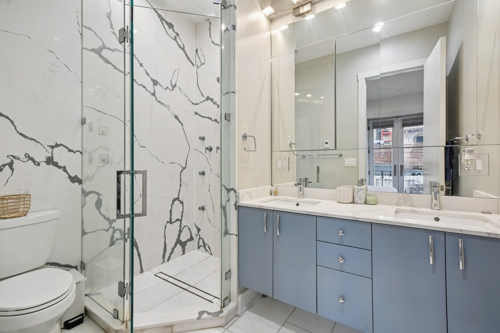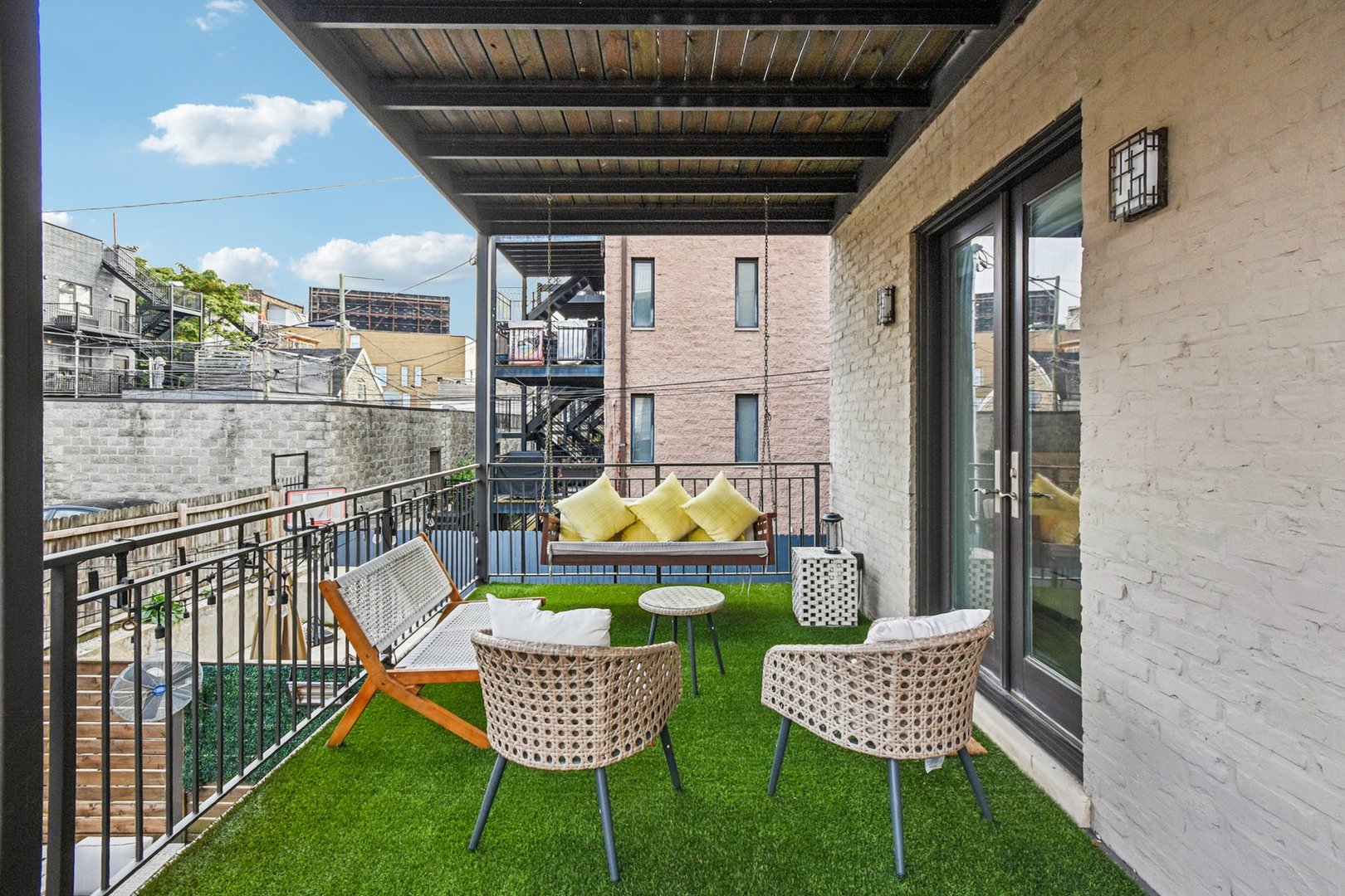 Rare 3BR/2.5BA duplex-up with an open office, 3 private outdoor spaces, including a backyard built for entertaining-full kitchen, gas grill, kegerator, beer cooler, projector/screen, outdoor speakers, heaters, and fans. Second-level patio with swing + backyard swings and children’s rock climbing unit in front yard. Unique layout with all bedrooms upstairs, sunlit primary suite + office area. Open main level with living, dining, and kitchen. Built-out closets, heated floors & steam shower in primary bath. Two garage spaces + outdoor utility room. Prime location near Blue Line, Division St & Milwaukee Ave.