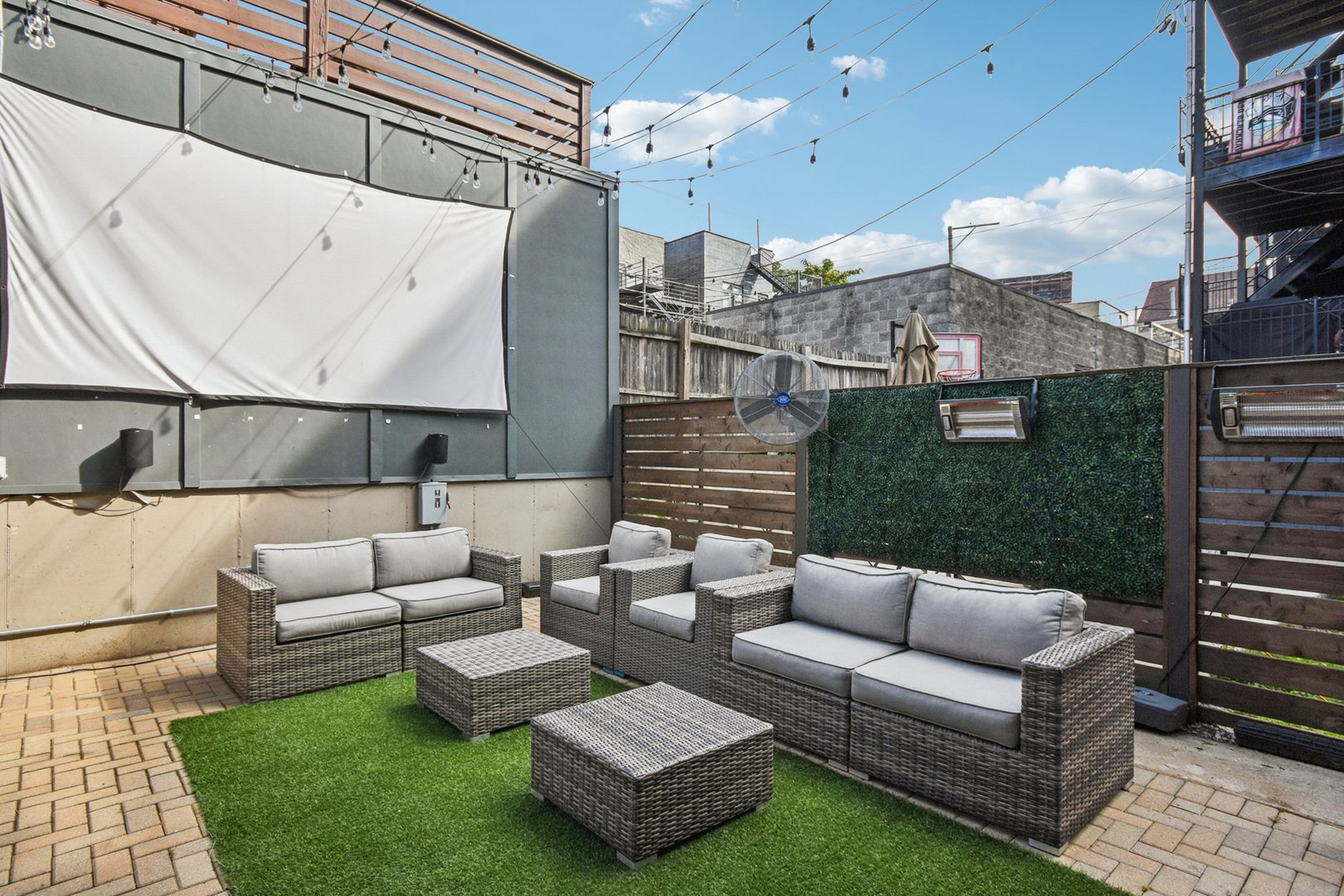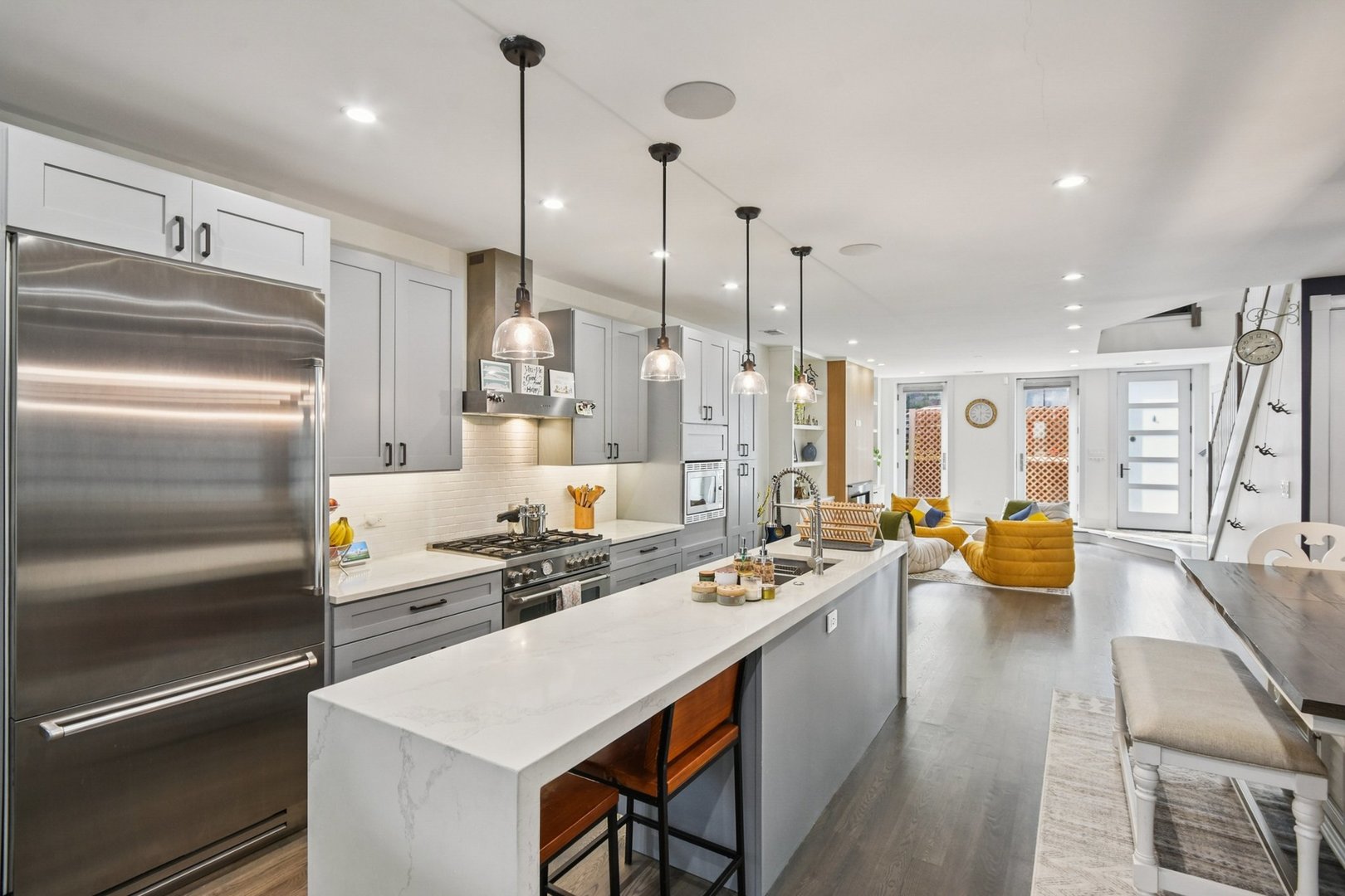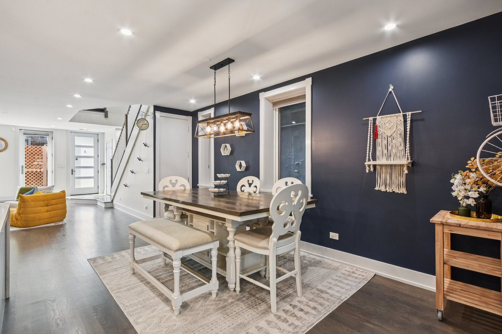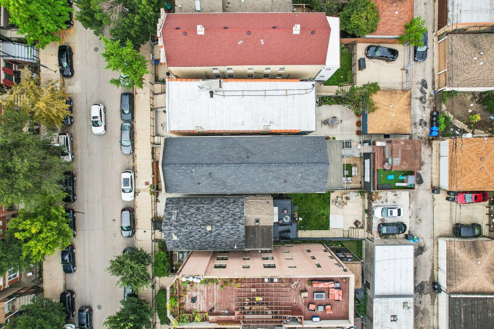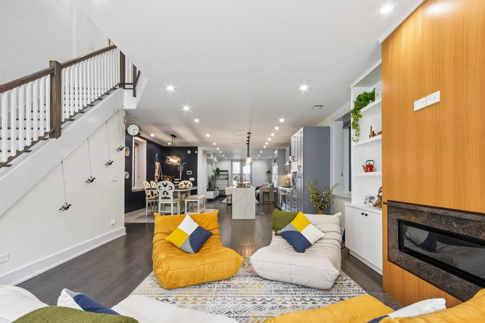 Rare 3BR/2.5BA duplex-up with an open office, 3 private outdoor spaces, including a backyard built for entertaining-full kitchen, gas grill, kegerator, beer cooler, projector/screen, outdoor speakers, heaters, and fans. Second-level patio with swing + backyard swings and children’s rock climbing unit in front yard. Unique layout with all bedrooms upstairs, sunlit primary suite + office area. Open main level with living, dining, and kitchen. Built-out closets, heated floors & steam shower in primary bath. Two garage spaces + outdoor utility room. Prime location near Blue Line, Division St & Milwaukee Ave.