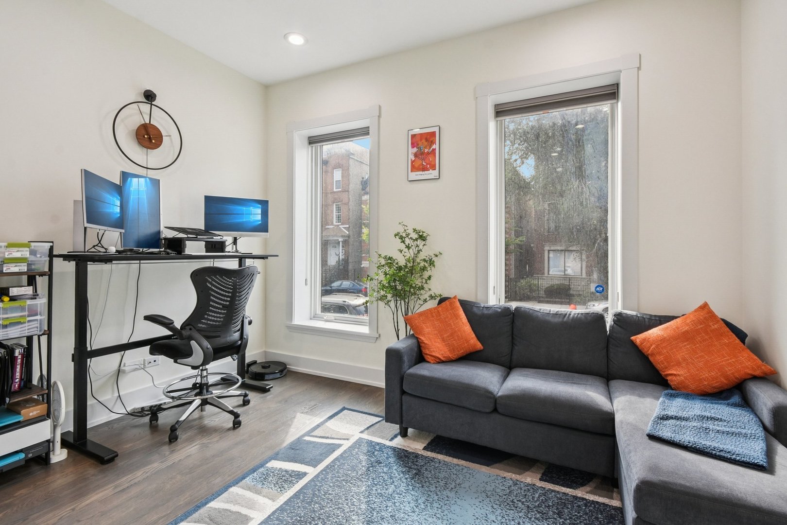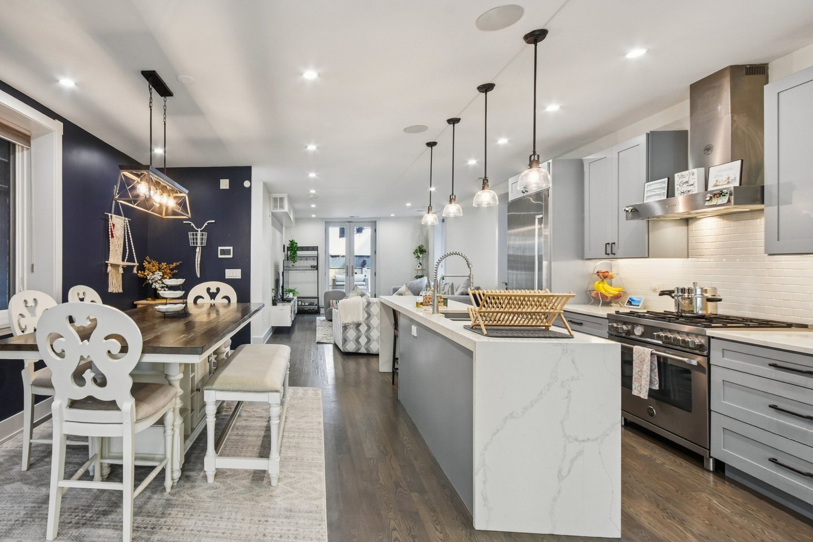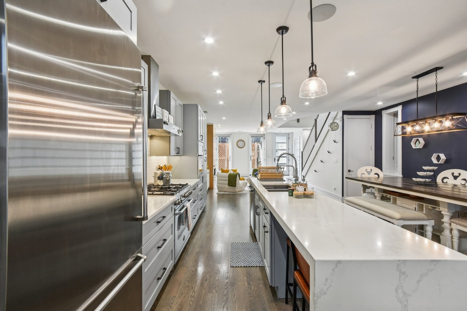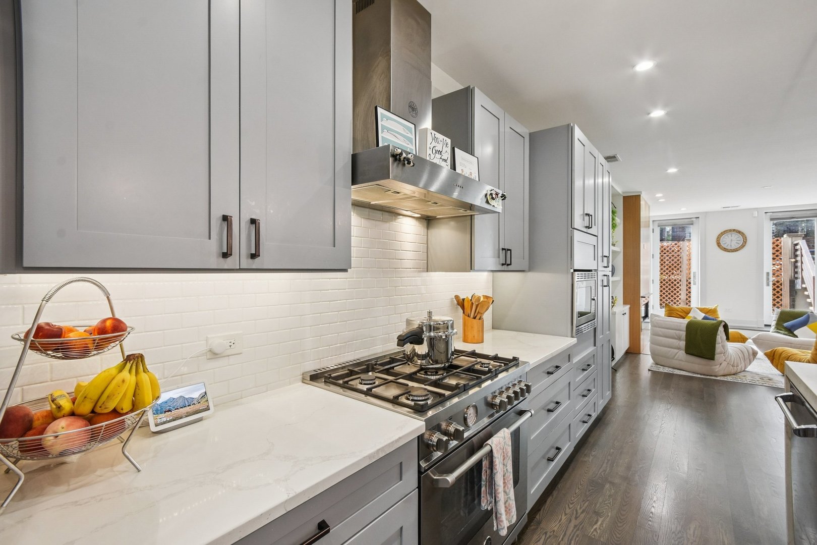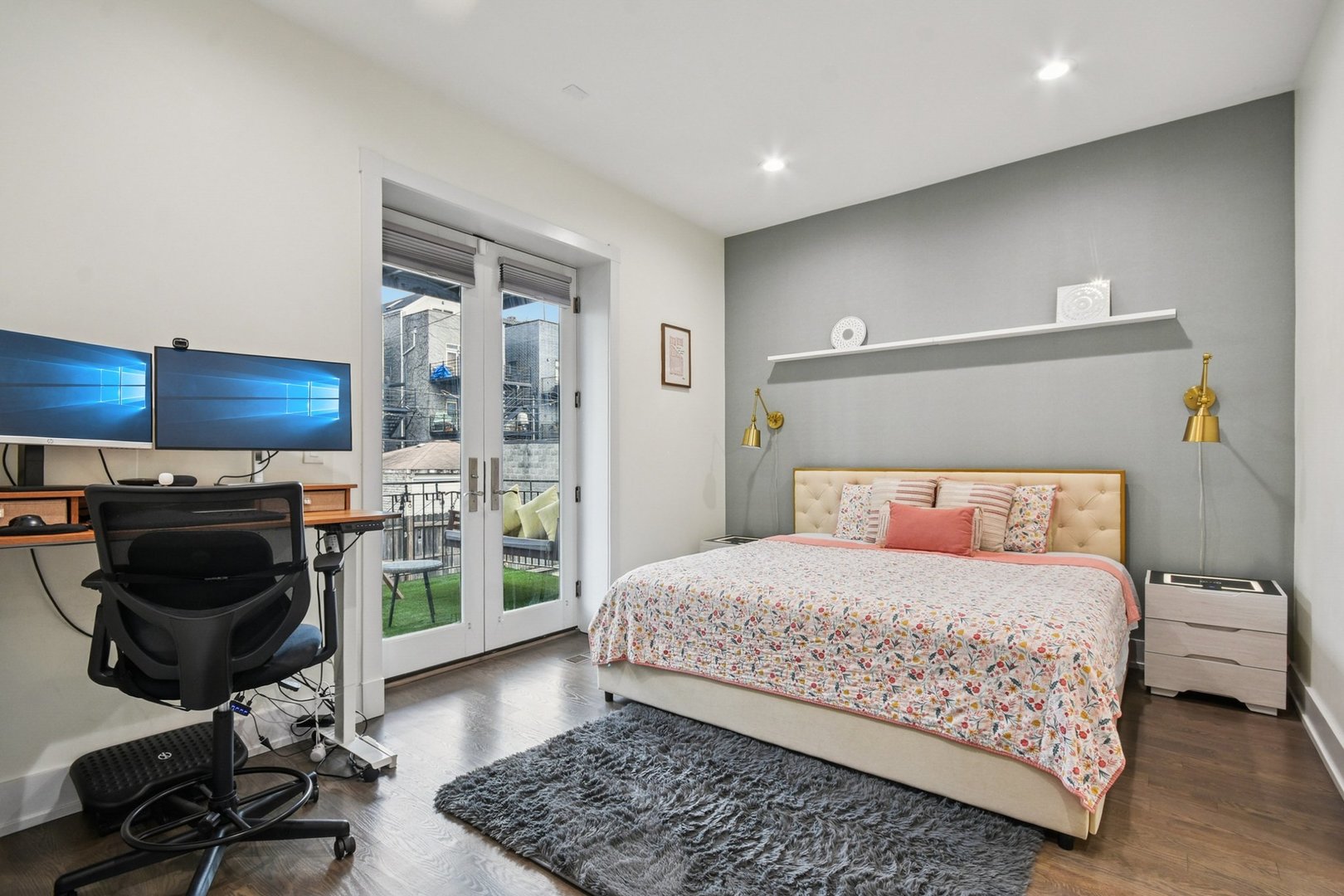 Rare 3BR/2.5BA duplex-up with an open office, 3 private outdoor spaces, including a backyard built for entertaining-full kitchen, gas grill, kegerator, beer cooler, projector/screen, outdoor speakers, heaters, and fans. Second-level patio with swing + backyard swings and children’s rock climbing unit in front yard. Unique layout with all bedrooms upstairs, sunlit primary suite + office area. Open main level with living, dining, and kitchen. Built-out closets, heated floors & steam shower in primary bath. Two garage spaces + outdoor utility room. Prime location near Blue Line, Division St & Milwaukee Ave.