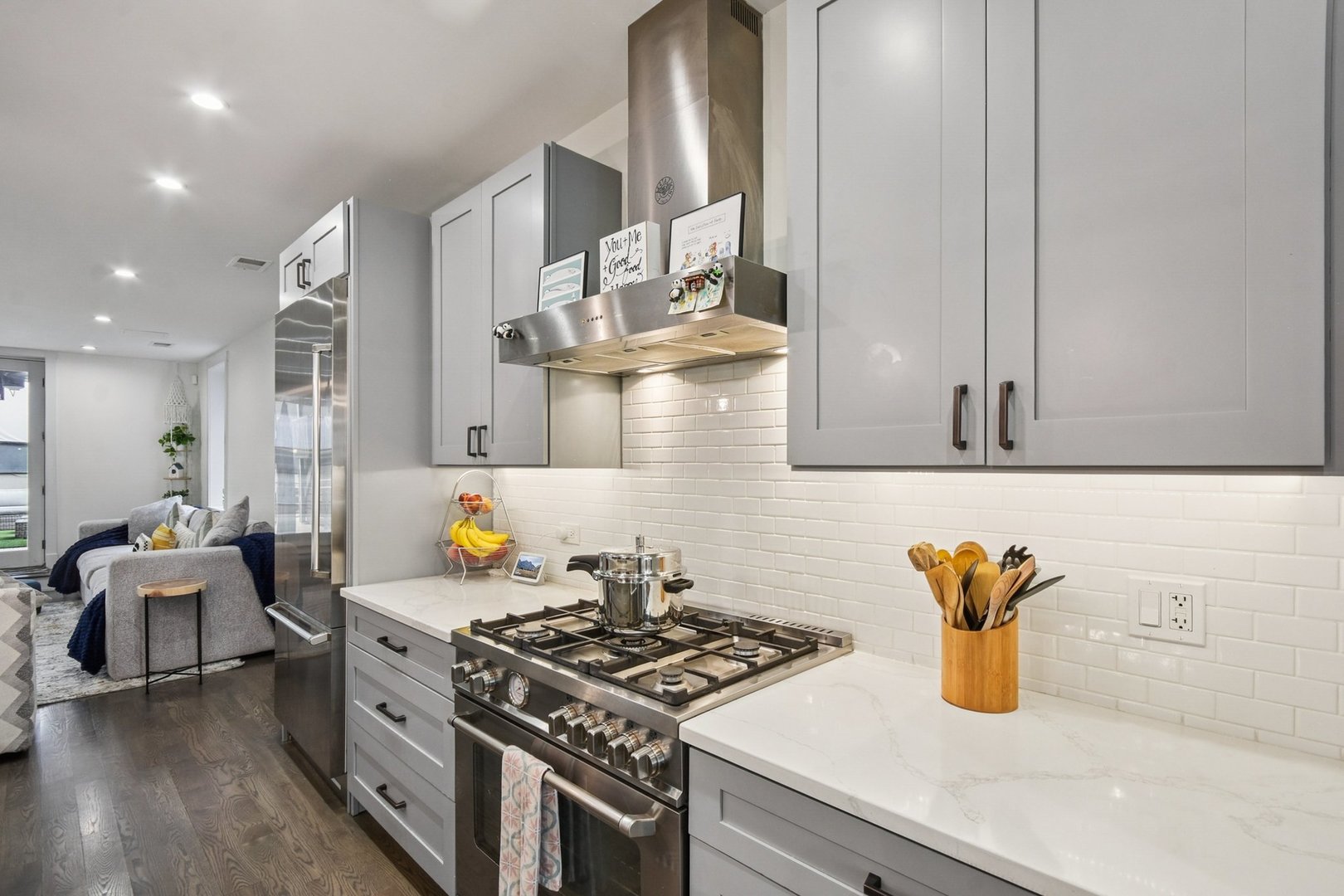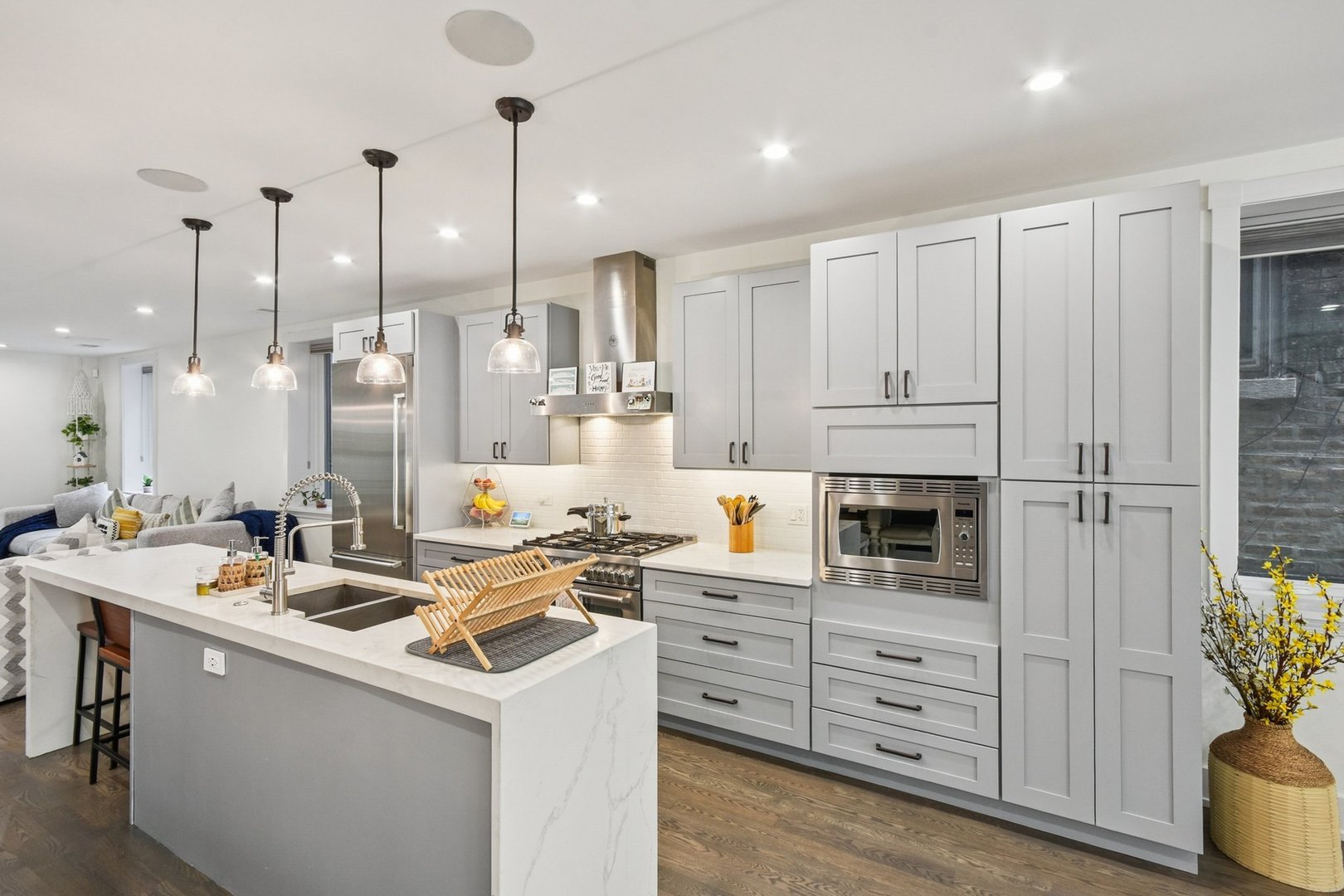 • Appliances: Range,Microwave,Dishwasher,Refrigerator,High End Refrigerator,Washer,Dryer,Disposal,Stainless Steel Appliance(s),Range Hood