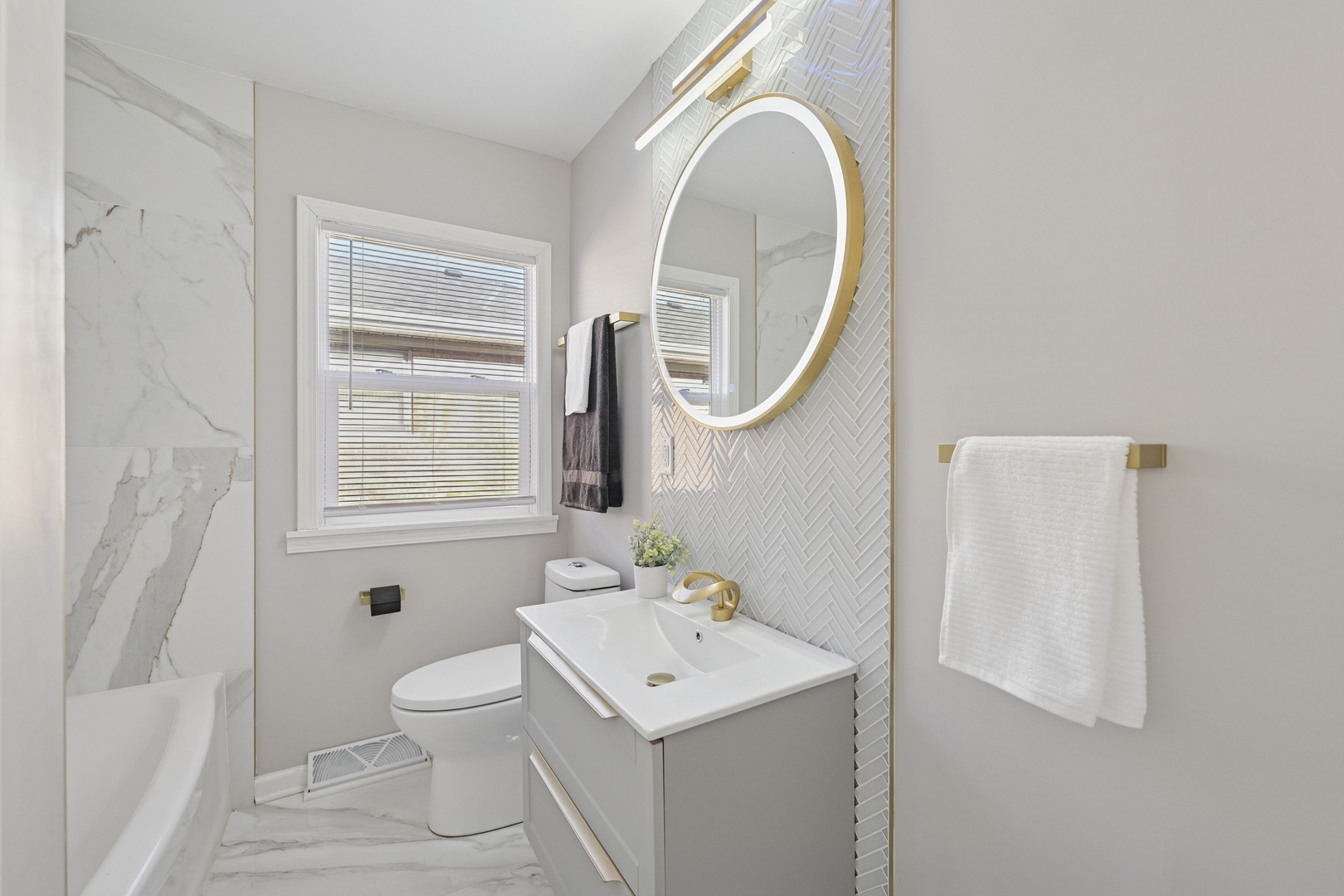 Envision yourself in this thoughtfully designed home, set on an expansive corner lot where curb appeal is only the beginning! The modern gray brick exterior with black herringbone walkways creates a striking “tuxedo” aesthetic. Allow your eyes to traverse along the black-brick pathway that leads to a striking entry door, which invites you into the custom modern entry way. Inside, the large living room and three main-level bedrooms feature high-gloss laminate flooring that beautifully reflects the abundant natural light illuminating this home. The main bathroom experience is that of a luxury spa retreat, showcasing Italian porcelain flooring and tub surround, gold fixtures, a floating vanity, and a stunning floor-to-ceiling glass herringbone backsplash. Melt into a luxurious bath while listening to your favorite music via your Bluetooth exhaust fan. The light and airy porcelain tile continues into the kitchen for a seamless flow that offers a spacious dining area, elegant light fixtures, quartz countertops, sleek cabinetry, and a three-piece stainless steel appliance package. The soft-white frosted glass door leading to the lower level allows even more light to flow through what is already a sun-drenched kitchen. Prepare for a transformative experience as you descend into the lower level. The expansive entertainment area is perfect for family gatherings or quiet relaxation. Two additional lower-level rooms provide options for a second primary suite, guest quarters, a home office/gym, and/or a hobby room. A newly installed, fully permitted bathroom elevates the space with luxurious comfort and an oversized rain shower that will rinse your stressful days right down the drain! Step outside your back door to a custom black-brick herringbone patio area-an inviting setting for summer entertaining. The property also includes a two-car garage to protect your vehicles from the harsh Chicago winters. This home features new windows throughout, a new complete tear-off roof, new soffits and gutters, a newer hot water tank, a new sump pump, all new interior and exterior doors, and new flooring throughout. Conveniently located across the street from Burr Oak School, a short two minute drive to the Ashland Metra Station and minutes from major express ways. Property is Broker owned.