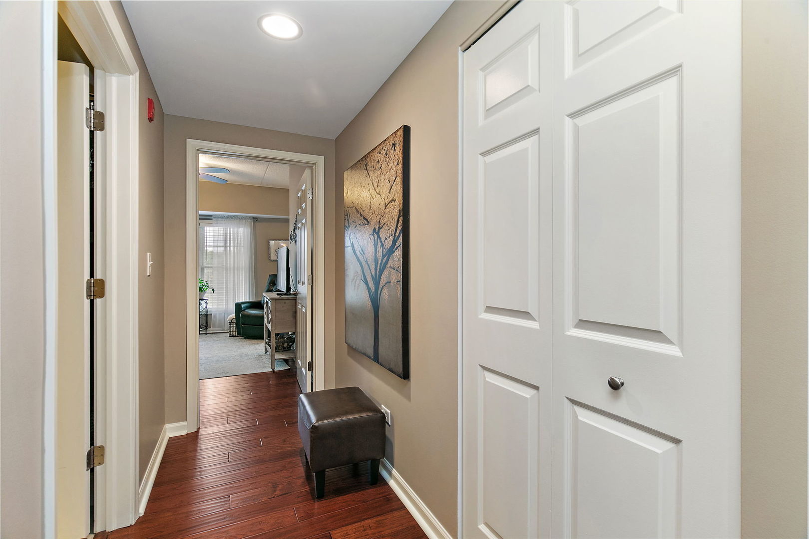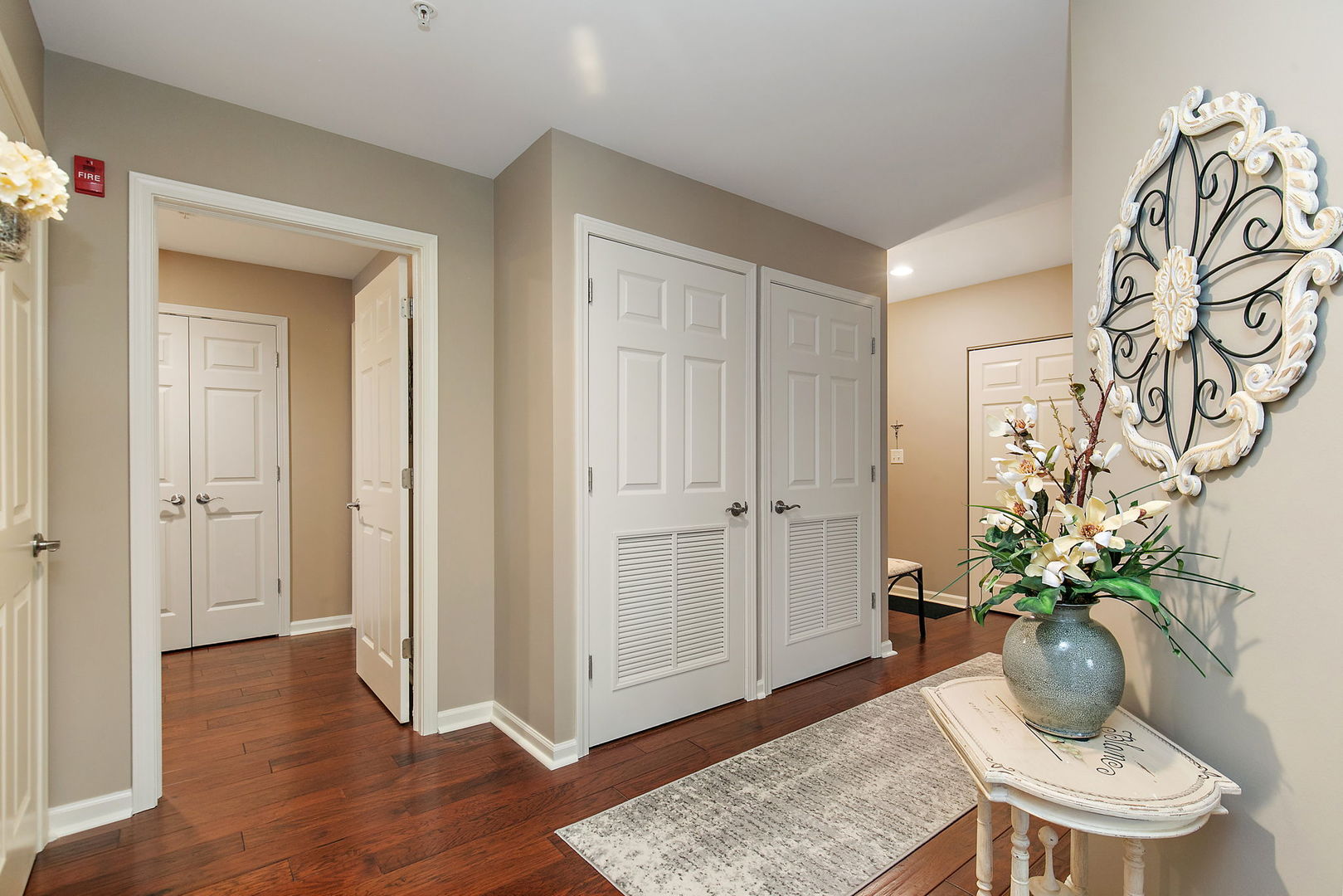 There’s nothing to do but move in! Welcome to Medinah-on-the-Lake, one of the area’s most sought-after communities. This former builder’s model still shows like new, offering a perfect blend of elegance, comfort, and modern upgrades. Step inside this spacious and sun-filled Corner unit and immediately notice the custom hardwood floors, designer paint, upgraded trim and molding, and stylish blinds throughout. The kitchen features stainless steel appliances~ refrigerator and double convection oven new in 2022~ granite countertops, an eat-in breakfast bar, and a large pantry. The open concept layout is ideal for entertaining, with a beautiful oversized patio door leading to a newly renovated patio overlooking the tranquil lake. Originally a three-bedroom unit, this home has been thoughtfully reconfigured to include a spacious formal dining room, perfect for hosting gatherings. Additional highlights include an in-unit full-size washer and dryer, upgraded six-panel wood doors, cordless blinds, ceiling fans throughout, and ample storage. The primary suite offers a luxurious retreat with a granite double-sink vanity and walk-in shower. Enjoy resort-style living with community amenities including a swimming pool, fitness center, clubhouse with kitchen and fire pit, and beautifully maintained common areas. Surrounded by scenic lake views and lush nature, this home offers peaceful living with convenience to everything. This home won’t last long; book your showing today!