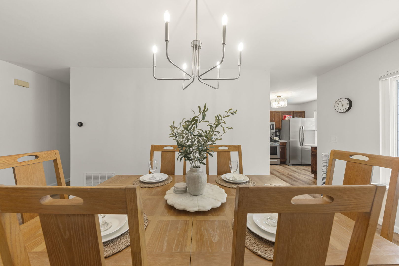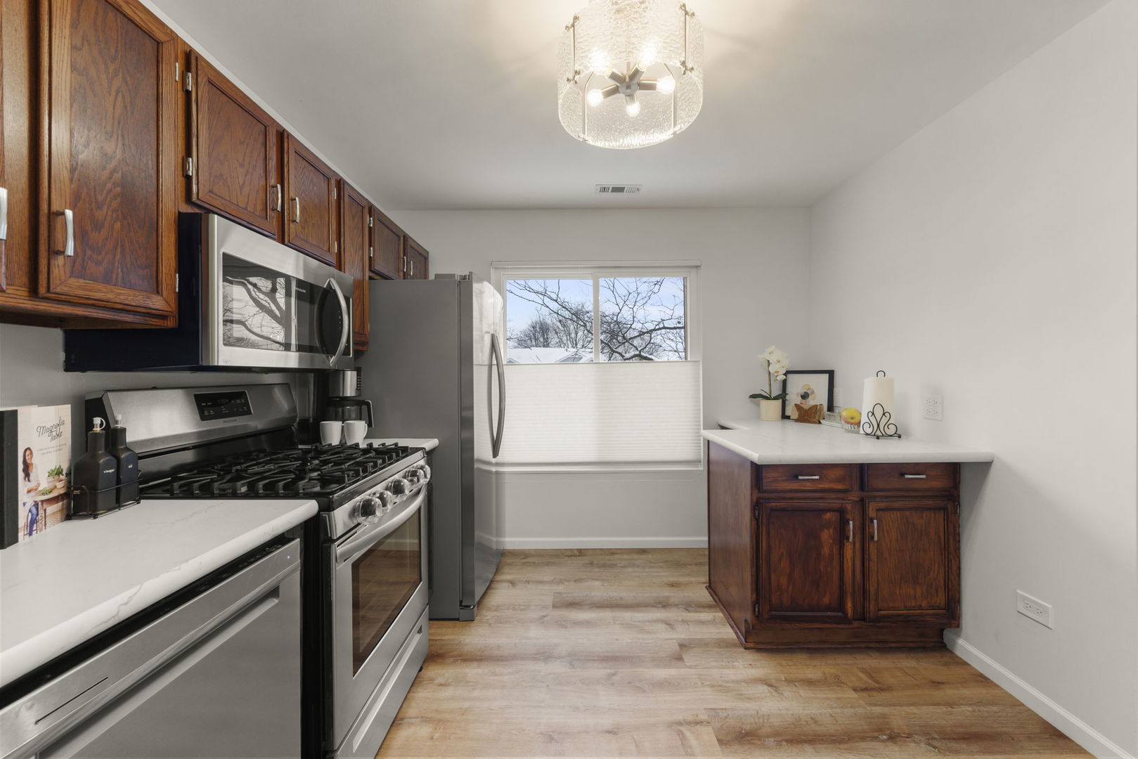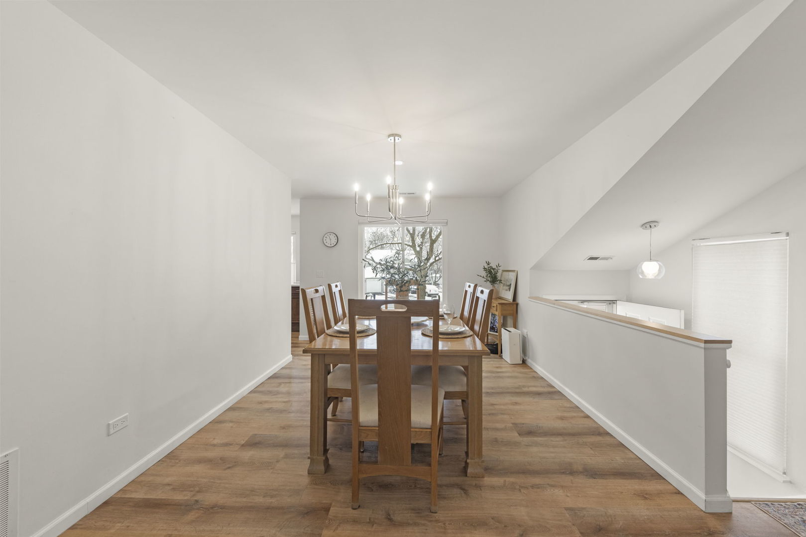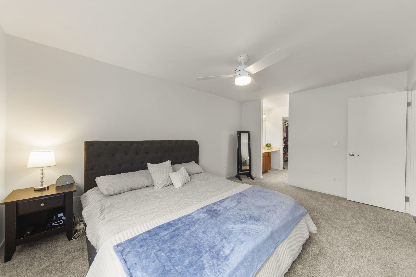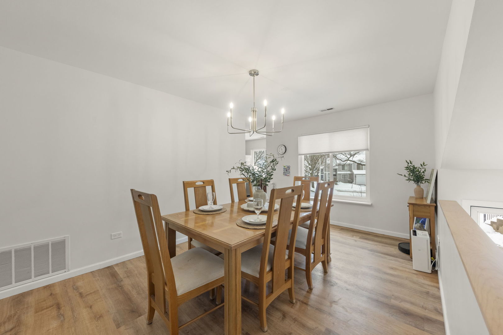 Welcome to 125 Manchester, a stunning move in ready two bedroom, two full bathroom townhome drenched in natural sunlight and designed with the perfect layout! From the moment you step inside, you’ll feel the flow, the space, and the modern updates that make this one truly stand out from the rest. The fully updated kitchen features freshly stained cabinets, new counters, sink, disposal, stainless steel appliances, and modern finishes. The oversized living room offers plenty of space for relaxing or entertaining and showcases beautiful views of the open backyard right off your balcony. The spacious dining room easily fits a 10-person table, perfect for hosting dinners or just in time for holiday gatherings! The hall bath has been reimagined with stylish penny-tile flooring and a sleek white vanity. The oversized primary suite feels like a private retreat with a large bedroom, its own full bath, and a dreamy 10×9 walk-in closet completely re-designed for maximum storage. Fresh paint throughout in bright, warm, modern tones. You’ll also love the private garage entrance, the charming courtyard, and the quiet cul-de-sac location. A park and basketball court are just down the street. Major updates are already done, new flooring (2022-2025), updated hall bath (2022), new lighting (2025), newer appliances (2019-2025), custom blinds (2022), electrical upgrades (2018), new windows and patio door with a lifetime transferable warranty (2018), plus exterior improvements including newer siding, roof, gutters, patio deck, and railing (2022). Best of all, the back of the home opens to wide, open green space with no direct neighbors, offering rare privacy and peaceful views for a townhome. Located minutes from shopping, dining, the library, and community favorites like Septemberfest. Served by award-winning Collins Elementary, Frost Junior High, and Conant High School. This is truly turn-key living in one of Schaumburg’s most convenient and sought-after locations-move right in and enjoy.