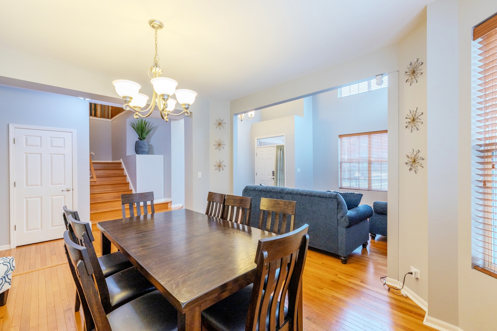 Welcome to this exceptional custom-built home located in the highly desirable Arbor Woods subdivision of Wood Dale. From the moment you arrive, you will notice the pride of ownership and thoughtful design that make this property stand out. This beautiful two-story home offers over 3,500 square feet of above-ground living space, plus an additional 1,300 square feet of finished basement space that can be used for recreation, a home theater, fitness area, or guest suite. With a three-car attached garage and a large backyard, this home provides comfort, space, and flexibility for everyday living and entertaining. Step inside through the impressive two-story foyer featuring soaring cathedral ceilings that create a bright and welcoming atmosphere. The open-concept floor plan flows easily from room to room, making the home ideal for gatherings of any size. The spacious family room offers two-story ceilings and a striking fireplace as its focal point. The adjacent living and dining rooms provide additional areas for entertaining or quiet relaxation. The gourmet kitchen is equipped with stainless steel appliances, 42-inch cabinets, granite countertops with backsplash, a center island, and a breakfast area overlooking the backyard. A large pantry and plenty of cabinet space provide practical storage options. The kitchen opens to the family room, making it easy to stay connected while cooking or entertaining. A main-floor den or office offers a private space for work or study, while the nearby powder room adds convenience. Upstairs, the primary suite serves as a private retreat with a large walk-in closet and a spacious bathroom offering both a soaking tub and a separate shower. Three additional bedrooms are generously sized and share a full hallway bath. Each room features large windows and ample closet space. The finished basement adds a significant additional living area, including a full bathroom, recreation space, and extra storage. Whether you envision a home theater, workout area, or guest accommodations, this lower level can easily adapt to your needs. The outdoor space is perfect for relaxing or entertaining with a large patio and yard ideal for summer gatherings, barbecues, or simply enjoying the peaceful surroundings. The property has been well-maintained with a new roof and air conditioner recently installed, ensuring comfort and peace of mind. This home’s location is another highlight. With a Wood Dale address, you are just minutes from the Metra station, major highways, shopping, dining, and area parks. Arbor Woods is known for its attractive homes, mature trees, and convenient access to everything the Chicago metro area offers. This is a wonderful opportunity to own a spacious, move-in-ready home in one of Wood Dale’s most sought-after neighborhoods. Experience the perfect combination of space, quality, and location in this truly special property