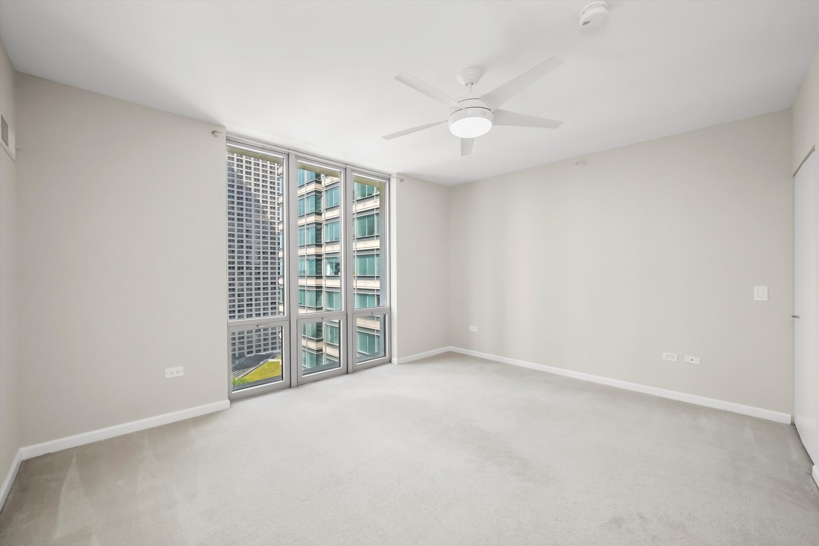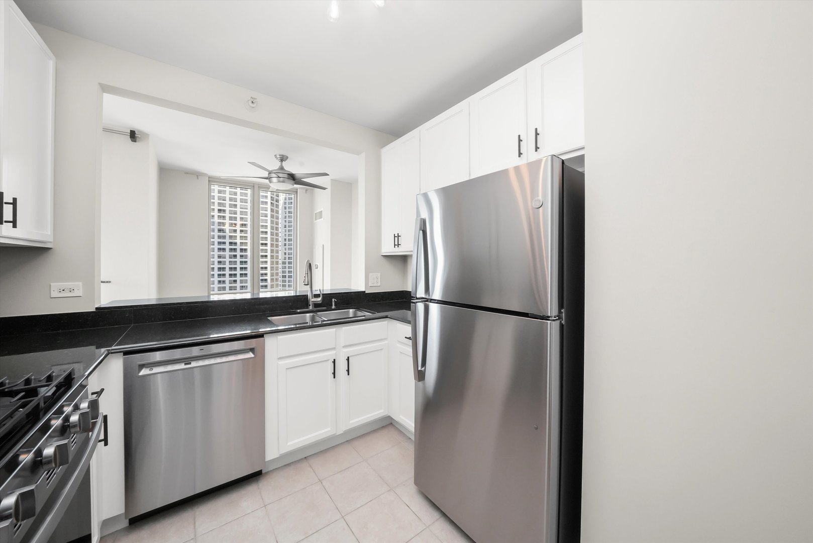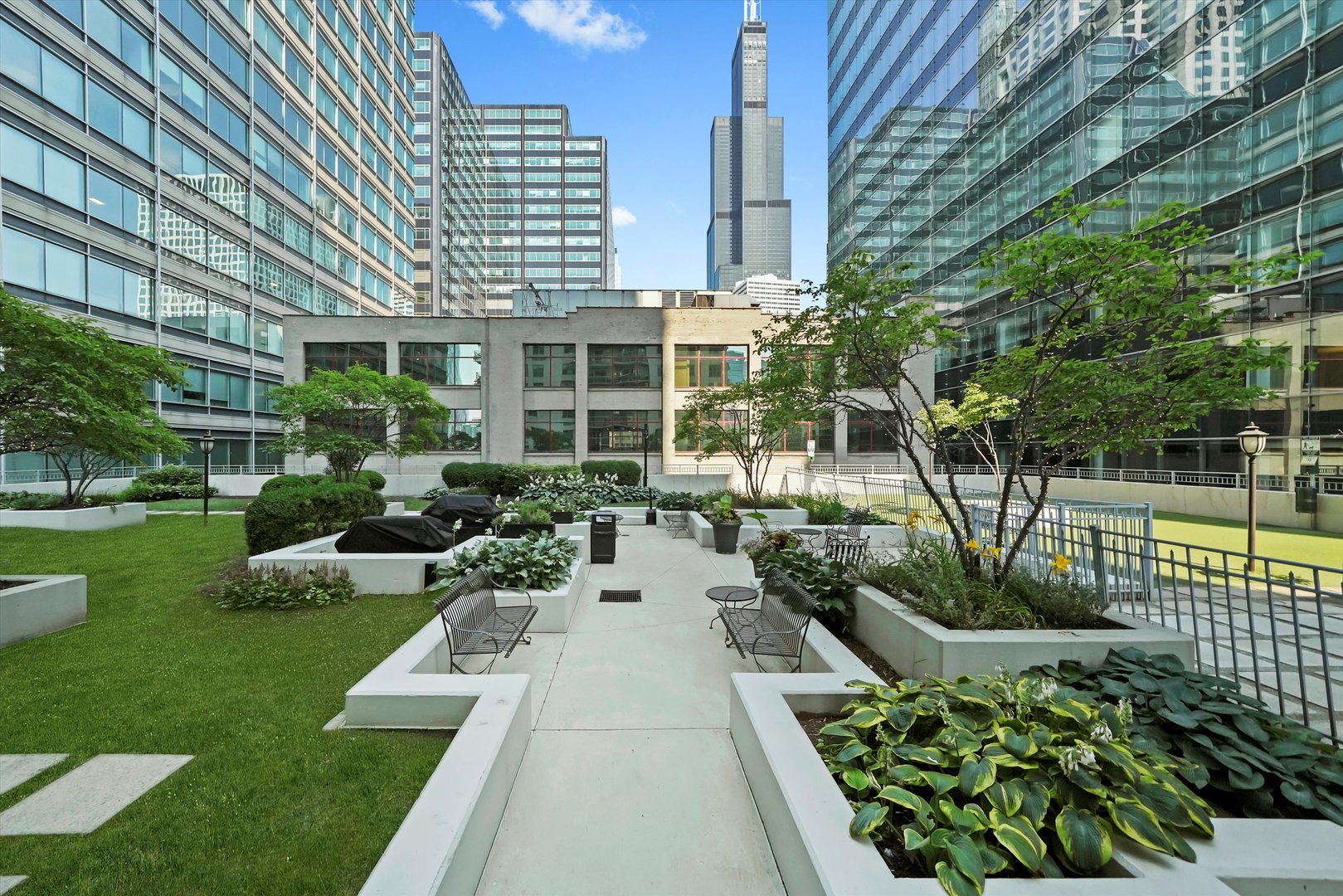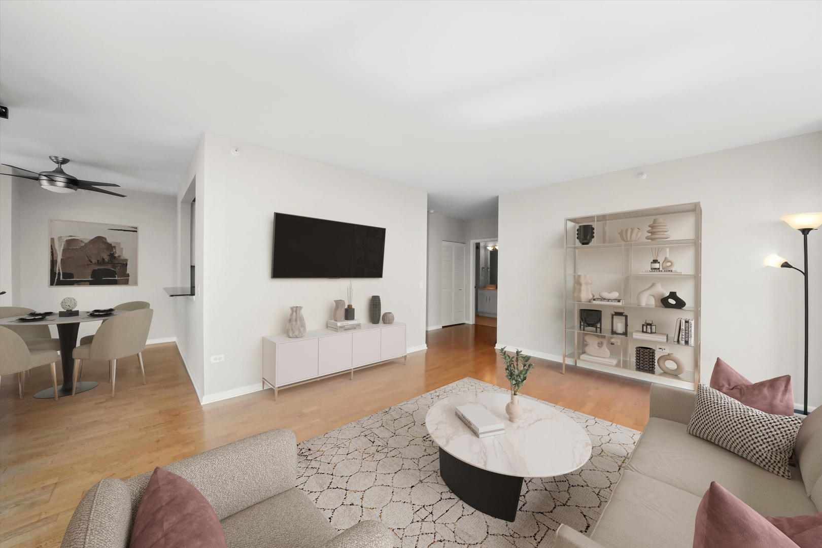 Welcome to this sunlit northwest corner home in the coveted Park Alexandria. This modern updated split 2-bedroom, 2-bath condo features stunning floor-to-ceiling windows, showcasing breathtaking panoramic city views. Enjoy hardwood floors throughout the bright, open-concept living space complemented by a dedicated separate dining area, perfect for both everyday living and entertaining. The Chef’s kitchen boasts granite countertops, sleek white cabinetry with new black hardware, and Brand New stainless steel appliances. Step out onto your private balcony to take in fresh air and skyline views. This thoughtfully designed unit also features a walk-in coat closet and pantry combo. Retreat to the spacious bedrooms featuring a luxurious en-suite with a double vanity & separate glass enclosed shower & soaking tub, walk in closet and with ample storage space. The second bedroom also has floor to ceiling windows and a walk in closet. An in-unit washer and dryer enhance daily convenience. Park Alexandria offers full amenities, including 24-hour doorman, fitness center, expansive landscaped sundeck with a dog patio, 2 guest suites, party room, bike room, on-site manager/engineer and receiving room. Exterior storage cage and extra spacious premium garage parking space right off the elevator are included. Ideally located in the top tier highly sought after Skinner School District, near Whole Foods, the Riverwalk & all of the world class West Loop dining, shopping, & public transit.