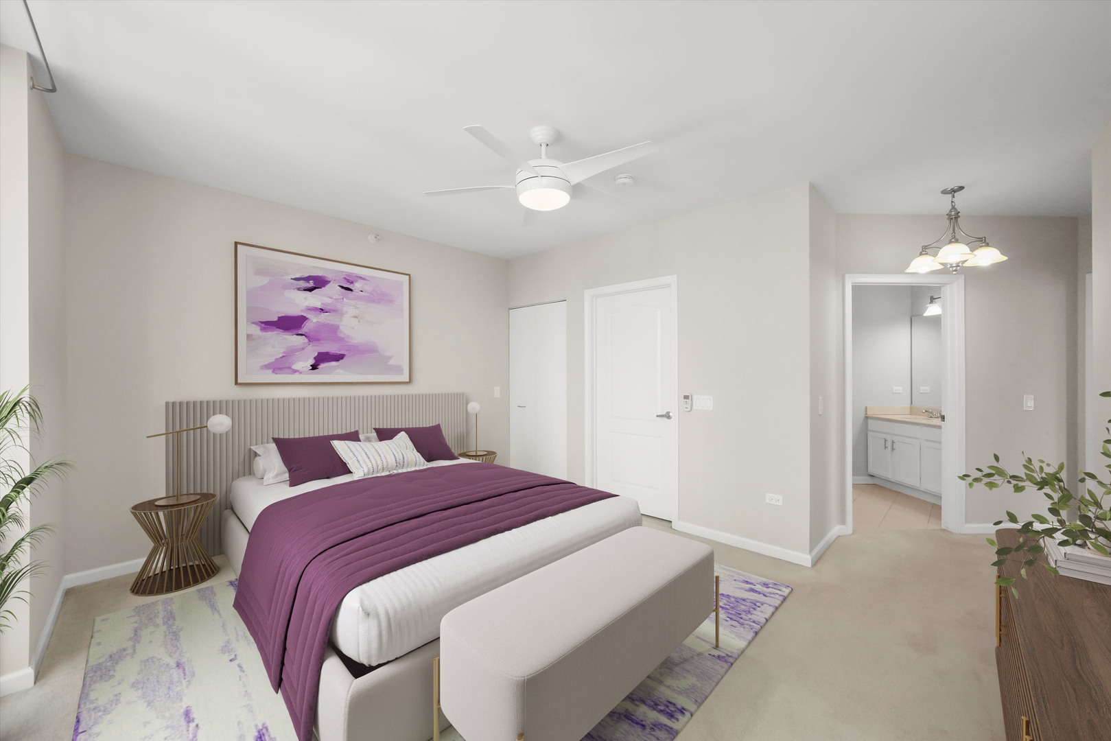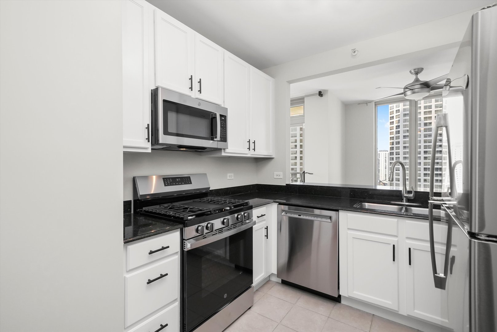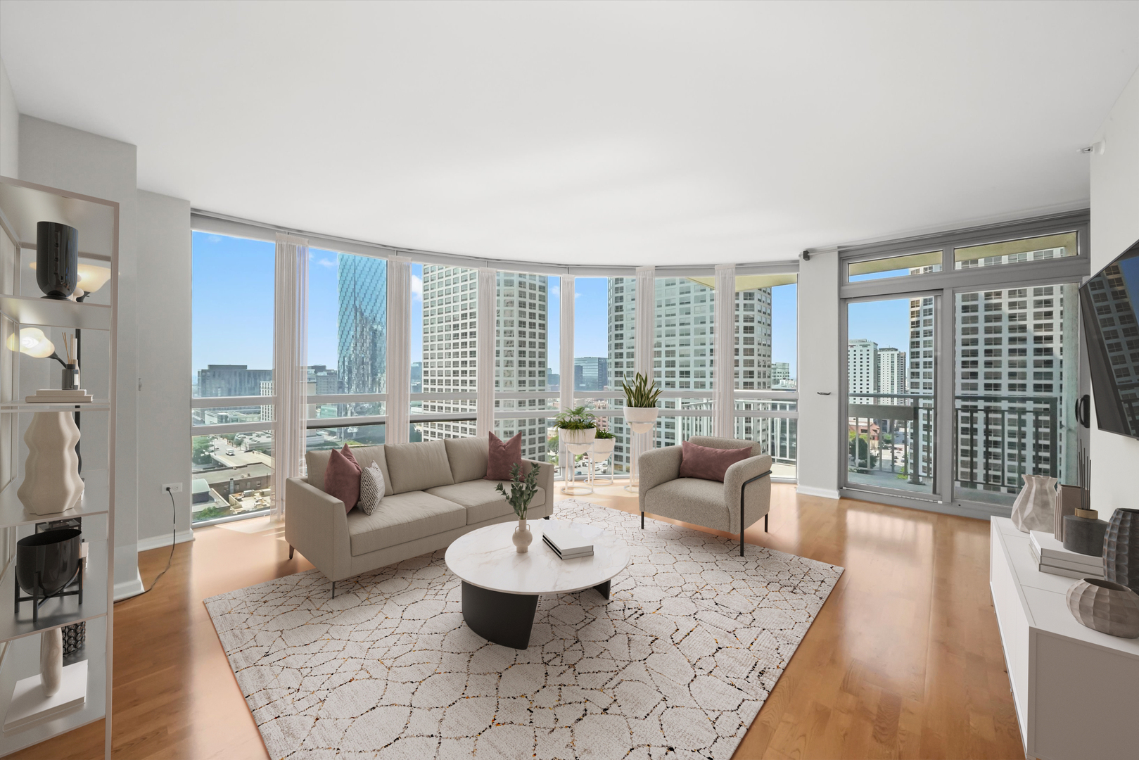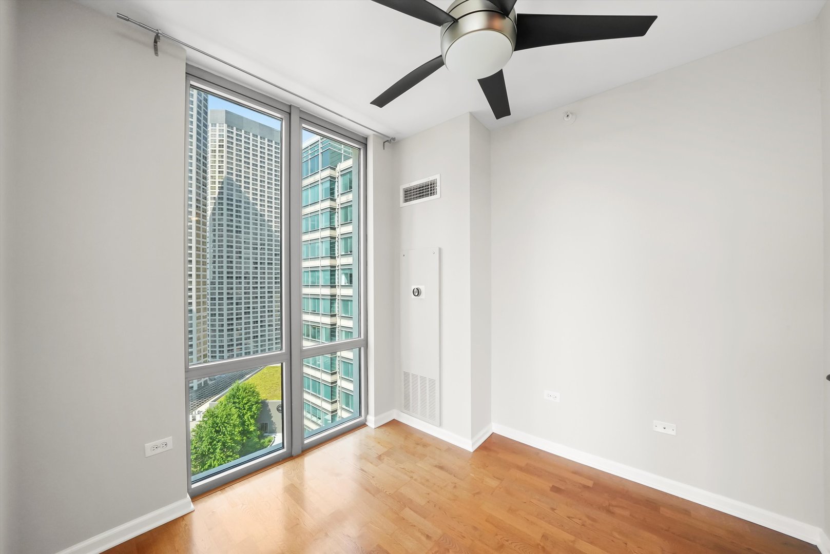Welcome to this sunlit northwest corner home in the coveted Park Alexandria. This modern updated split 2-bedroom, 2-bath condo features stunning floor-to-ceiling windows, showcasing breathtaking panoramic city views. Enjoy hardwood floors throughout the bright, open-concept living space complemented by a dedicated separate dining area, perfect for both everyday living and entertaining. The Chef’s kitchen boasts granite countertops, sleek white cabinetry with new black hardware, and Brand New stainless steel appliances. Step out onto your private balcony to take in fresh air and skyline views. This thoughtfully designed unit also features a walk-in coat closet and pantry combo. Retreat to the spacious bedrooms featuring a luxurious en-suite with a double vanity & separate glass enclosed shower & soaking tub, walk in closet and with ample storage space. The second bedroom also has floor to ceiling windows and a walk in closet. An in-unit washer and dryer enhance daily convenience. Park Alexandria offers full amenities, including 24-hour doorman, fitness center, expansive landscaped sundeck with a dog patio, 2 guest suites, party room, bike room, on-site manager/engineer and receiving room. Exterior storage cage and extra spacious premium garage parking space right off the elevator are included. Ideally located in the top tier highly sought after Skinner School District, near Whole Foods, the Riverwalk & all of the world class West Loop dining, shopping, & public transit.