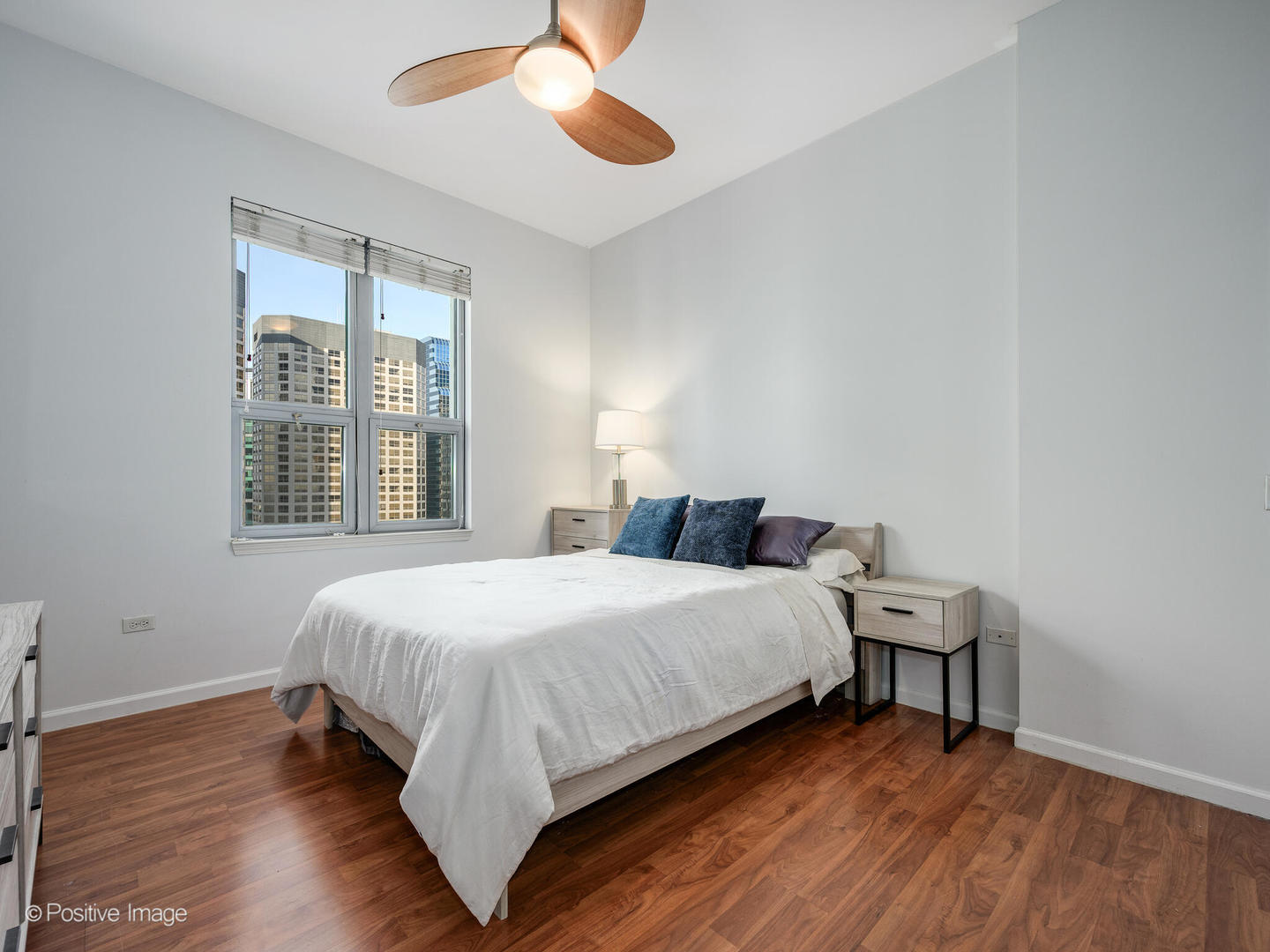 Penthouse-level 1BD/1BA + den at highly sought-after Park Alexandria in the West Loop. Bright, open layout with large windows and city views. Modern kitchen opens to spacious living/dining area. Versatile den ideal for home office. Full-amenity building with 24-hour door staff, fitness center, and on-site management. Prime location steps to Skinner Park, Restaurant Row, public transit, and all the West Loop has to offer. Parking included in price (valued at 30k)