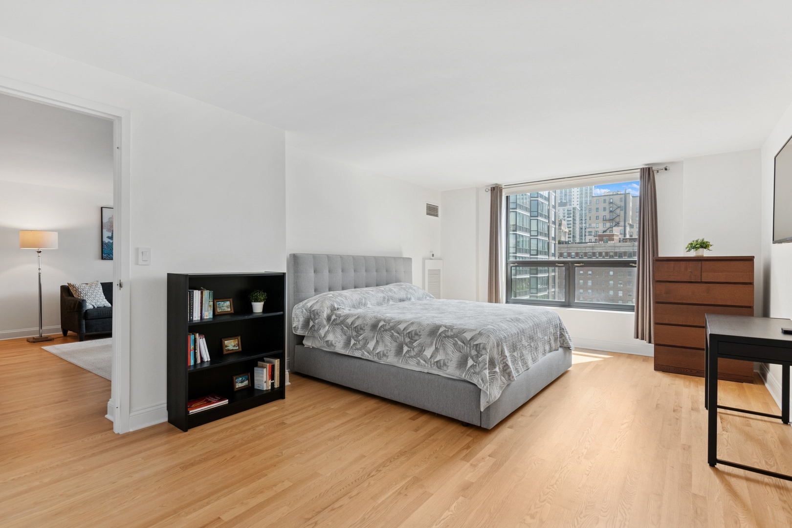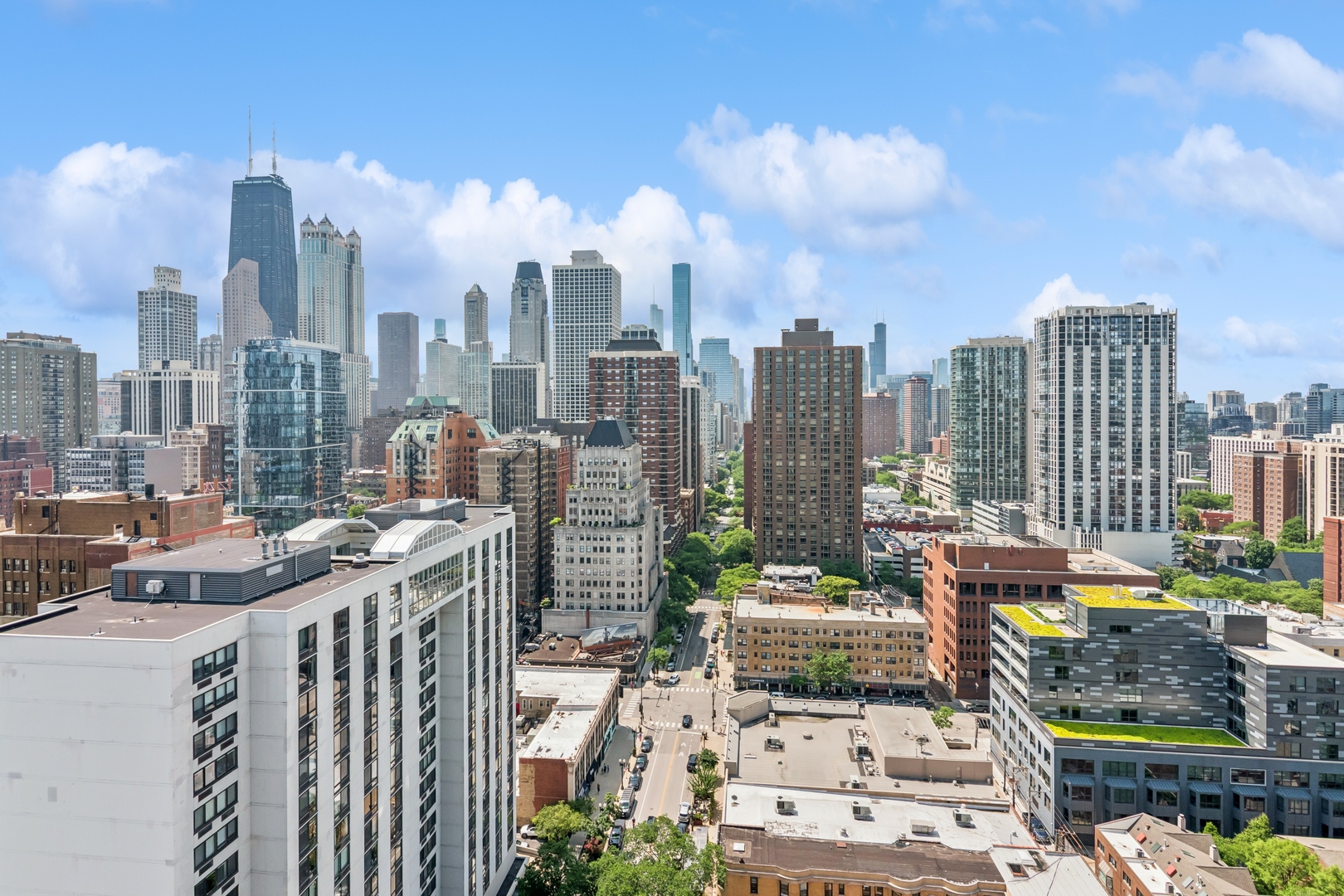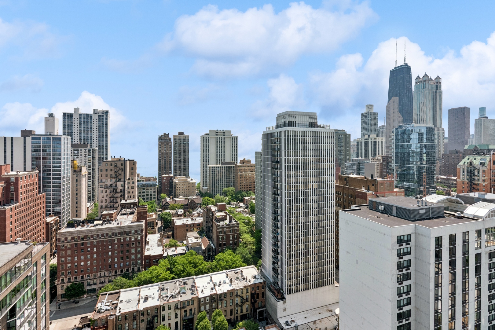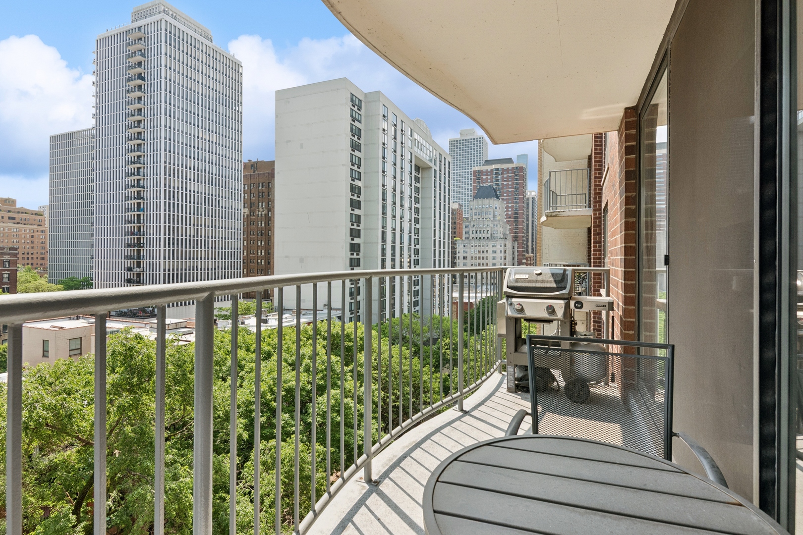 Significant $50k price improvement along with all new stainless steel appliances make this spacious and light-filled Gold Coast condo an incredible value! Come take a look! Located in the sought-after B tier, Unit 8B features a desirable split-bedroom layout, updated lighting, and a large east-facing balcony overlooking tree-lined Dearborn Street. The open-concept living and dining areas flow seamlessly into an all-white kitchen with black granite countertops and BRAND NEW STAINLESS STEEL GE APPLIANCE PACKAGE including refrigerator, oven/stove, microwave and dishwasher. The primary suite includes a walk-in closet with custom organizers and a stylish en-suite bath. The second bedroom offers flexibility for guests or a dedicated home office. Both bathrooms have been beautifully renovated with modern vanities and include walk-in showers with Toto, Kohler, and Hansgrohe fixtures. New hardwood floors in the bedrooms add a light, airy feel throughout, and the newly added in-unit washer/dryer is tucked neatly into a utility closet for maximum convenience. Unwind outside on the private balcony with sweeping eastern views towards the lake, large enough to easily accommodate a grill + dining set. 1250 N Dearborn is a full-amenity building with 24-hour door staff, on-site management, a fitness center, and a recently updated rooftop deck with panoramic city views, lounge seating, pergola, grill, and fire pits. Valet parking is available in the attached garage for an additional fee. The unit includes a storage cage, access to bike storage room for additional fee, and up to two pets (25 lb. max per pet). Enjoy an unbeatable location just steps from Oak Street Beach, the Lakefront Trail, Lincoln Park, top-rated dining, shopping, and public transit via bus or the Clark/LaSalle Red Line.