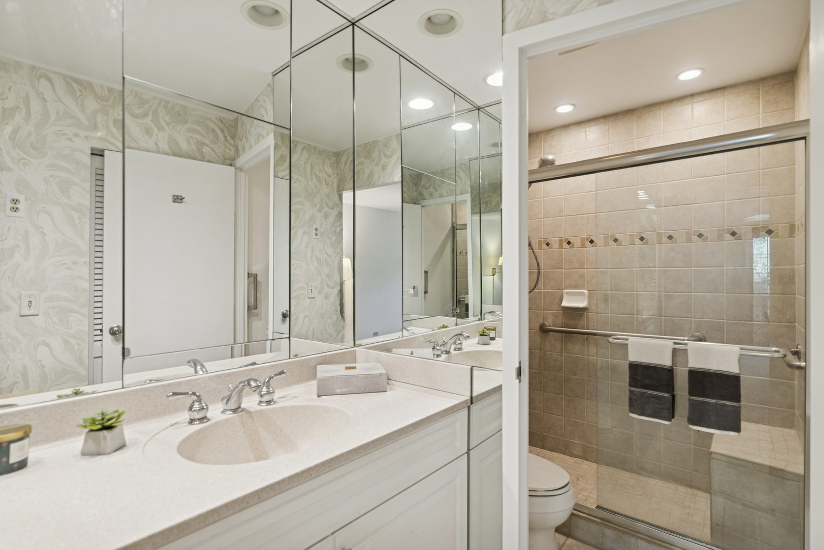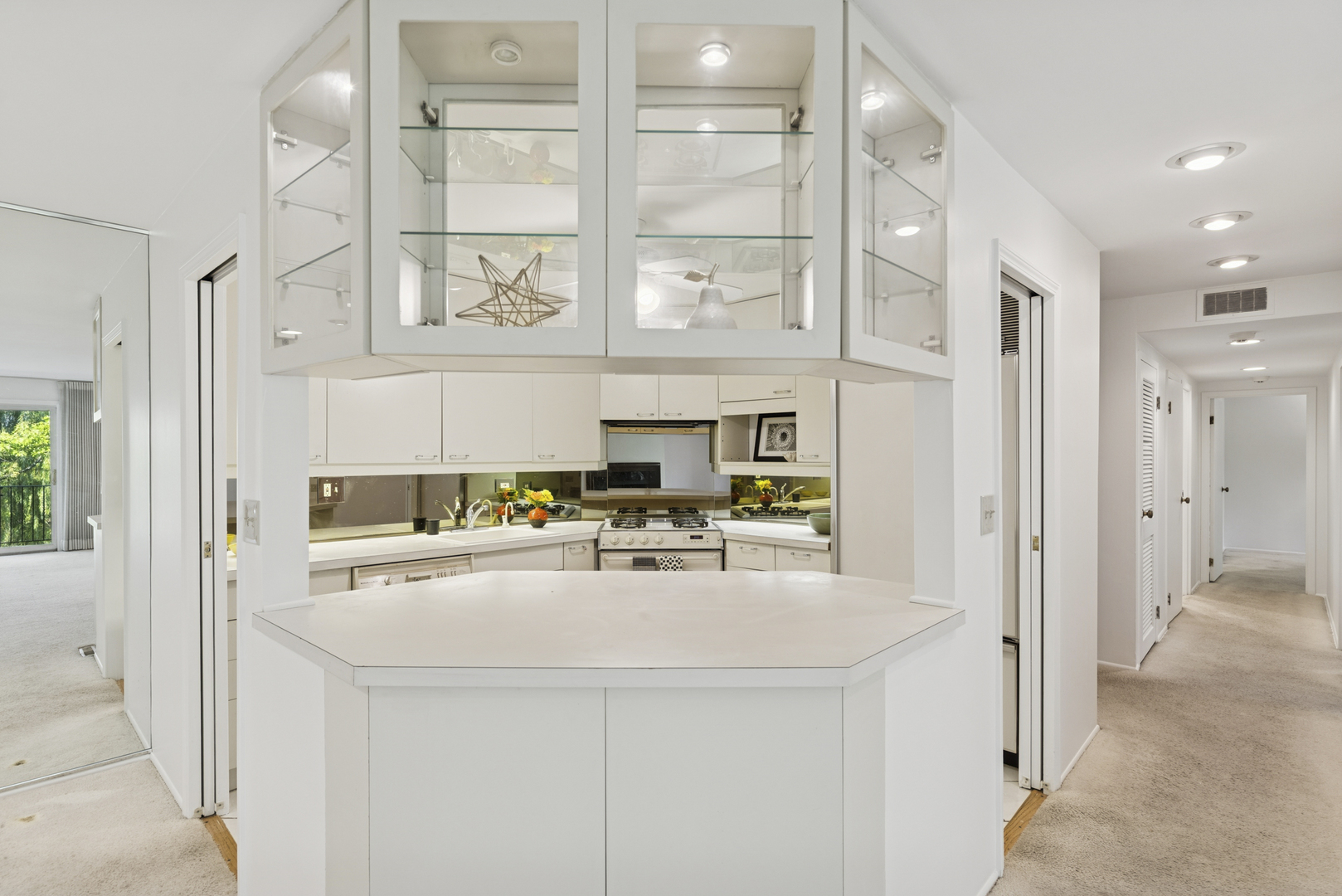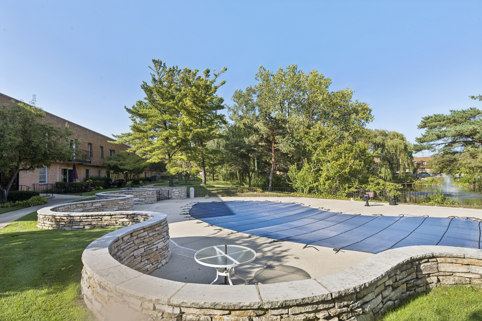 Spacious, FRESHLY PAINTED 2nd floor condo with serene pond views. Renovated kitchen open to the large LR/DR areas. LR has gas FP and balcony. Three nicely sized bedrooms with amazing closet space, including a huge walk-in in primary bedroom. Updated bathrooms. Great laundry/storage room in unit. TWO indoor parking spaces (#38,#39) plus storage space. Incredible development with 2 outdoor pools, ponds and walking paths. Fabulous location across the street from The Preserve of Highland Park and its walking paths, fishing ponds and picnic spaces, as well as the Recreation Center of HP and the HP Senior Center; plus easy access to downtown Highland Park and the highway. Bring your design ideas to this amazing space!