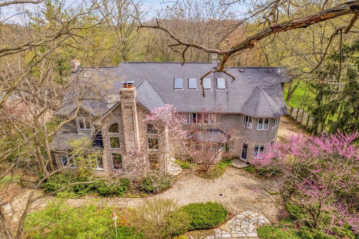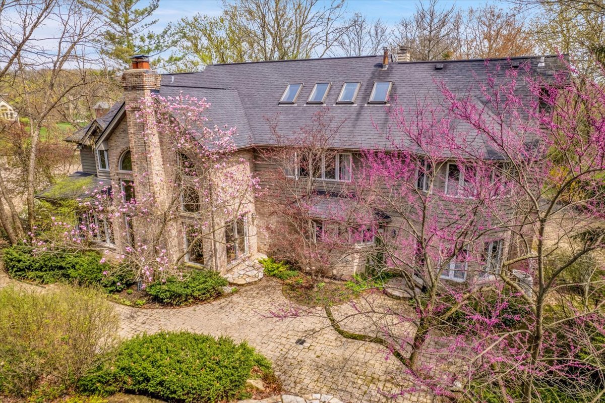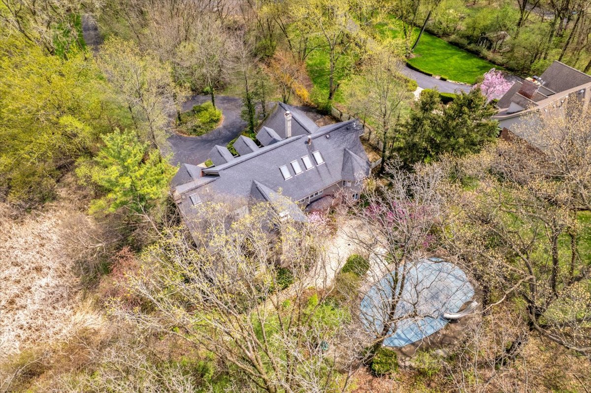 PRIVATE WOODED ESTATE Nestled amongst natural landscaping, this just-under-1.2-acre wooded estate residence offers unmatched privacy, natural beauty, and refined luxury. Surrounded by mature trees, ponds, and a vibrant butterfly garden, this home features 4 bedrooms, 4.5 baths, 3 fireplaces, a heated in-ground pool with slide, and is a true sanctuary for both everyday living and grand entertaining. Step inside to a sun-filled layout that begins with a grand foyer featuring double closets and opens to an elegant formal living room and a formal dining room. The double-entry dining room showcases French doors and custom, architecturally designed built-ins that surround a cozy fireplace, while the living room is adorned with crown molding and its own fireplace. French doors lead to a richly appointed library with custom, built-in bookcases. At the heart of the home, the chef’s kitchen boasts high-end appliances, marble countertops, and a sun-drenched kitchenette for casual dining. Adjacent is the family room, anchored by a soaring two-story brick fireplace with gas start wood-burning capabilities. An all-season sunroom, finished with exposed brick walls and handmade Spanish clay tiles, provides a tranquil space to relax year-round. Upstairs, the luxurious double-door entry primary suite leads to a spa-like primary bath that boasts a circular walk-in shower, a tiered level jacuzzi tub surrounded by windows that provide sunlight and privacy under a cathedral ceiling complete with his and hers separate vanities and a double-entry his and hers walk-in closet with a California Closet system. A grand spiral staircase leads to a sunlit third-floor oversized bonus room with skylights-perfect for a studio, playroom, or home office. Outdoors, enjoy a heated in-ground pool with slide, encircled by multi-level paver patios ideal for summer gatherings. A secluded serene pond with pier offers fishing in summer and ice skating in winter, bringing year-round recreation to your doorstep. Additional highlights include a mudroom with a full bath and closet storage, a multi-room unfinished basement with a finished laundry room, and a build-out ready for a sauna or steam room. Paver patio apron leads to a three-car garage. This remarkable estate balances luxurious comfort with timeless charm, offering an extraordinary lifestyle in a peaceful, nature-filled setting. Located 0.5 miles from Metra and Northwestern Hospital. Walking distance to park and library…A RARE BUY at $990,000!