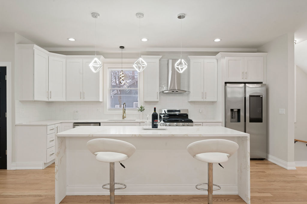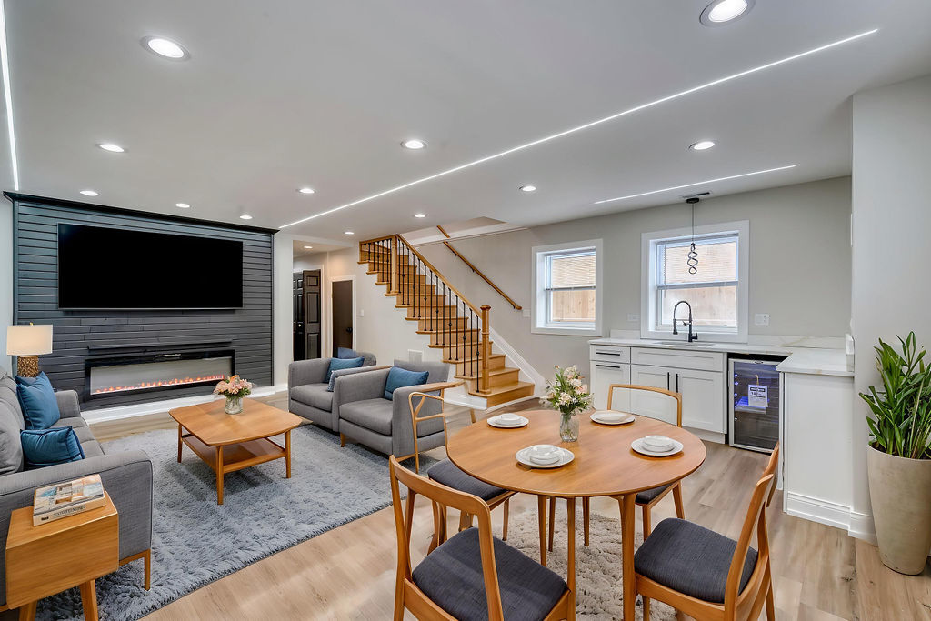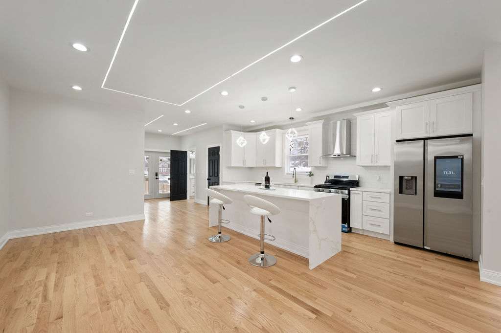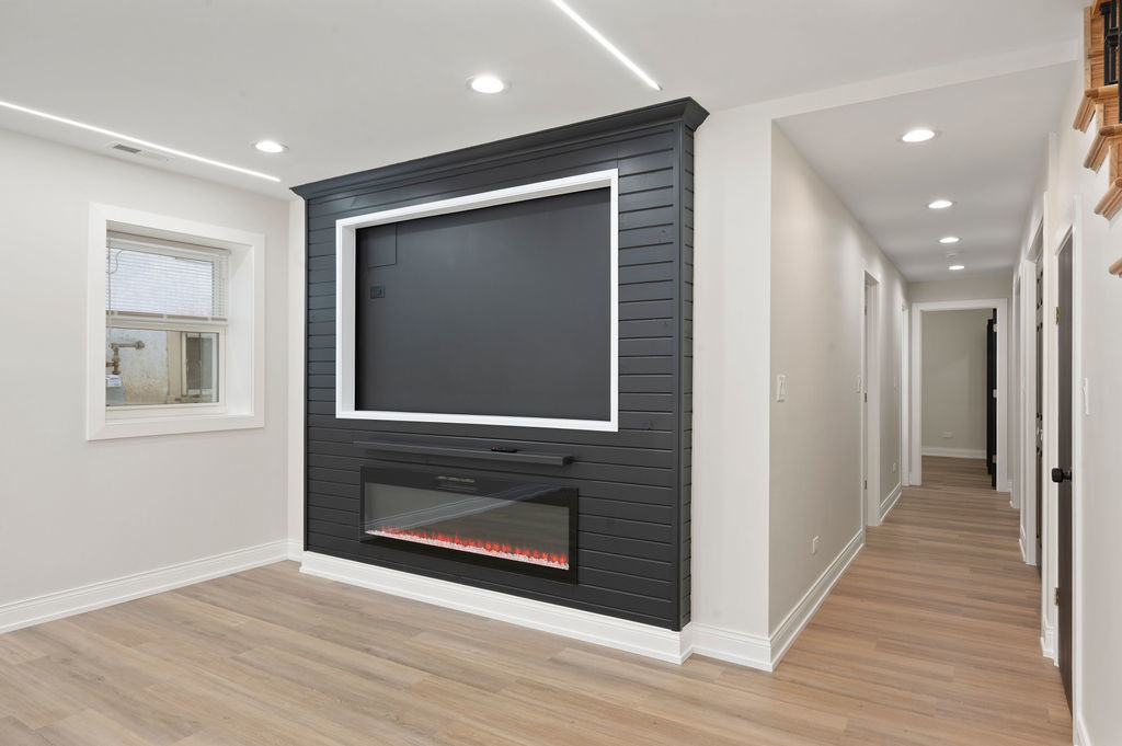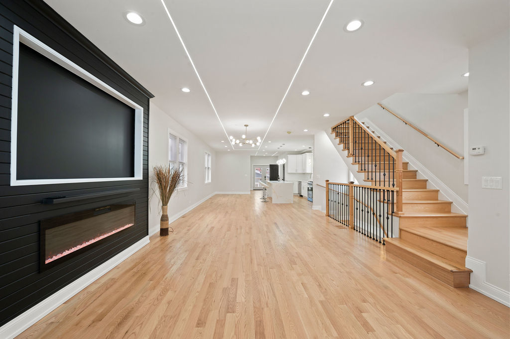 Best deal in the area for New construction Home!!! Welcome to this striking new construction home, thoughtfully designed with a clean, modern exterior featuring durable fiber cement siding, stone accents, and bold contemporary architectural lines. Situated on a fully fenced corner lot, the property offers exceptional curb appeal, added privacy, and abundant natural light throughout. Inside, the main level impresses with a bright, open-concept layout highlighted by wide-plank oak hardwood floors, recessed lighting, and sleek linear LED ceiling accents that create a refined, high-end ambiance. The living room is anchored by a custom electric fireplace feature wall, seamlessly flowing into a refined kitchen showcasing crisp white cabinetry, elegant quartz countertops, and a statement island perfectly balancing luxury, light, and functionality. The first floor also includes a private office, a stylish powder room, and direct access to the deck and backyard for effortless indoor-outdoor living. The second level offers 9-foot ceilings and three generously sized bedrooms, including a spacious primary suite with his-and-hers closets and a private ensuite bath. A conveniently located second-floor laundry adds everyday ease. The fully finished basement is ideal for entertaining or extended living, featuring a wet bar with beverage refrigerator, a family room with TV and fireplace wall insert, two additional bedrooms, and a full bathroom. The home extends seamlessly outdoors to a private rear yard with a wood deck, perfect for entertaining or quiet retreat. A detached oversized 2.5 garage, concrete side drive, and full perimeter fencing for convenience safety and privacy.