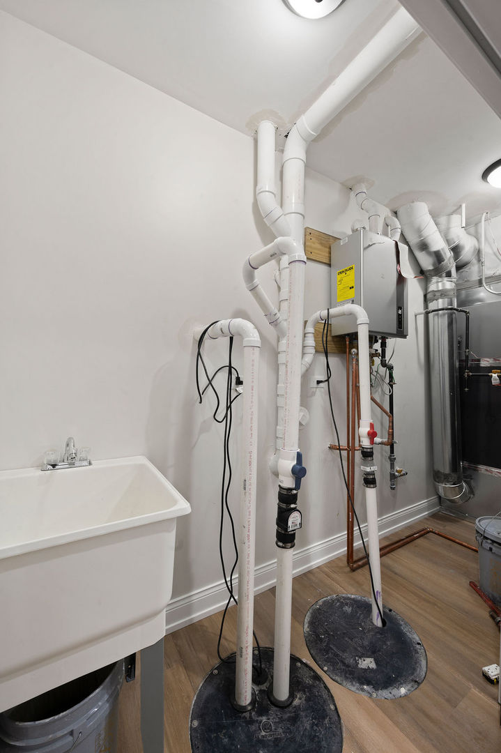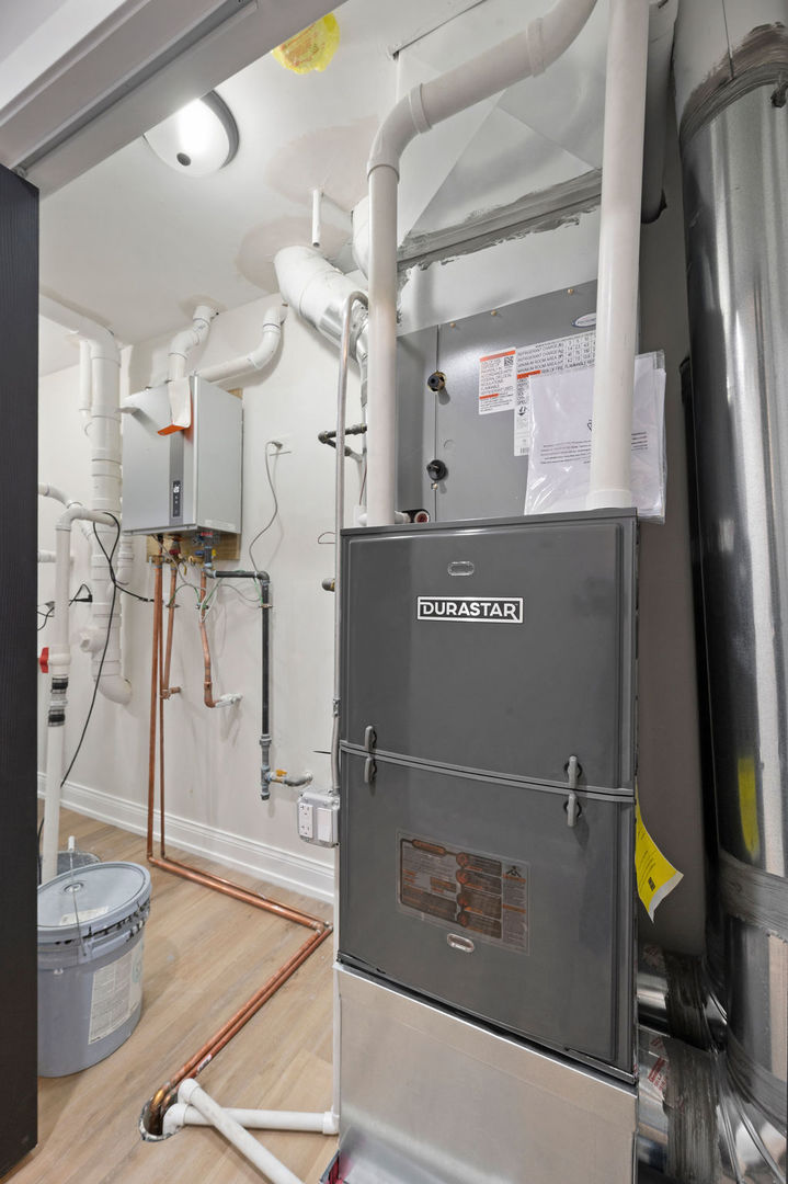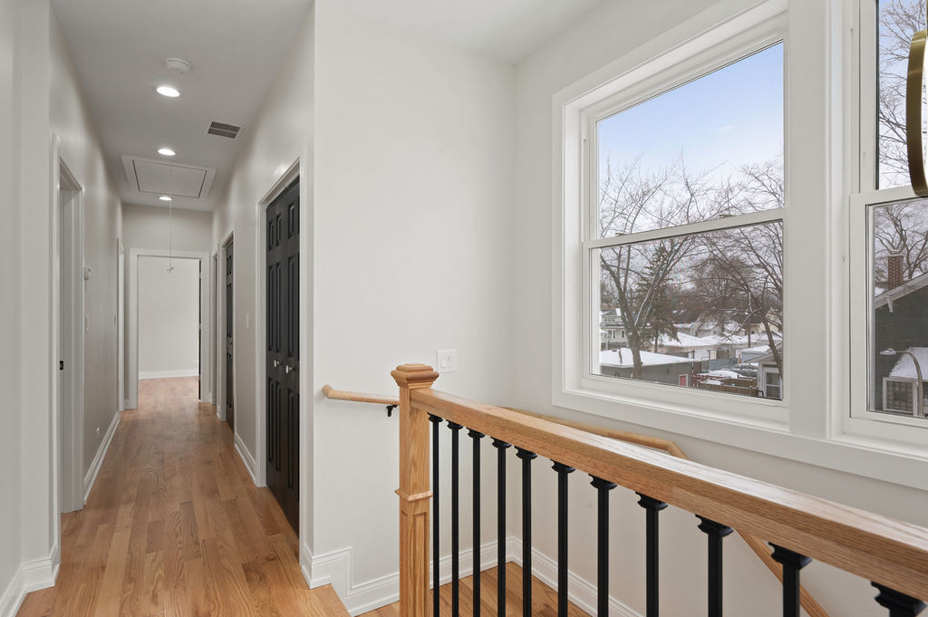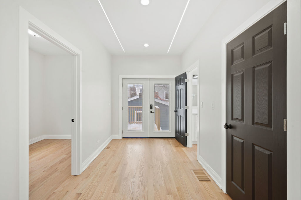 Best deal in the area for New construction Home!!! Welcome to this striking new construction home, thoughtfully designed with a clean, modern exterior featuring durable fiber cement siding, stone accents, and bold contemporary architectural lines. Situated on a fully fenced corner lot, the property offers exceptional curb appeal, added privacy, and abundant natural light throughout. Inside, the main level impresses with a bright, open-concept layout highlighted by wide-plank oak hardwood floors, recessed lighting, and sleek linear LED ceiling accents that create a refined, high-end ambiance. The living room is anchored by a custom electric fireplace feature wall, seamlessly flowing into a refined kitchen showcasing crisp white cabinetry, elegant quartz countertops, and a statement island perfectly balancing luxury, light, and functionality. The first floor also includes a private office, a stylish powder room, and direct access to the deck and backyard for effortless indoor-outdoor living. The second level offers 9-foot ceilings and three generously sized bedrooms, including a spacious primary suite with his-and-hers closets and a private ensuite bath. A conveniently located second-floor laundry adds everyday ease. The fully finished basement is ideal for entertaining or extended living, featuring a wet bar with beverage refrigerator, a family room with TV and fireplace wall insert, two additional bedrooms, and a full bathroom. The home extends seamlessly outdoors to a private rear yard with a wood deck, perfect for entertaining or quiet retreat. A detached oversized 2.5 garage, concrete side drive, and full perimeter fencing for convenience safety and privacy.