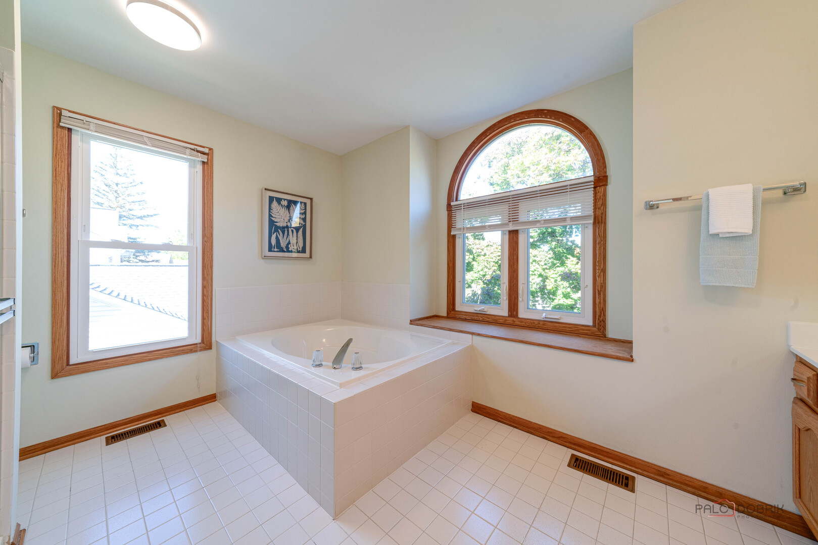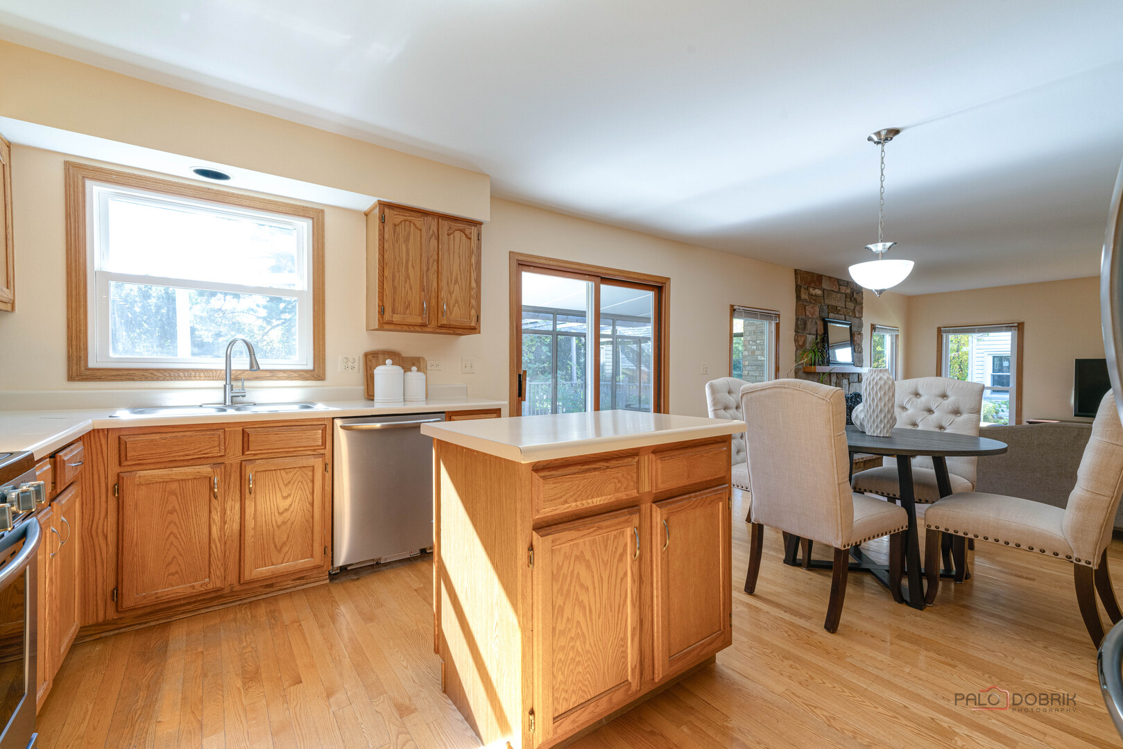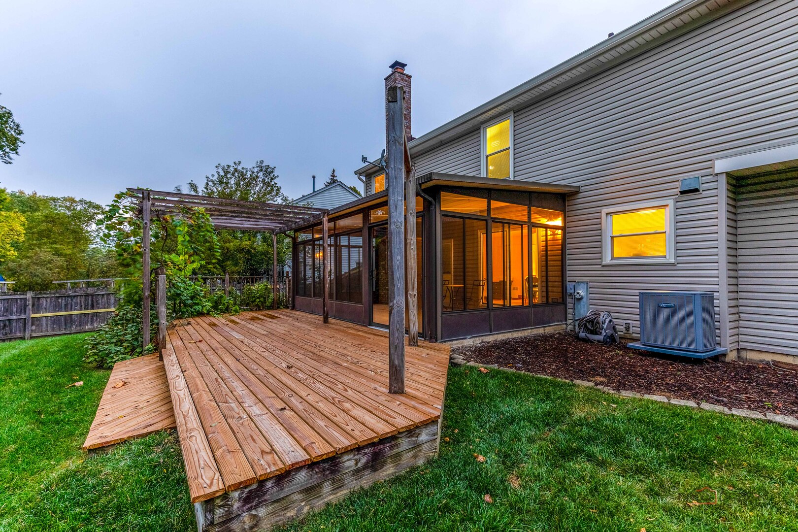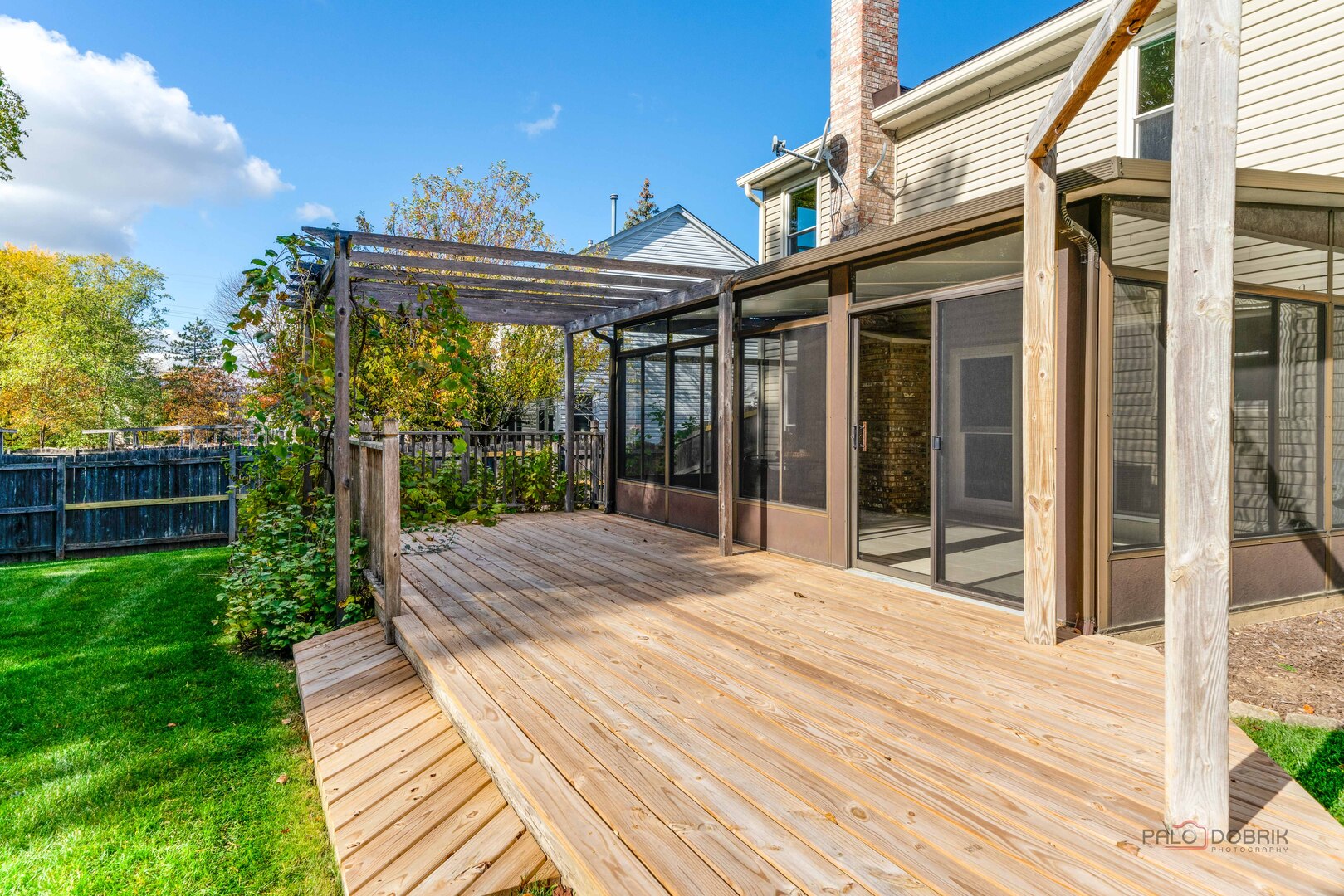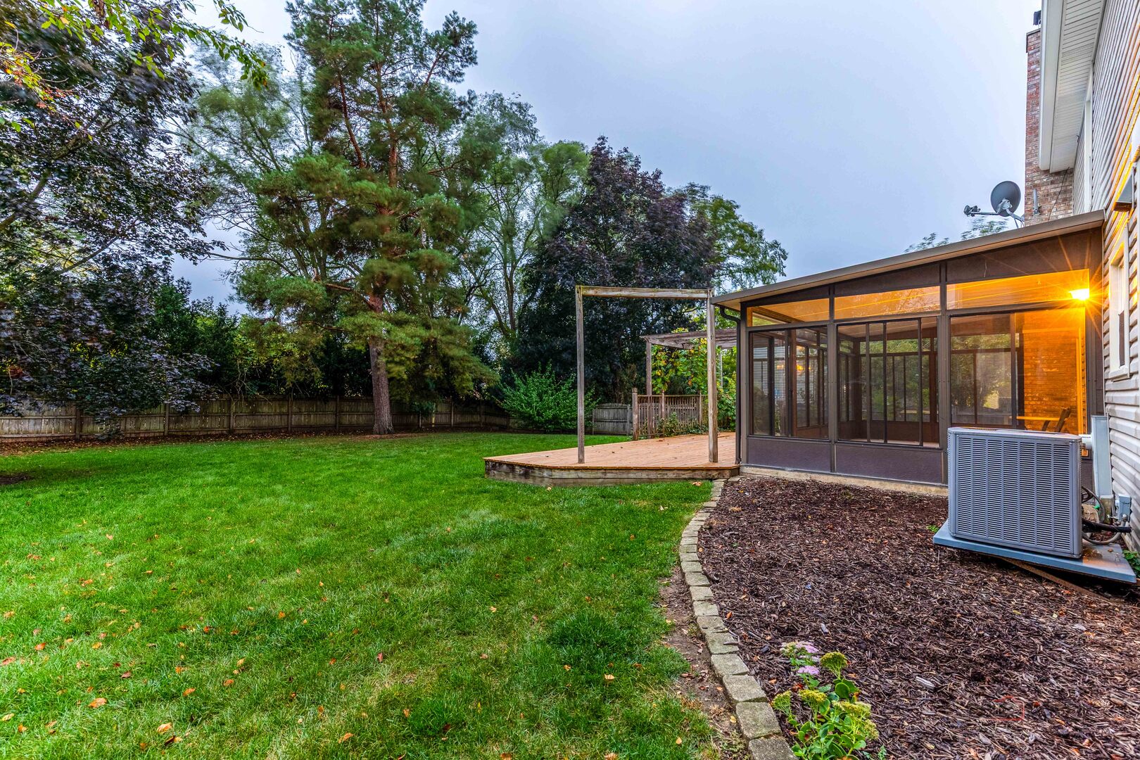 WELL-MAINTAINED WITH IMPRESSIVE UPGRADES IN HIGHLY DESIRABLE GROSSE POINTE VILLAGE WITHIN THE AWARD-WINNING STEVENSON SCHOOL DISTRICT! Perfectly situated on a fully fenced lot surrounded by lush landscaping and mature trees, this home shines with thoughtful updates throughout. Enjoy peace of mind with a brand-new roof and siding (2025), new A/C (2018), new windows (2018), and remarkably kept hardwood flooring that spans across most of the main level. Tranquility awaits in your private backyard where you can host a summer cookout on the deck, unwind with your favorite drink in the screened-in porch, or simply take in the peaceful setting framed by nature. Through the front door, an inviting two-story foyer sets the tone for the rest of the home, flanked by a formal living room and a separate dining room with soaring ceilings and a convenient butler’s pantry, both designed for entertaining with ease. Continue to the spacious family room, where a floor-to-ceiling stone fireplace creates a warm and welcoming focal point. The open layout connects the family room to the kitchen, so conversations flow easily from one space to the next. The eat-in kitchen offers abundant cabinetry for storage, generous counter space for meal prep, a center island, a built-in planner’s desk, and a sunny breakfast area. Open the sliding door to extend your gatherings to the screened-in porch and let the fresh air in while staying sheltered from the elements. Back inside, a laundry/mudroom, full updated bath, and first-floor den complete the main level. The den provides a perfect home office setup or can easily be converted to serve as a first-floor bedroom. Ready to call it a night? Head upstairs to the primary bedroom suite showcasing a vaulted ceiling, large walk-in closet, an additional wall closet, and a private bath featuring dual vanities, a soaking tub, and a separate shower. Three additional bedrooms, each with generous closet space, and a centrally located full bath complete the second level. The unfinished basement offers endless possibilities-design a media room, play area, or home gym and add to your living space. A utility area and crawl space provide plenty of additional storage. Two-car garage and a location just minutes from neighborhood walking and bike trails, parks, shopping, and more. Schedule a showing today!