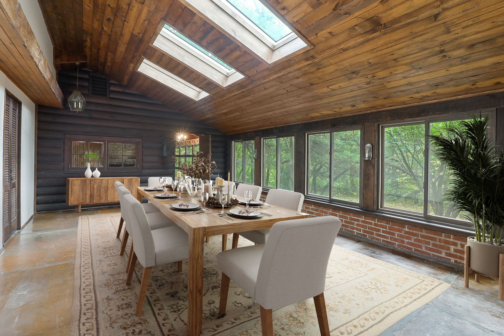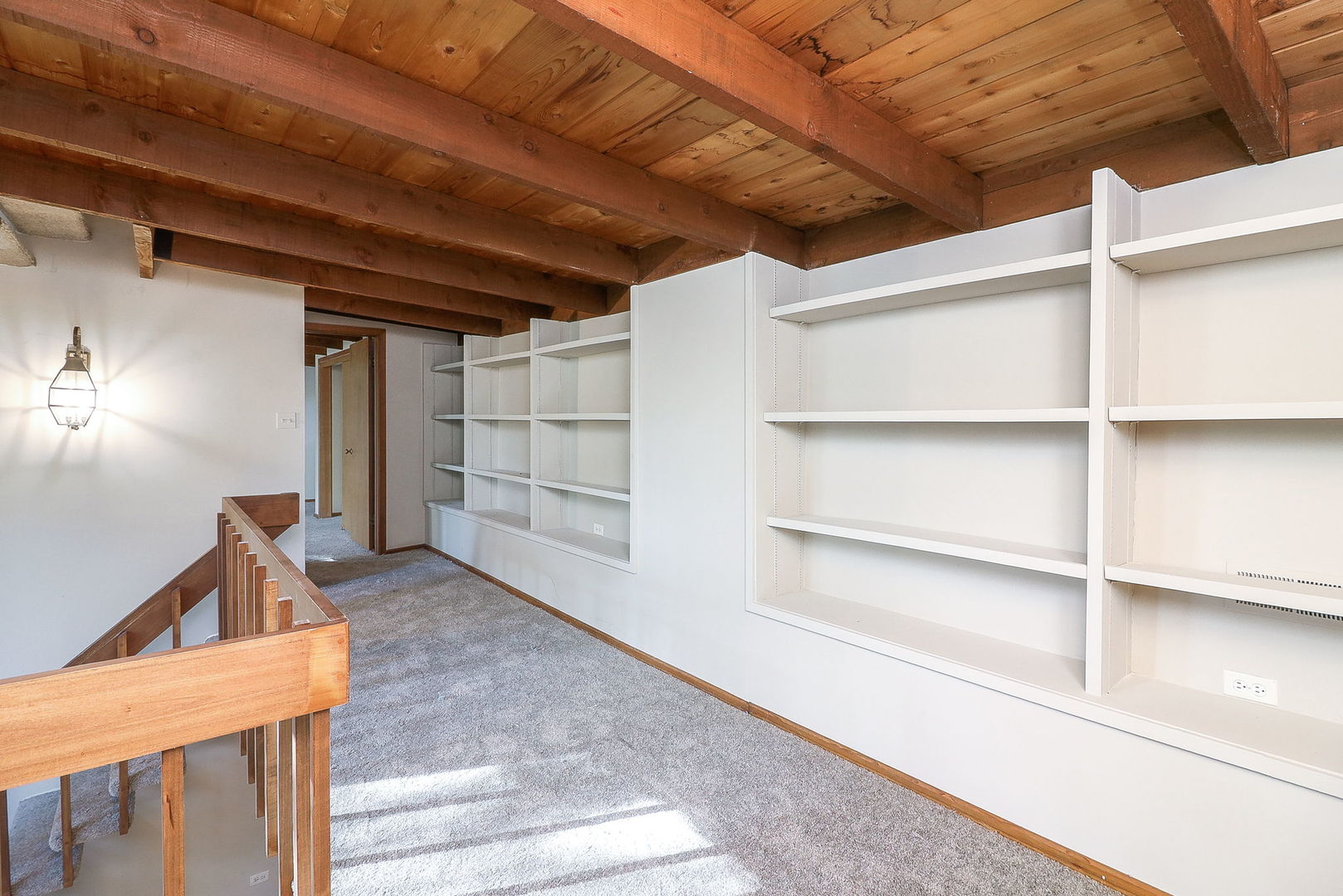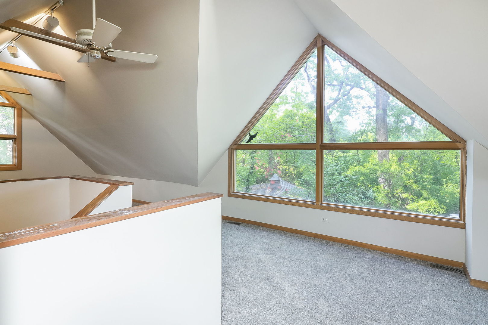 Tucked away on a beautifully wooded 1.4-acre lot, this truly one-of-a-kind home feels like a hidden retreat, where every window frames nature and every room offers character. With 5 bedrooms, 2 full baths, and 2 lofted spaces, there’s endless potential to make this your personal sanctuary or creative getaway in the heart of Palos Park. Step inside to find fresh paint and new carpet throughout, setting the stage for your updates and ideas. The heart of the home is truly this kitchen. It blends rustic charm with functionality, featuring warm wood cabinetry, butcher-block counters, a center island, double oven, cooktop, refrigerator, pantry, and terracotta tile floors with a decorative tile backsplash. The kitchen flows naturally into the cozy hearth room, complete with a wood-burning fireplace and access to the spacious wood deck overlooking the trees. The grand dining room was designed for entertaining with stained concrete floors (radiant heated), floor-to-ceiling windows, and multiple skylights that flood the space with natural light. Continue into the living room, where another fireplace, wet bar, and a wall of glass make this the perfect space for gatherings or quiet evenings surrounded by nature. The East wing of the home features a moody yet inviting primary bedroom with exposed wood beams, built-ins, radiant heated stained concrete floors, double closets, and a third fireplace. A connected bonus room offers endless possibilities a home office, yoga studio, or dream walk-in closet. Nearby, you’ll find a full bath with a soaking tub, skylight, and terracotta tile. A second bedroom completes this side of the home. The West wing offers two additional first-floor bedrooms, both with wood-beam ceilings and sliding doors leading to the deck plus another full bath with tub/shower combo. Upstairs, a fifth bedroom and loft with built-ins provides even more flexibility, while the third-floor sitting room features double closets and breathtaking treetop views it truly feels like a treehouse escape. Outside, the home’s exterior was fully redone in October 2020 with a new metal roof, insulation and Hardie Board siding. Additional updates include a new boiler and water heater (2024) The home contains five-zone radiant floor heating throughout the first floor. 2.5 garage with new insulation, roof, siding and accent stone. Offered as an estate sale and sold as-is, this is your opportunity to own a one-of-a-kind wooded paradise in Palos Park, ready for your vision and creativity. Whether you’re dreaming of a peaceful retreat, an artist’s hideaway, or a family compound surrounded by nature, this home is waiting for you.