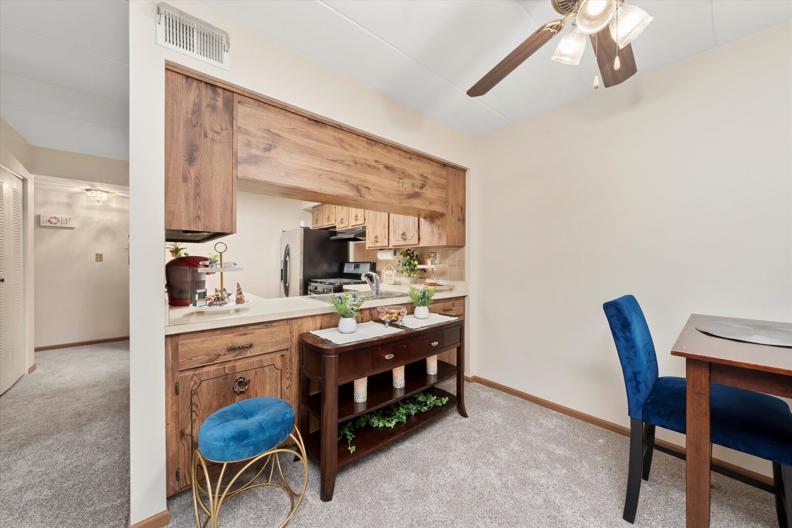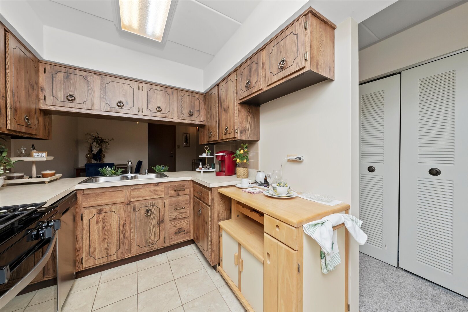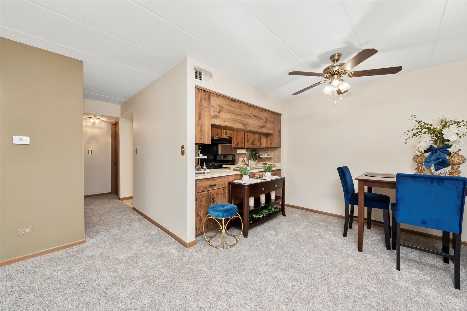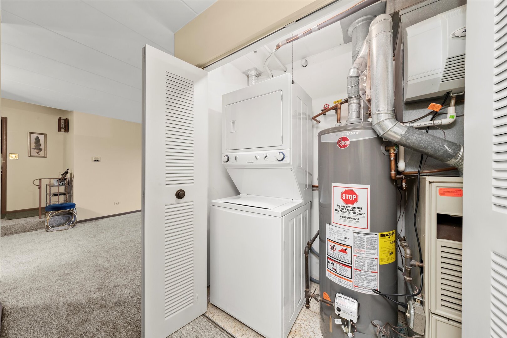 Welcome to this beautifully prestine kept, two bedroom, two full bathroom condo that is sure to impress! As you step inside, you’ll be greeted by modern and comfortable carpet flooring that runs throughout the main living areas, providing both durability and style. The kitchen boasts appliances that will stay with the unit. The ample cabinet space and countertops make meal prep a breeze, while the adjacent dining area provides a perfect spot to enjoy your meals. The two bedrooms offer ample living spaces, with master bedroom full bathroom and a walk in closet. Whether you need a private retreat for yourself or a comfortable guest room for visitors, these bedrooms are sure to fit the bill. In addition to the stylish updates, this condo also offers practical amenities, such as a laundry area conveniently located within the unit, and plenty of storage space throughout.Pet Friendly Building! Sought after deeded one car garage with an additional parking spot. Located in a desirable area, this condo offers both the convenience of city living and the tranquility of a quiet neighborhood. Don’t miss your chance to make this stunning condo your own!