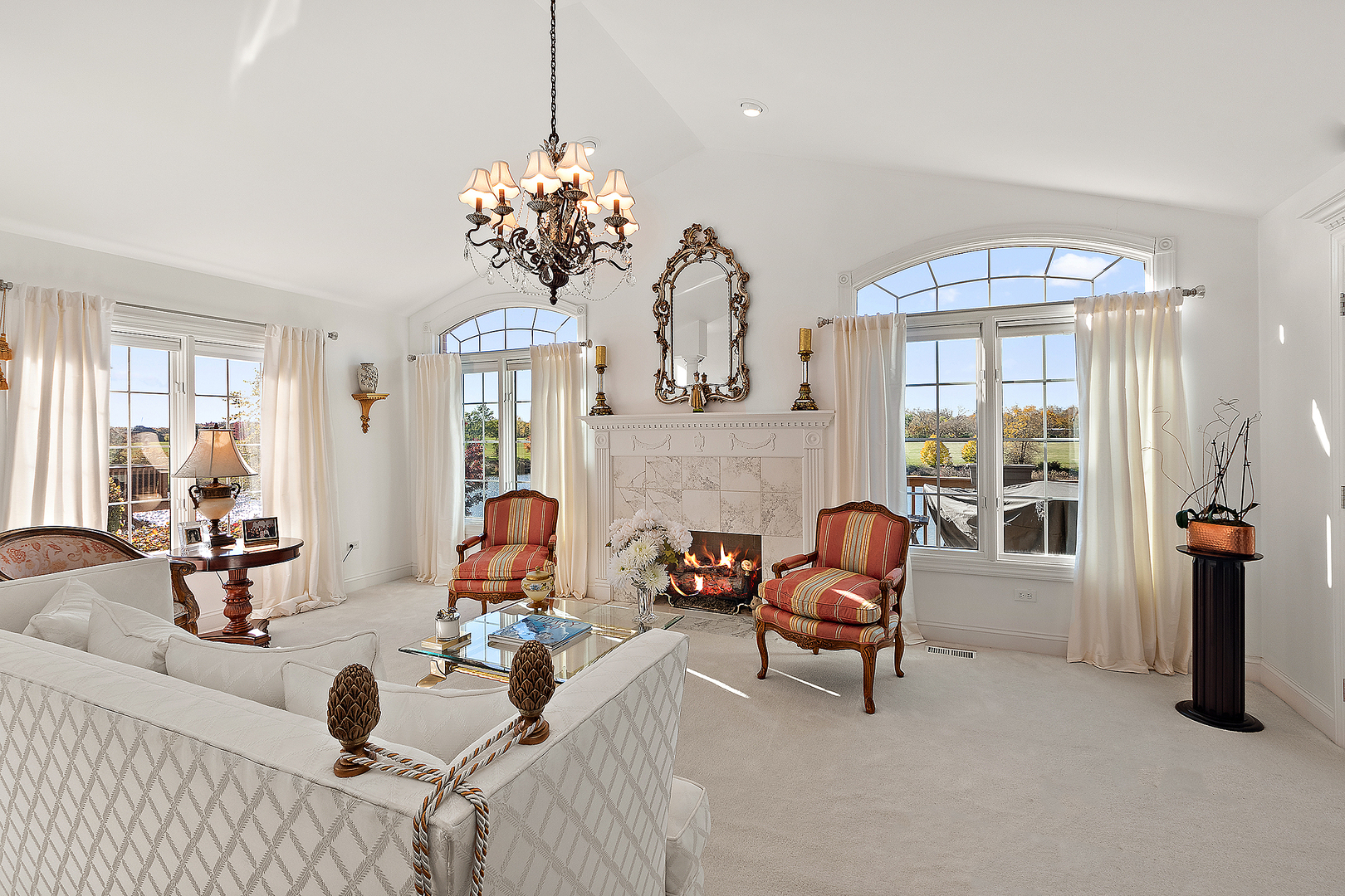 This stunning walkout ranch villa on the pond is truly one of a kind! In 2025, the home received a new roof, furnace, and AC. The kitchen features newer stainless steel appliances, quartz countertops, and a stylish tile backsplash. Thoughtful upgrades throughout include wainscoting, crown molding, and oversized trim. The living room showcases a vaulted ceiling with transom windows, a gas fireplace with an elegant surround, and French glass doors leading to the kitchen. The spacious dining room impresses with a statement chandelier, crown molding, chair rail detail, and gleaming hardwood floors. The primary suite offers a vaulted ceiling, beautiful windows, an enormous walk-in closet, and a luxurious ensuite with dual vanities, a shower, and a whirlpool tub. The walkout lower level features a large family room with a brick gas fireplace flanked by patio doors, a guest bedroom with a walk-in closet, a recreation room, an office/workout room with French doors, a full bath, and plenty of storage space. Outside, enjoy the professionally landscaped yard, a lower-level patio, and a newer maintenance-free deck off the kitchen with spectacular pond views. Additional highlights include a gas-heated garage and convenient guest parking right across the street. Don’t miss your chance to own this beautifully maintained, move-in-ready home!