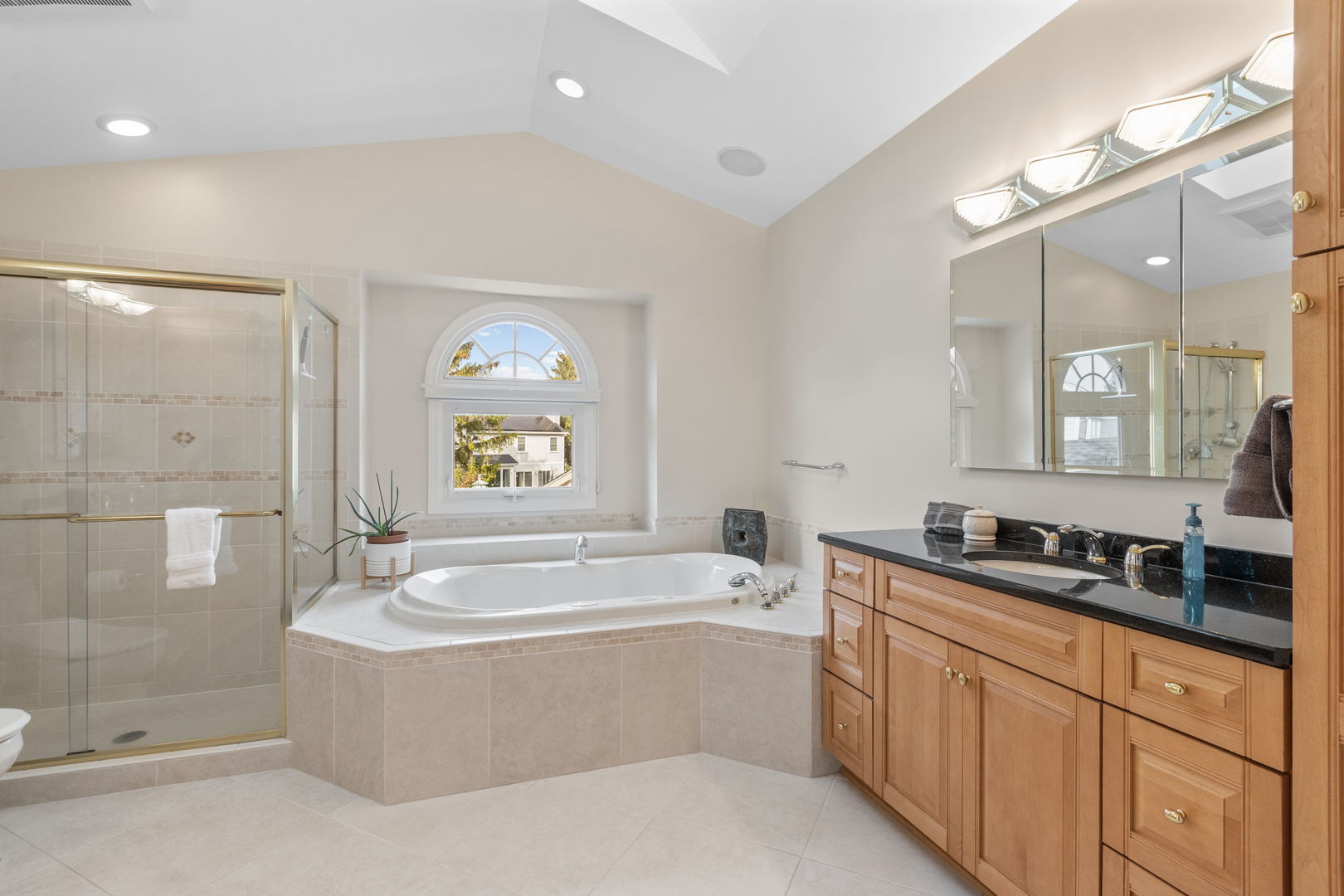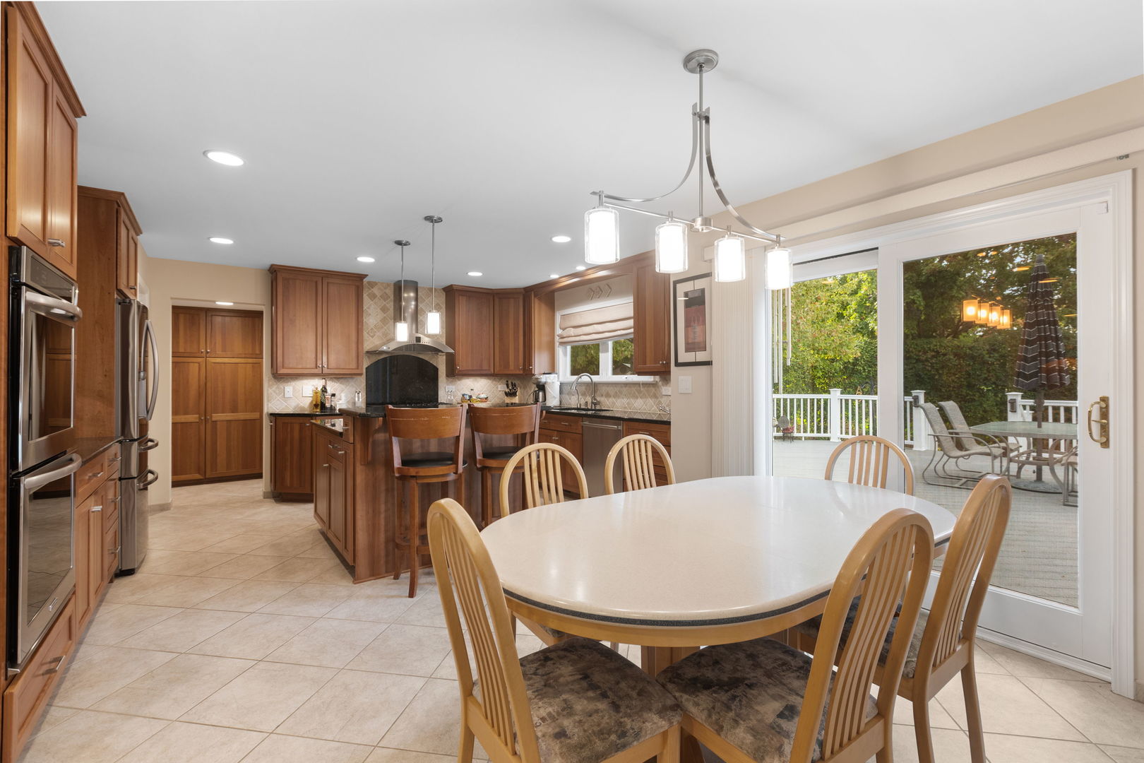 Located in the highly sought after Old Farm Village neighborhood of Buffalo Grove! Ideally situated on a large, professionally landscaped, nearly 1/3-acre lot with a huge deck allowing for multiple seating areas. Updates include a brand-new front entry with paver stone, newer roof, in-ground sprinkler system, & gleaming hardwood floors. Gourmet kitchen boasts 42-inch cherrywood cabinets, granite countertops, custom tile backsplash, stainless steel appliances including double oven, center multi-level island with seating, custom pendants, additional storage & electrical outlets. The enormous walk-in pantry is a show stopper! Multiple seating areas include 2 breakfast bars and a space for your largest kitchen table. The butler’s pantry has upper and lower cabinets, some with wavy glass inserts and interior cabinet lighting. All overlooking the huge family room. There is also a separate eating area overlooking the huge deck and private backyard. There is an extra-large laundry/mudroom with custom cabinets, a newer washer/dryer, & a utility sink adjacent to a door leading to backyard. A formal dining room with vaulted ceilings and recessed lighting, an office with doors making it an easy transition to a main level bedroom. The updated powder rm completes the main level. The 2nd level does not disappoint.4 bedrooms with customized closets and a linen closet are found at the top of the open staircase that overlooks the dining room. The primary suite has an expanded full bathroom with 2 vanities, deep oversize bubble tub, gorgeous sky light plus expanded walk-in closet and a double door wall of closets. Both the bathroom and walk-in closet have been greatly expanded allowing for getting ready for the day a breeze! The other 3 bedrooms have easy access to yet another full, updated bathroom. Currently one bedroom is being used as an office. All closets have been customized for ultimate storage. Entertaining indoors is even easier in your fully finished basement. Here you will find a recreation room or a play room, an exercise area or the perfect location for a 5th bedroom with a walk-in cedar closet plus yet another full bath. Storage is found under the stairs; a workshop and more closets complete the lower level. Oversize 2 car attached garage with epoxy flooring has additional cabinets & custom bike hooks for even more storage. Students attend the Award-winning District 102 and Stevenson High Schools. Numerous parks, tennis courts, pickle ball courts, pools and splash pads. The library is outstanding as well as the convenience to Twin Rinks Ice Rink, shopping and Metra station. Summer brings Farmers Markets, Buffalo Grove Days and outdoor festivals in surrounding communities. Less than 30 minutes to O’Hare International and all major highways. Lake County Buffalo Grove is surrounded by Lincolnshire, Vernon Hills, Long Grove and Deerfield. Property features include but are not limited to *Impressive addition: beamed ceilings, gas start fireplace with custom mantel, tile floors in kitchen and hardwoods thru out the main level, soaring ceilings, recessed lighting with dimmers, flush mount speakers, neutral decor, custom fixtures, Koehler plumbing, lighting, stainless steel appliances, custom exhaust fan, custom tile work, double doors, pocket doors, French doors, the list is long. Zoned heating and central air conditioning with a space pack to boost the second level. This is a must see!