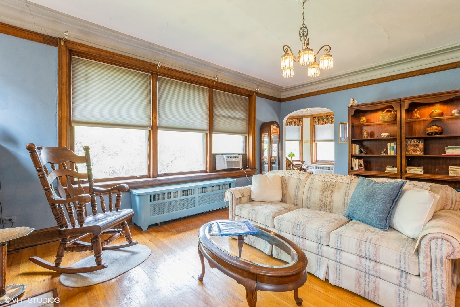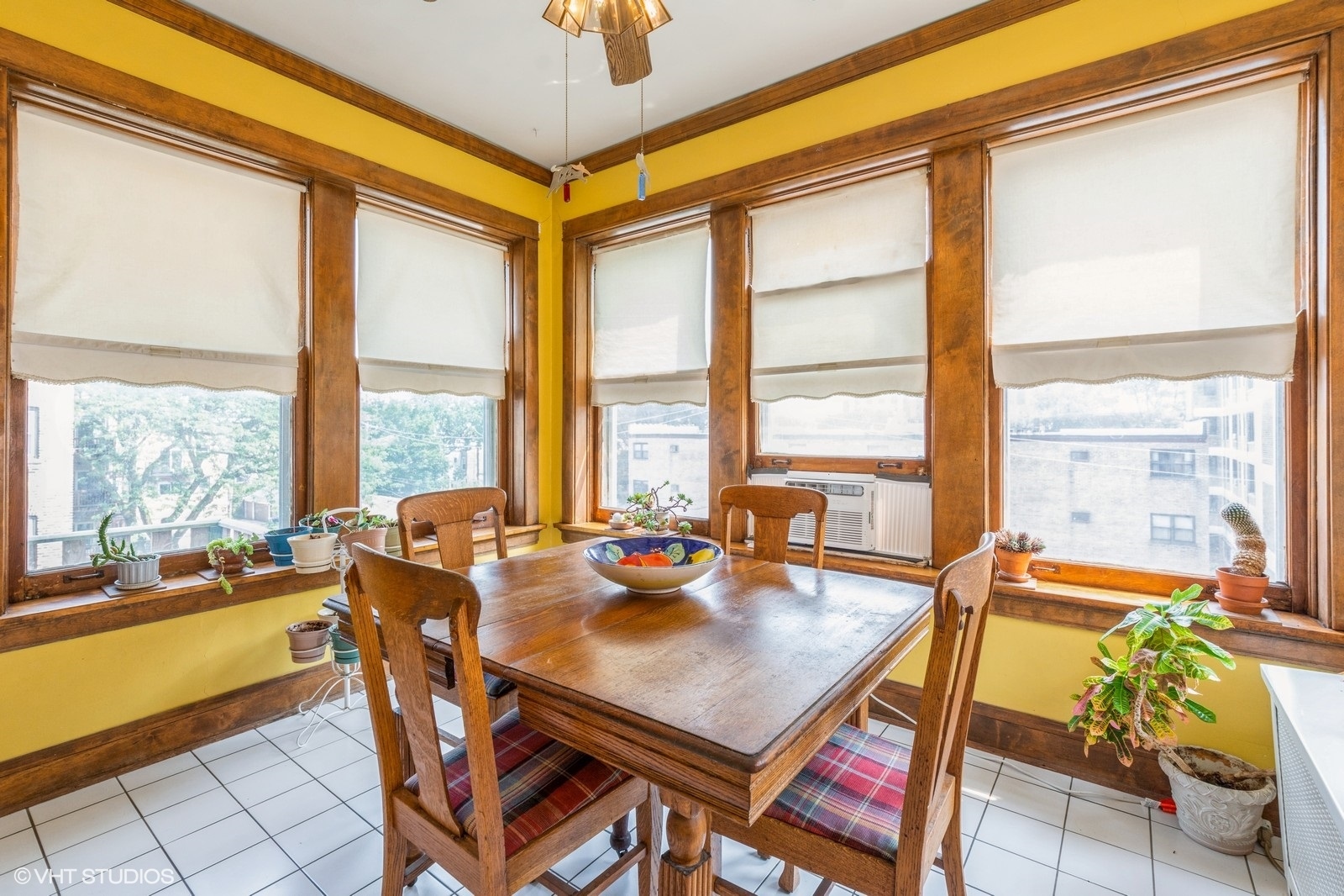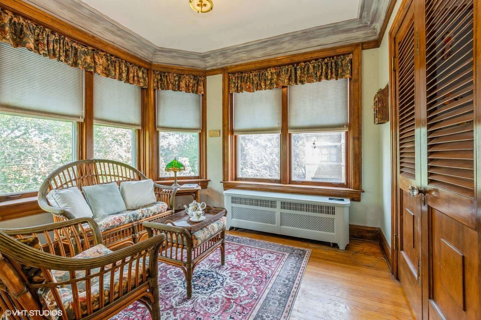 ROGERS PARK! FIRST TIME ON MARKET IN 30 YEARS & JUST STEPS TO LOVELY LAKE MICHIGAN! This Sunny High 3rd Floor Walkup Condominium is surrounded by 28 windows and will bring you so much joy! The Oversized Living Room has a beautiful gas fireplace, the original stained-glass windows & built-in shelving. Bay windowed- tree top- Sunroom/Office! But wait…there’s more! Your spacious Dining Room is perfect for entertaining & opens to the south facing Breakfast Nook. A Classic Retro Electric Kitchen includes a walk-in pantry, 2 workstations & direct access to one of the two south facing balconies overlooking the backyard. Hardwood floors throughout. King Size Primary Bedroom has two Walk in Closets! Originally a 4-bedroom home, the Primary Bedroom can easily be reconverted back to 2 bedrooms. 5 CLOSETS + Walk In Pantry! Deeded individual 1 car garage parking. Basement includes 2 large storage lockers + Bike Parking, & your individually owned washer & dryer. Great public transportation! The CTA Sheridan Road 151 express Bus to Michigan Ave is a 1-minute walk, Red Line CTA station 1 block west, Metra Rogers Park station S to the Loop & N to Ravinia is a 10-minute walk. Close to Grocery Stores, Restaurants, Live Theater, The Glenwood Sunday Market, Lake Front Bike Paths, Loyola Park Field House. Huge Price Reduction, Property being sold “AS IS”. LOVE WHERE YOU LIVE!