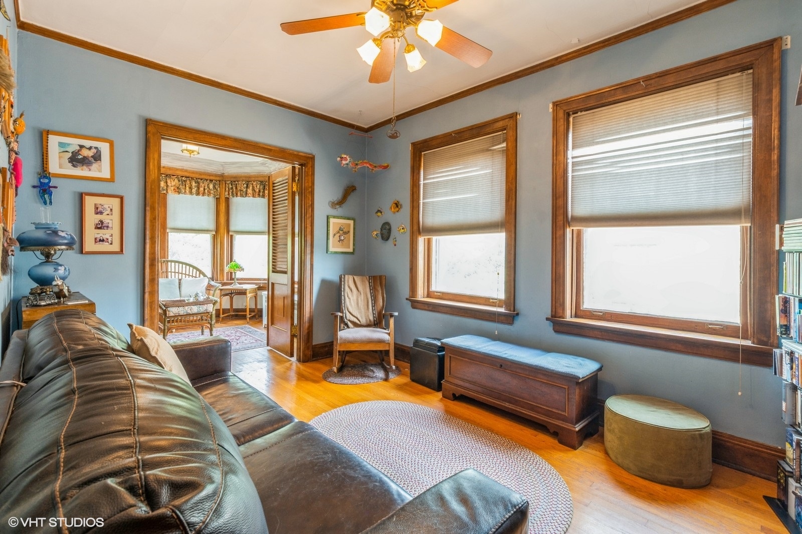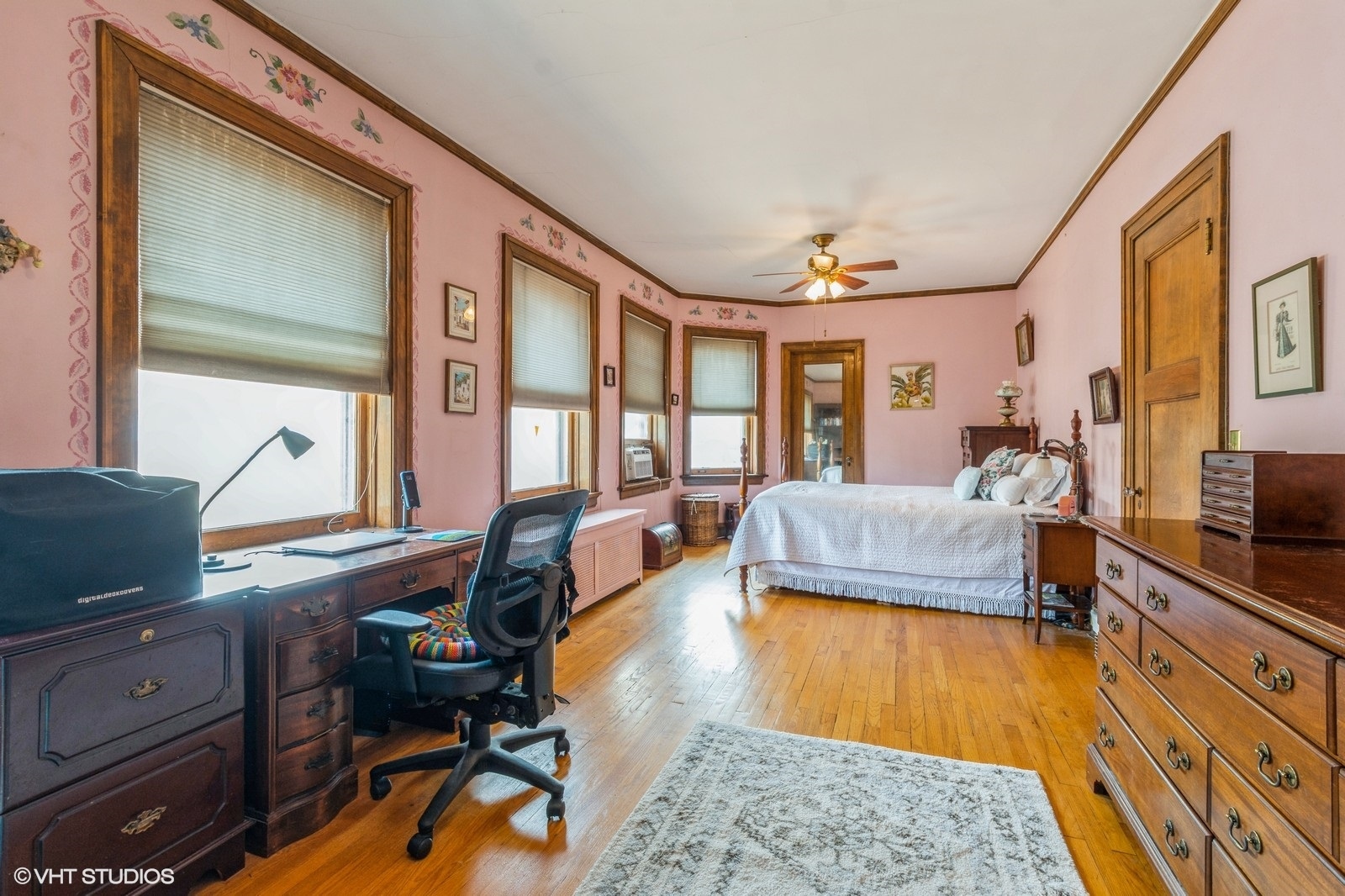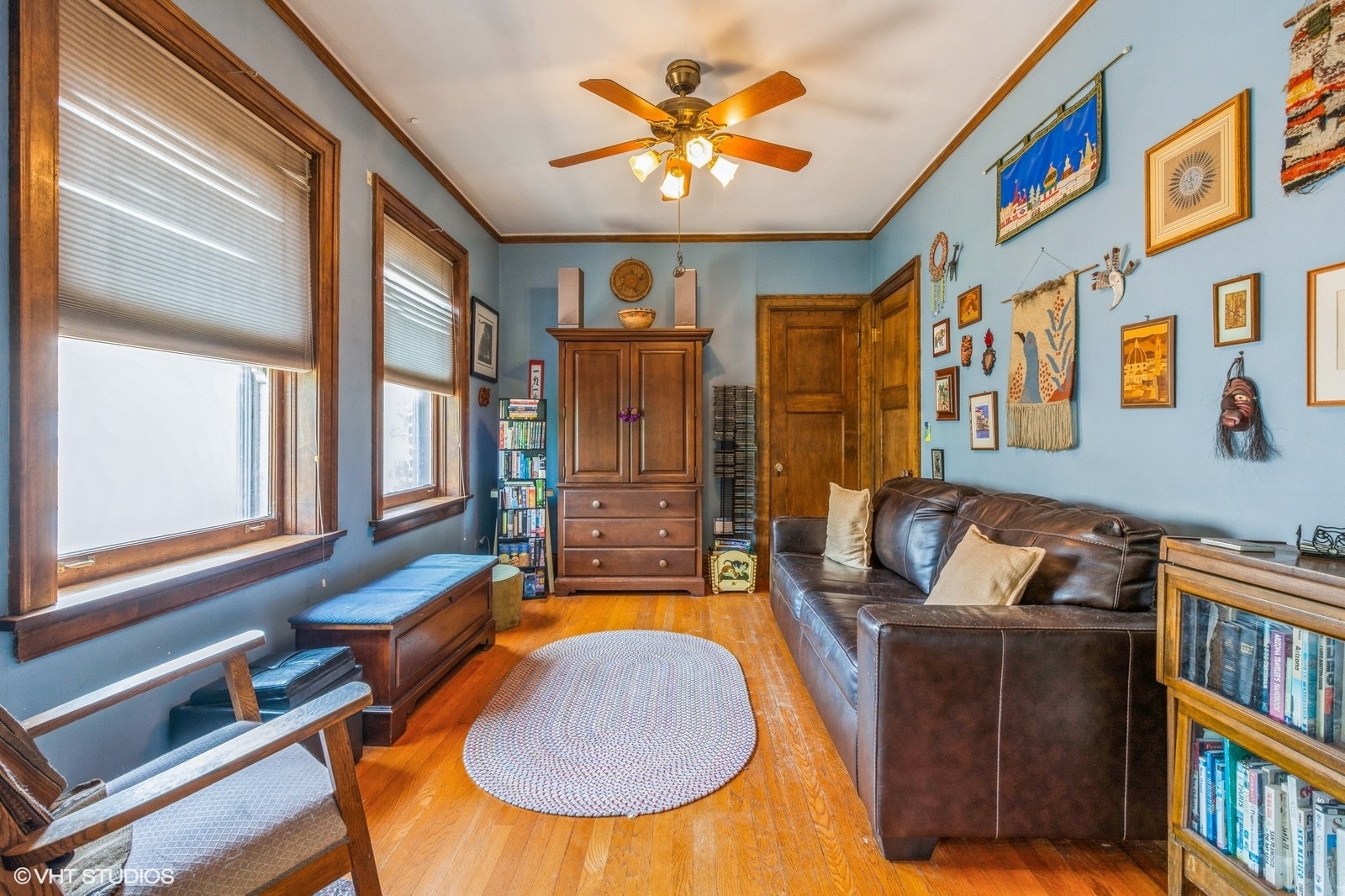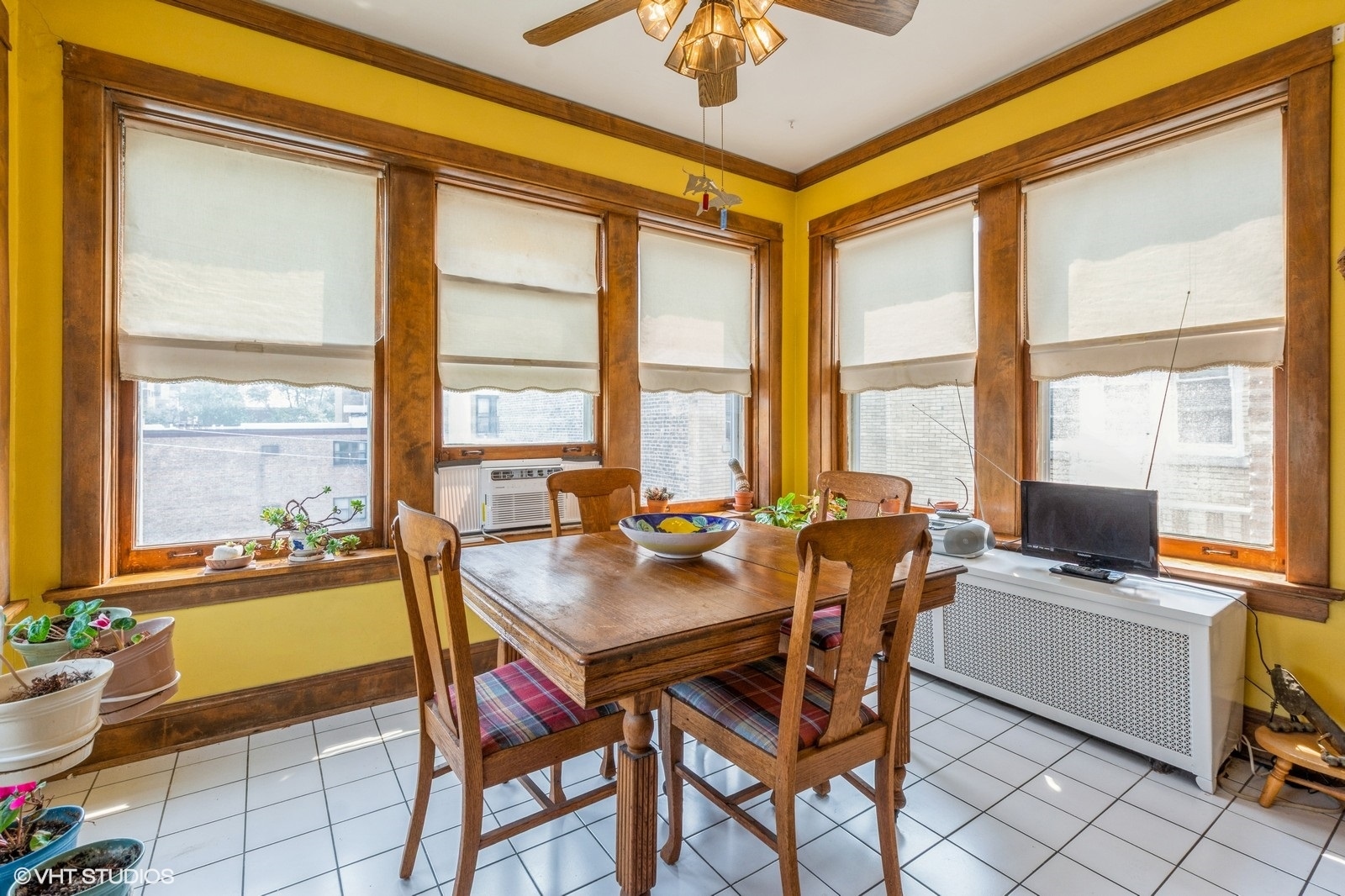 ROGERS PARK! FIRST TIME ON MARKET IN 30 YEARS & JUST STEPS TO LOVELY LAKE MICHIGAN! This Sunny High 3rd Floor Walkup Condominium is surrounded by 28 windows and will bring you so much joy! The Oversized Living Room has a beautiful gas fireplace, the original stained-glass windows & built-in shelving. Bay windowed- tree top- Sunroom/Office! But wait…there’s more! Your spacious Dining Room is perfect for entertaining & opens to the south facing Breakfast Nook. A Classic Retro Electric Kitchen includes a walk-in pantry, 2 workstations & direct access to one of the two south facing balconies overlooking the backyard. Hardwood floors throughout. King Size Primary Bedroom has two Walk in Closets! Originally a 4-bedroom home, the Primary Bedroom can easily be reconverted back to 2 bedrooms. 5 CLOSETS + Walk In Pantry! Deeded individual 1 car garage parking. Basement includes 2 large storage lockers + Bike Parking, & your individually owned washer & dryer. Great public transportation! The CTA Sheridan Road 151 express Bus to Michigan Ave is a 1-minute walk, Red Line CTA station 1 block west, Metra Rogers Park station S to the Loop & N to Ravinia is a 10-minute walk. Close to Grocery Stores, Restaurants, Live Theater, The Glenwood Sunday Market, Lake Front Bike Paths, Loyola Park Field House. Huge Price Reduction, Property being sold “AS IS”. LOVE WHERE YOU LIVE!