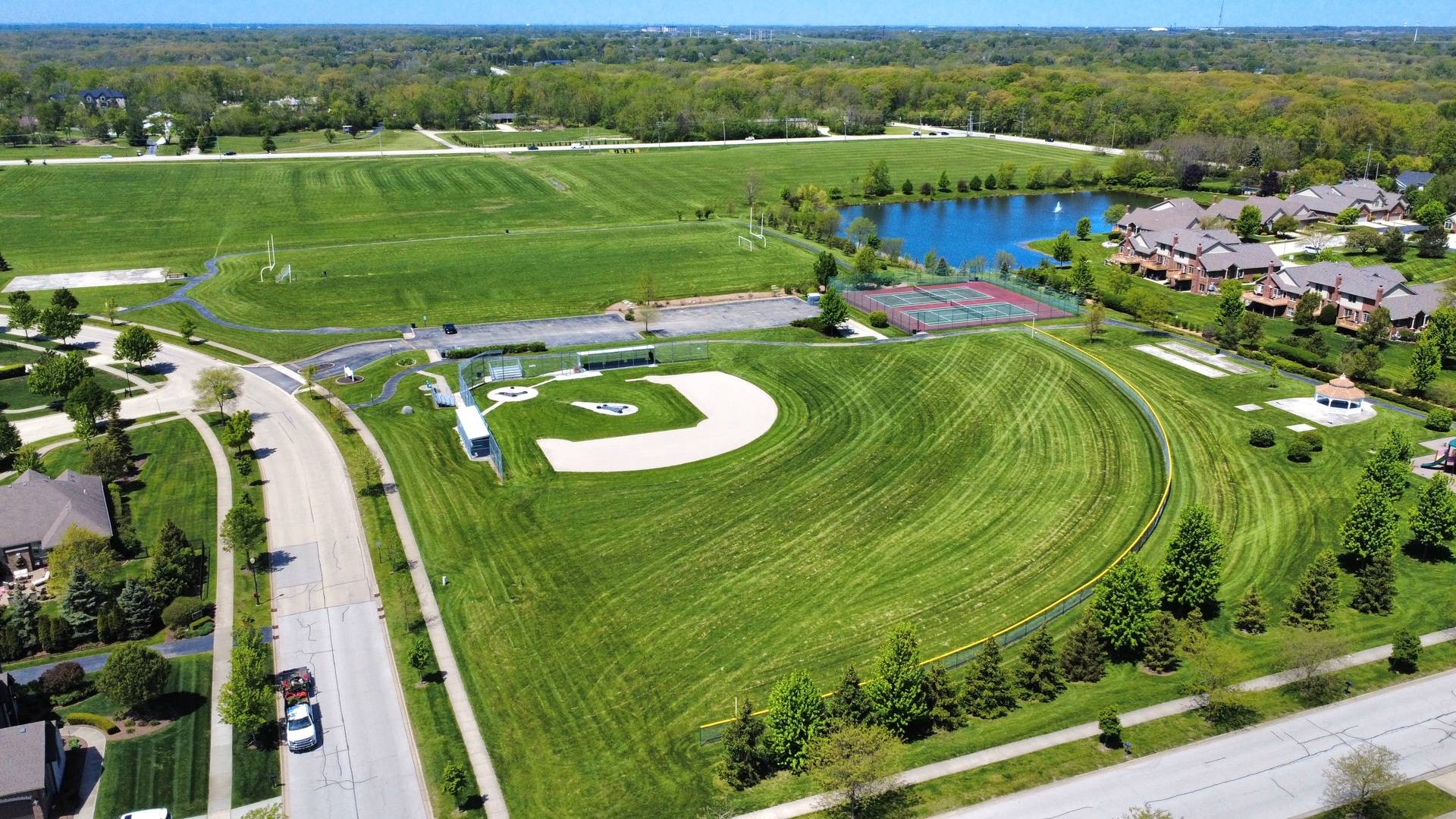 Located on a cul-de-sac in desirable Foxborough Estates, this impressive two-story home offers over 4,500 square feet of finished living space designed for comfort, style, and functionality. Featuring 5 bedrooms, 4 full baths, a 3-car attached heated garage, and a fully finished basement, this home has room for everyone. The updated kitchen is the heart of the home with granite countertops, stainless steel appliances, a double oven, an oversized island with breakfast bar, and abundant custom cabinetry, all flowing seamlessly into the open-concept family room with a stunning wood-burning stone fireplace. Sliding doors off the kitchen lead to a backyard deck and fire pit, perfect for entertaining or relaxing outdoors. Oak hardwood flooring and 9-foot ceilings enhance most of the main level, which also includes a formal living room, dining room, office or optional 5th bedroom, and a full bath. Upstairs you’ll find four generously sized bedrooms, including a spacious master suite with tray ceilings, a large walk-in closet, and a luxurious en-suite bath featuring double sinks, a whirlpool tub, and a separate shower. The finished basement adds even more living space with a large recreation room, full bath, and ample storage. Additional highlights include Pella windows, a brand new 5-Star Energy rated roof, epoxy-flooring in the garage with sprinkler system controls, and a prime location close to I-80 and I-355, all within the highly regarded New Lenox grade schools and Lincoln-Way High School district.
