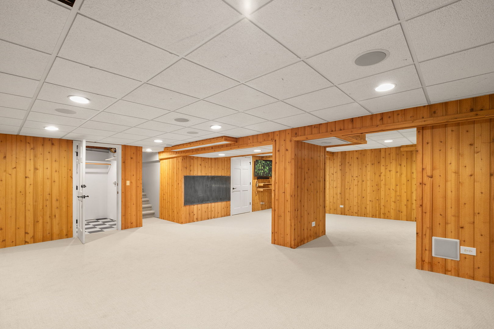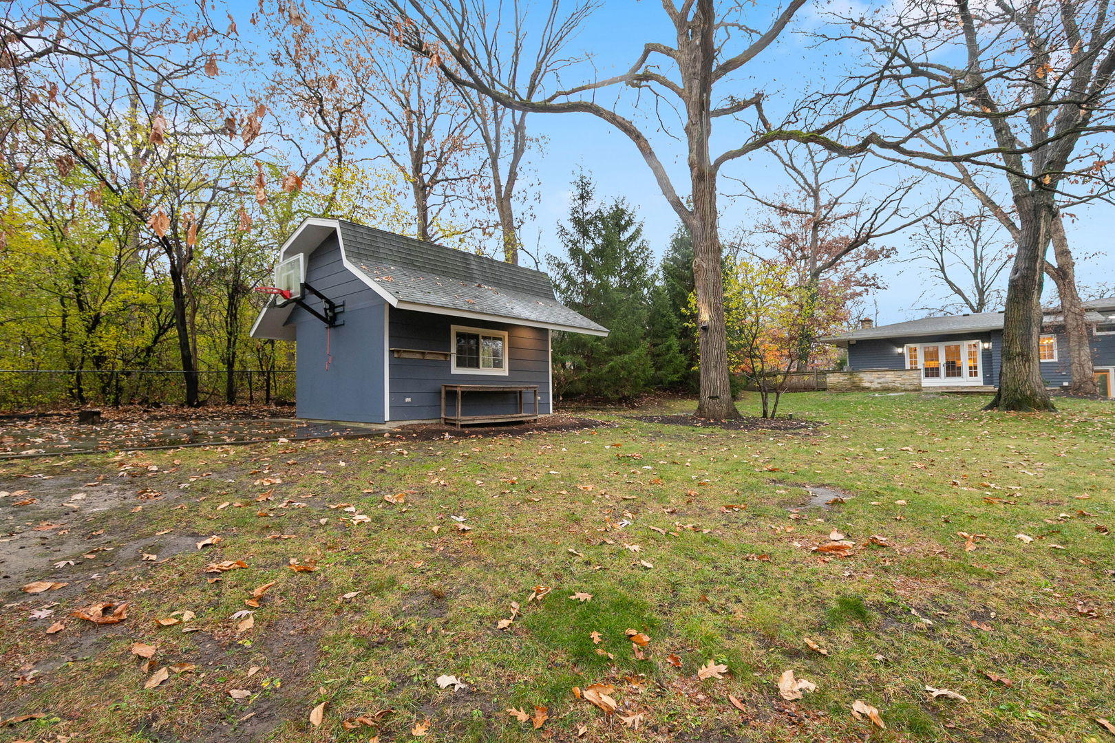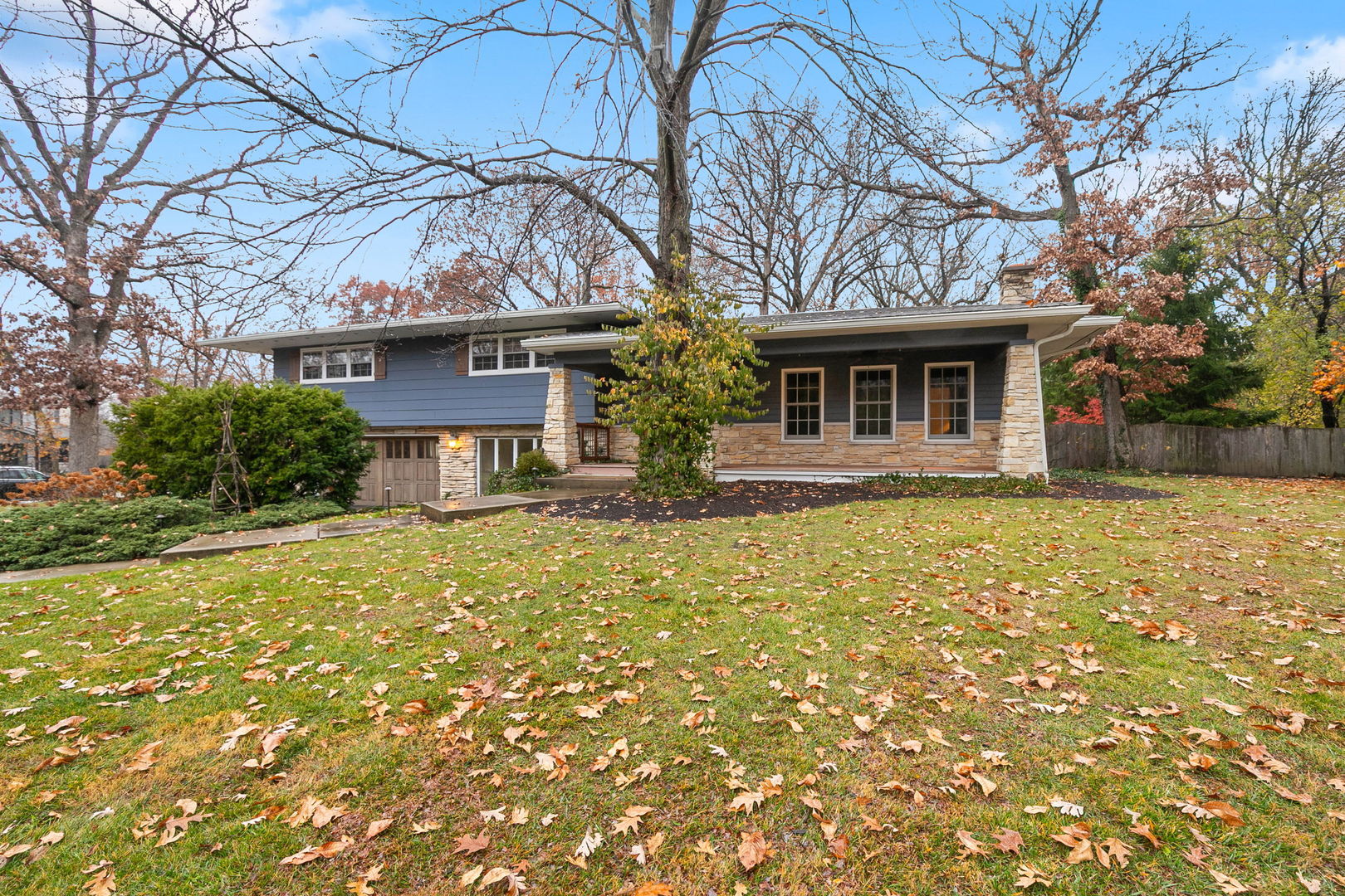 Set on an expansive lot, this character-rich split-level home combines timeless craftsmanship with thoughtful updates throughout. The exterior boasts a charming blend of wood siding and natural stone, complemented by a flagstone patio, fire pit, and a functional shed -perfect for outdoor gatherings or quiet evenings under the stars. Step inside to a formal, tile-floored foyer that sets the tone for the rest of the home. Architectural details including arched doorways, handsome millwork, and a stunning stone fireplace (wood-burning with gas starter) offer warmth and elegance in the formal living room. Rich black walnut floors flow through the main living spaces, while 9-foot ceilings and beautiful windows elevate the overall ambiance. The chef’s kitchen is a true showstopper, centered around a massive 14-foot island. You’ll find a Wolf 6-burner range beneath a custom stone hood, dual ovens, a warming drawer, and a deep farmhouse sink complemented by black granite countertops. Stone subway tile backsplashes, ivory cabinetry, and a dry bar with fridge and freezer drawers complete this impressive culinary space. A spacious dining area offers the perfect spot for morning coffee and large family dinners. The home offers four upstairs bedrooms all with ample closets and oaks floors. The primary suite features custom built-ins and an updated master bath with walk-in shower. The inviting family room enjoys wide-plank maple floors, a wall of windows overlooking the front yard, and sliding glass doors that open to the rear. It’s the ideal spot for entertaining or unwinding. Downstairs, the finished basement offers new carpet and additional flexible living space, ready for your home gym, media room, or play area. This one-of-a-kind home enjoys a high level of custom finish set on a sensational, private lot. This home enjoys the choice of District 70 or 73 for elementary & middle schools.