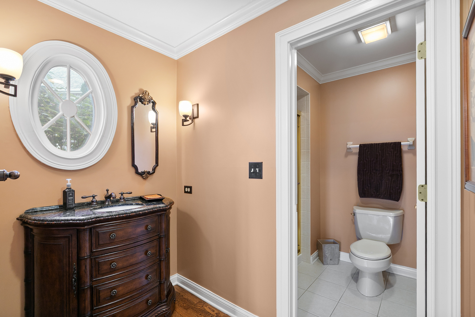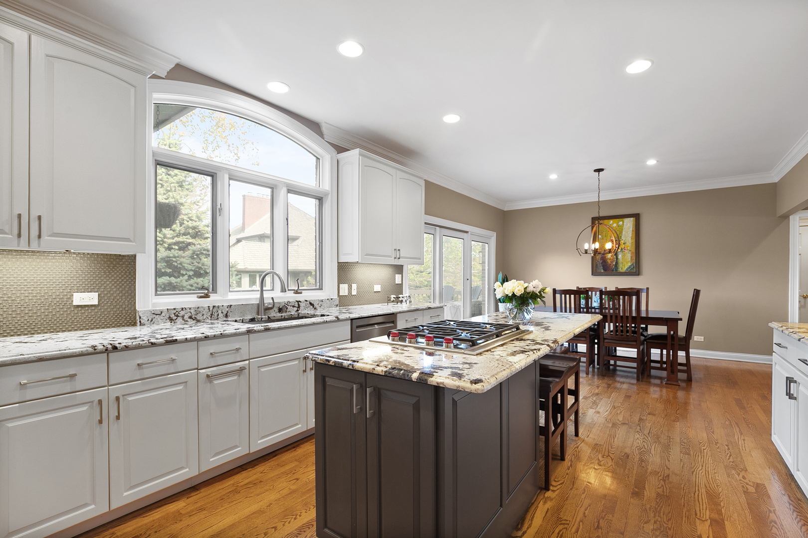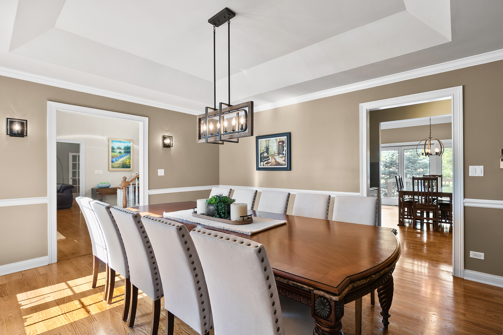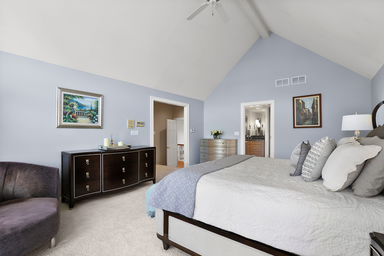 Welcome to 1296 Kajer Lane, a stunning 5 bedroom, 4.5 bath brick home in the highly desirable Arbor Ridge subdivision. Perfectly positioned on a half-acre lot with serene pond views and beautifully landscaped, mature gardens, this residence offers a total of 5300 square feet of thoughtfully designed living space, including the wonderful finished basement, that combines timeless elegance with modern comfort, just steps from Everett School. A grand, light-filled two-story foyer with a sweeping staircase and beautiful hardwood floors sets the tone as you enter. The formal great room impresses with its cathedral ceiling, dramatic fireplace, and seamless flow into a stylish wet bar complete with a sink, beverage fridge, and generous wine storage, an entertainer’s dream. Beyond the bar, the inviting family room showcases spectacular backyard and pond views, another gorgeous fireplace, and sliding doors that open to the screened porch, creating a perfect space for relaxation and gatherings. At the heart of the home, the chef’s kitchen has been beautifully updated, most recently with a brand-new 42 inch Sub-Zero refrigerator, Wolf cooktop and downdraft, all added in 2025. Enjoy casual dining in the sunlit breakfast nook with direct access to the spacious deck, or start your day at the built-in coffee bar. A secondary staircase provides convenient access to the upper level. The formal dining room offers an elegant setting for special occasions and holiday celebrations, while the spacious laundry and mudroom area features a new washer and dryer, abundant cabinetry, and even a dog wash station for added convenience. A versatile fifth bedroom on the main floor, currently used as an office, serves equally well as a guest suite or in-law arrangement thanks to its private full bath and the possibility to access through a separate entryway. Additional features on the main level include ample closet space, elegant powder room, and direct access to the three-car garage. Upstairs, double doors open to an inviting primary suite with soaring cathedral ceilings, a large walk-in closet, and a private balcony overlooking the tranquil pond – an ideal spot for morning coffee or quiet reflection. The luxurious primary bath offers a double whirlpool soaking tub, a two-person shower with rainfall heads and wall-mounted jets, dual vanities, and a clever hidden cabinet for storing essentials. Three additional spacious bedrooms each feature walk-in closets and updated bathrooms; one boasts an en-suite bath, while the other two share a charming “Romeo and Juliet” bathroom, with dual WC areas for added privacy. The open staircase from the foyer leads to the expansive 2,300-square-foot English basement, filled with natural light from large above-grade windows. This versatile level includes a bar and games area, a cozy family room with fireplace, and flexible space perfect for a gym, hobby room, or playroom. There is also a substantial additional space, also with above grade windows, offering exceptional storage or the opportunity to customize further to suit your needs. Outdoor living is equally impressive, with a spacious deck and screened porch overlooking the beautifully maintained yard and peaceful pond. The lower patio area provides additional space for entertaining or quiet evenings surrounded by nature. The roof was fully replaced in 2023. Combining sophistication, comfort, and functionality in one of the area’s most desirable neighborhoods, 1296 Kajer Lane offers a rare opportunity to enjoy refined living in a truly special setting. Come and experience this exceptional home for yourself – you’ll fall in love the moment you arrive