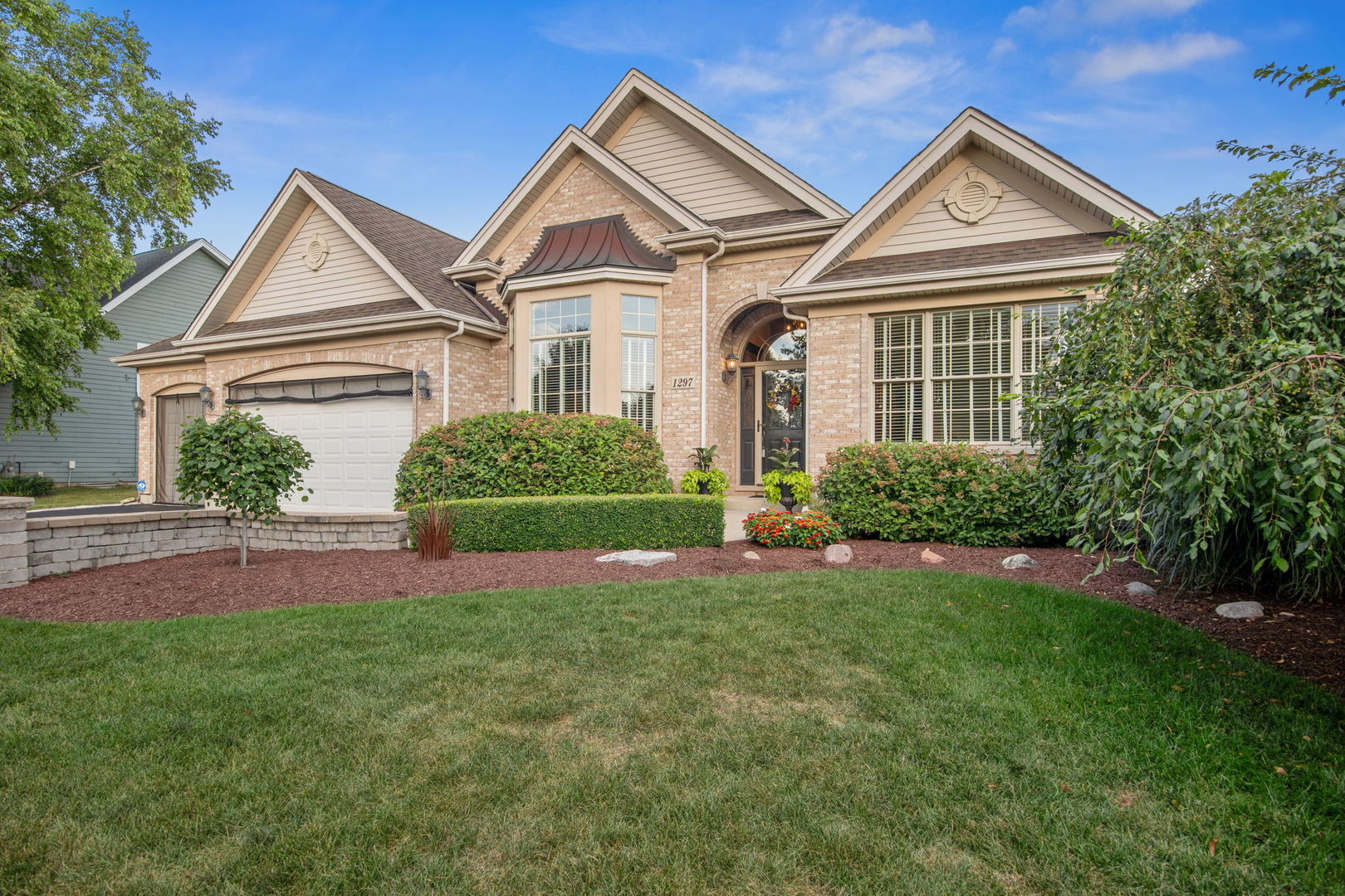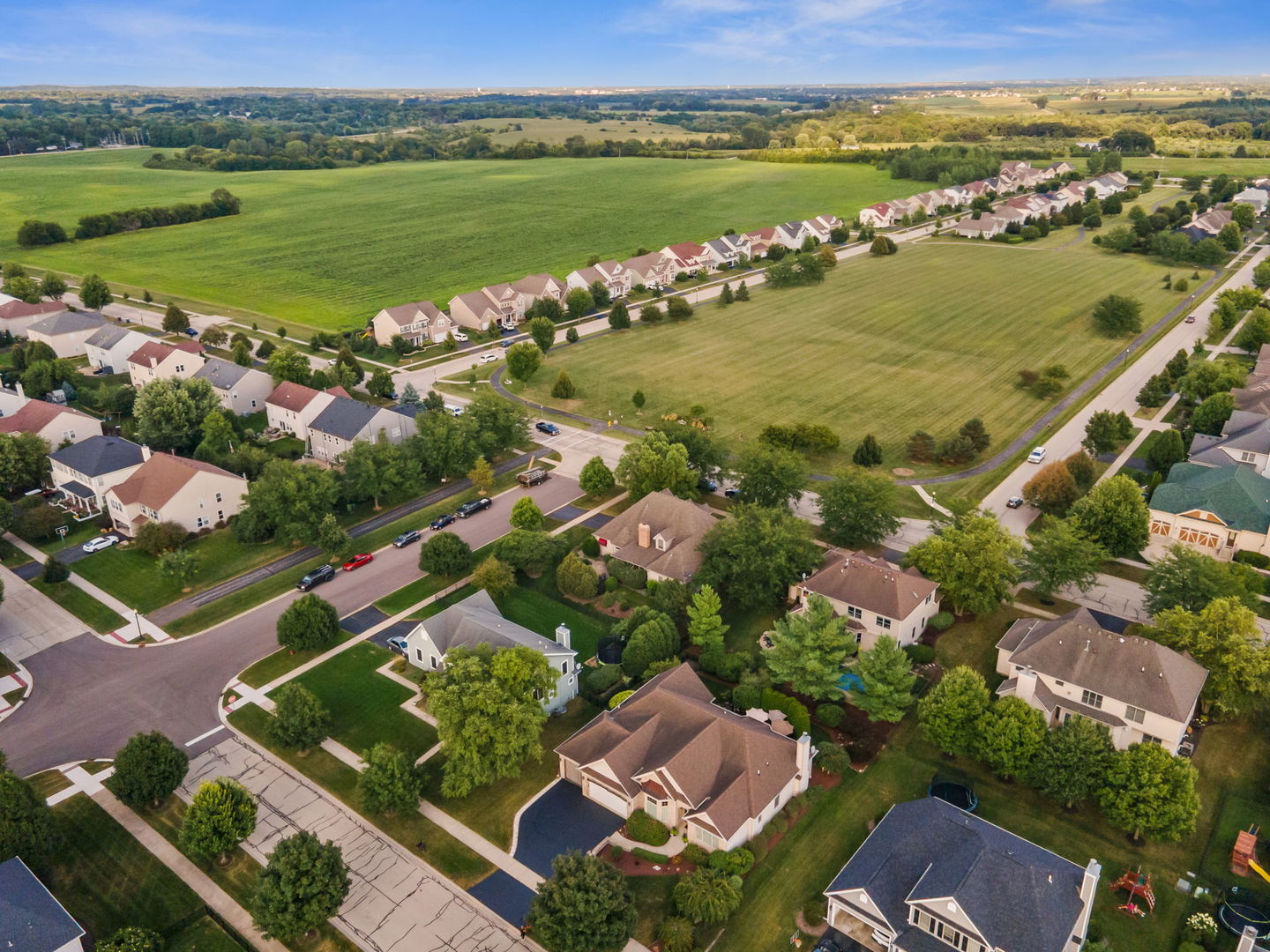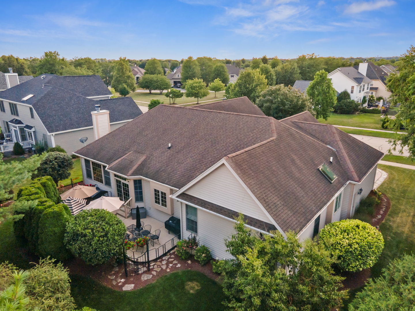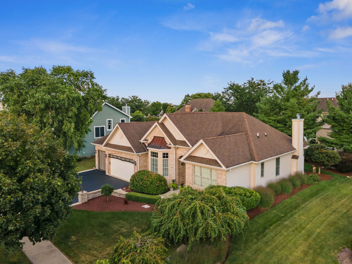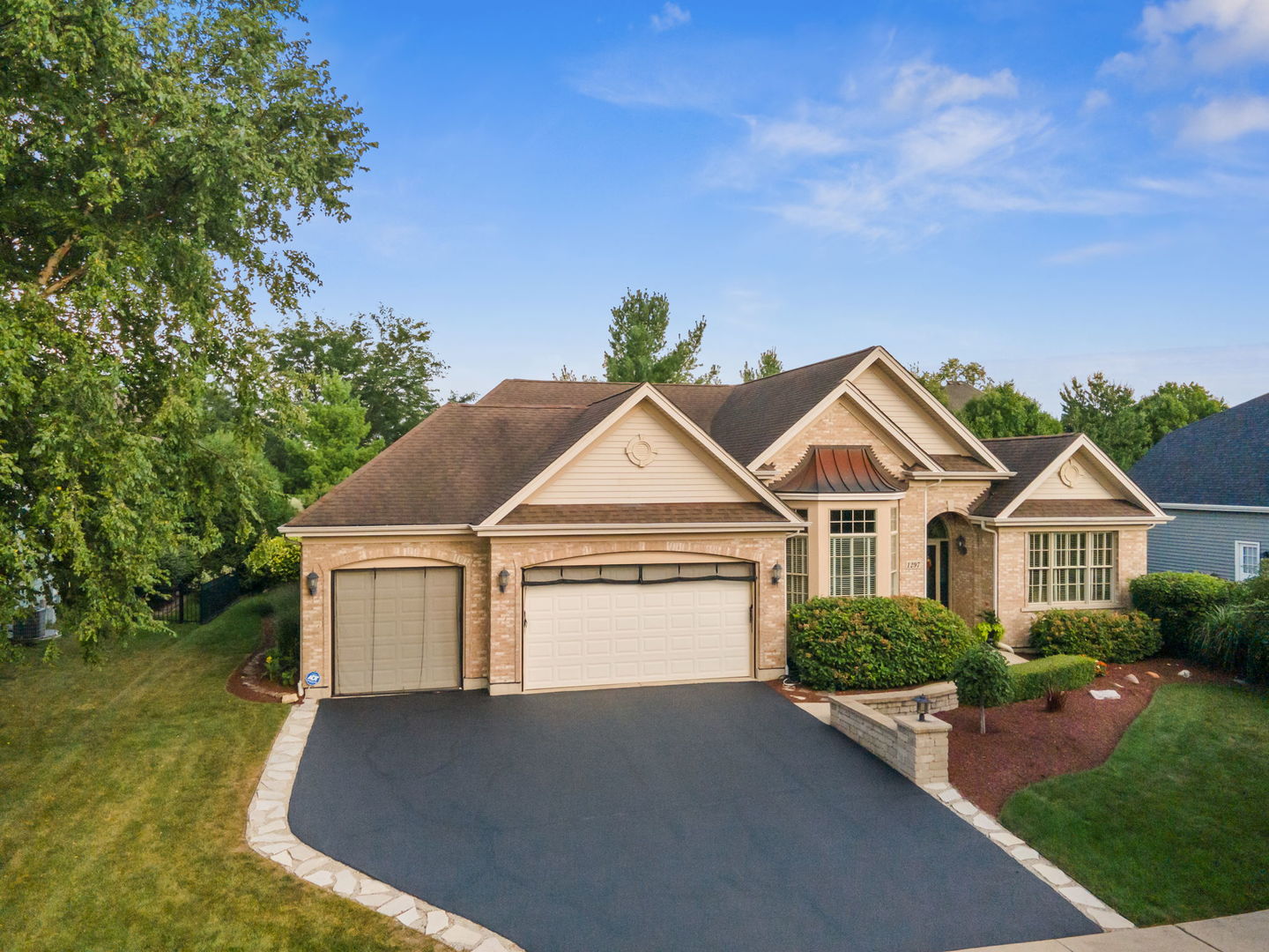 Welcome to this Bellefleur-built custom ranch in Elburn’s sought-after Blackberry Creek neighborhood. Set on a professionally landscaped and hardscaped lot, this home boasts fantastic curb appeal, a 3-car attached heated garage, and a backyard patio perfect for relaxing or entertaining. Inside, you’ll find hardwood flooring and volume ceilings throughout, plus a dedicated home office ideal for today’s remote lifestyle. The eat-in kitchen features an island with breakfast bar, granite countertops, stainless steel appliances, tile backsplash, and table space, opening to a cozy family room with a floor-to-ceiling stone gas-log fireplace flanked by custom bookcases. The formal dining room offers elegance and a niche for your hutch. Generous bedrooms include a spacious primary suite with a deluxe private bath featuring double vanities, a steam shower, and a skylight. Two walk in showers for ease of entrance. The full deep-pour basement provides endless potential, and with parks and a golf course just a short walk away-plus a new HVAC system in 2022-this move-in-ready home is the perfect blend of comfort, style, and convenience.